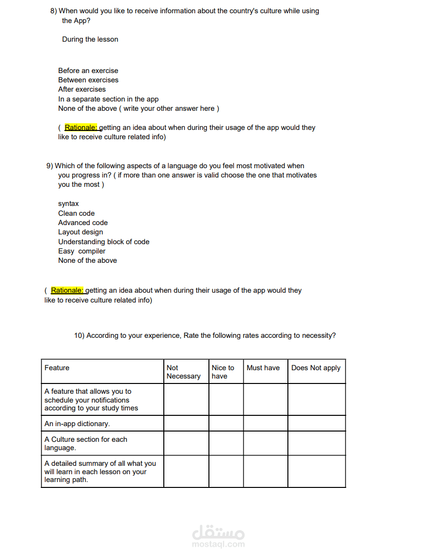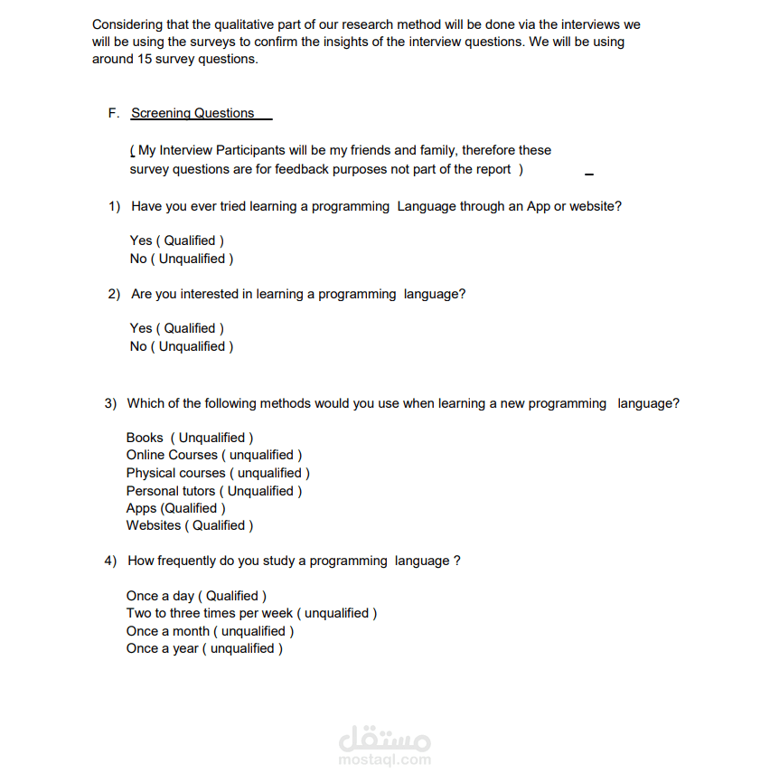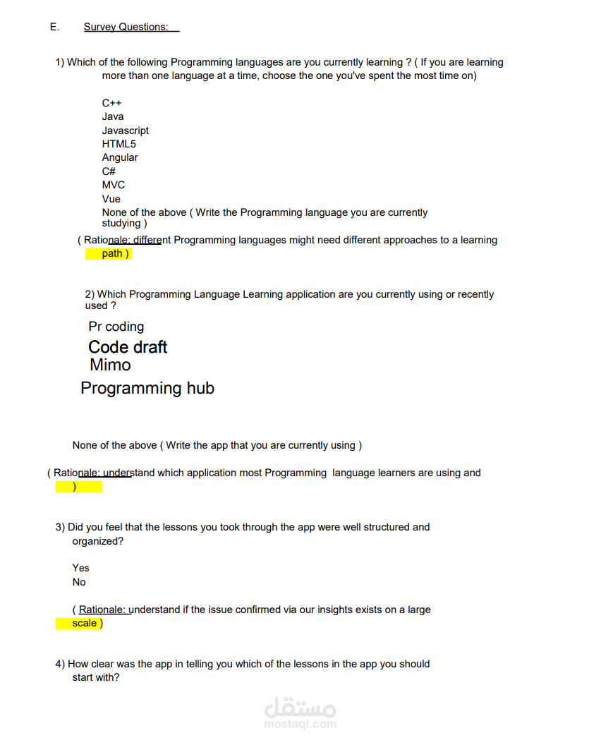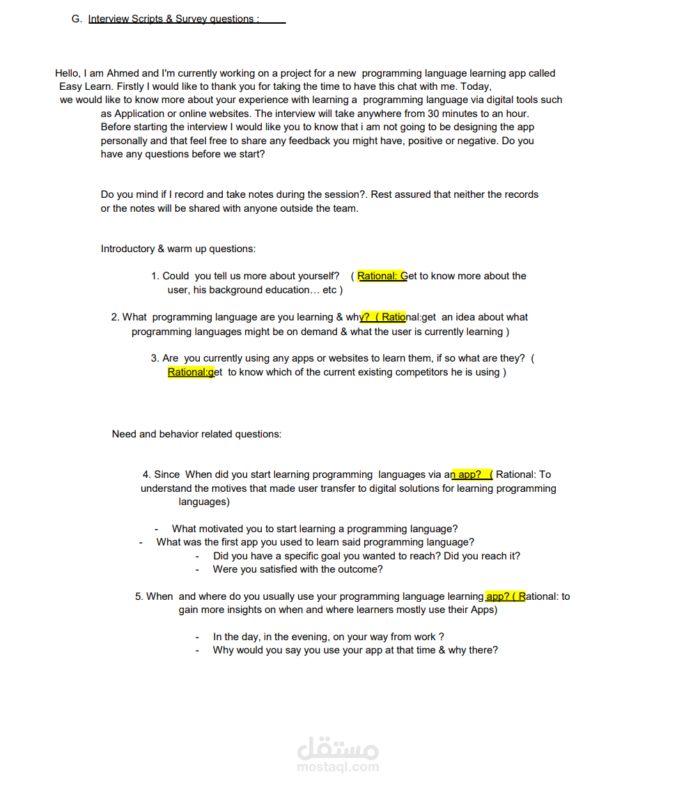 تجربة المستخدم وكتاية بحث عن المستخدمين من اجل إنشاء تطبيق لتعلم لبرمجيات