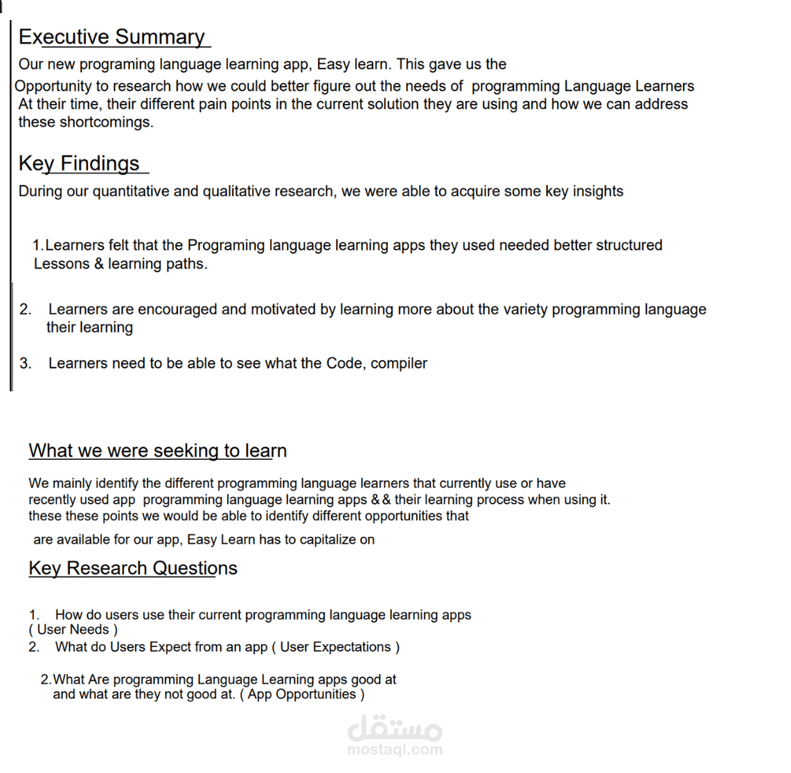 UX research for programming learning app
