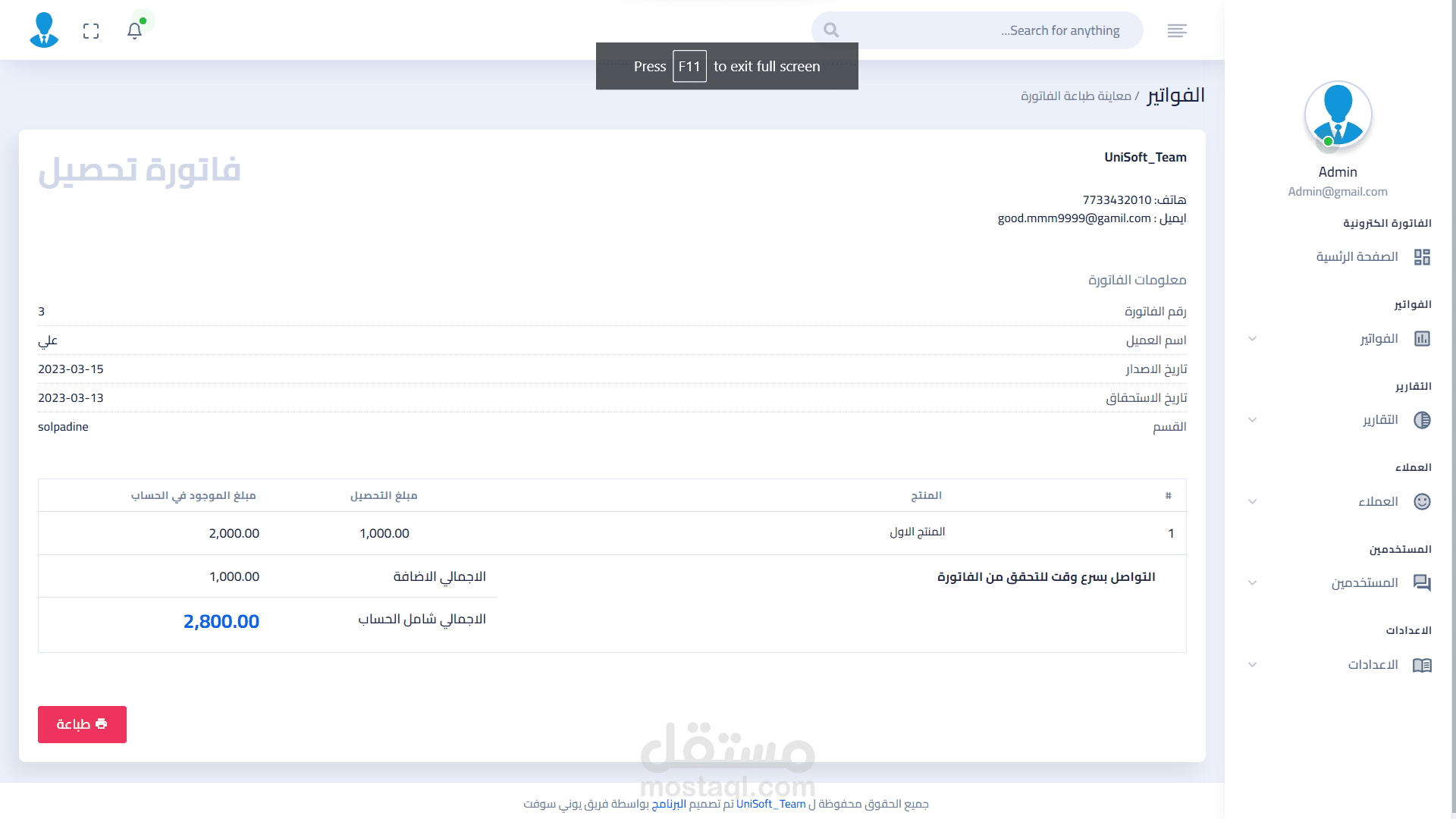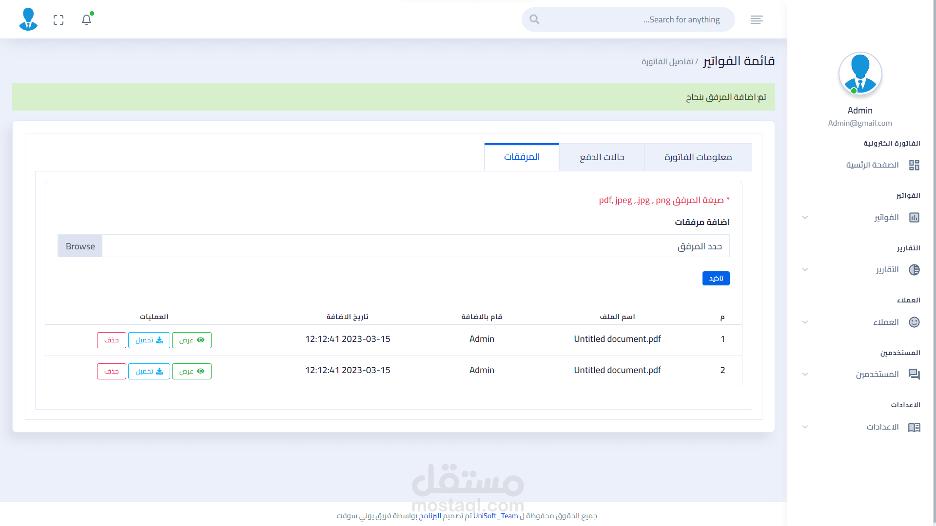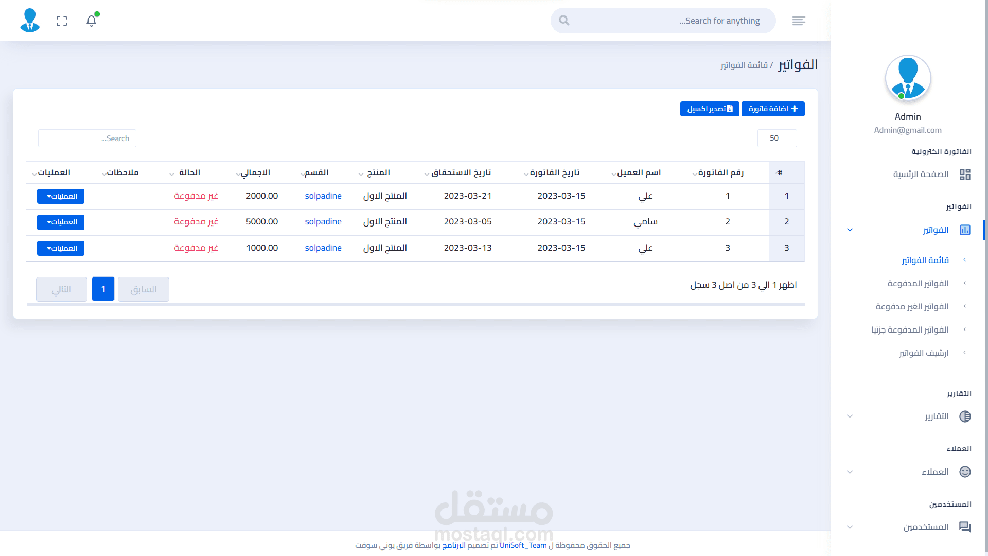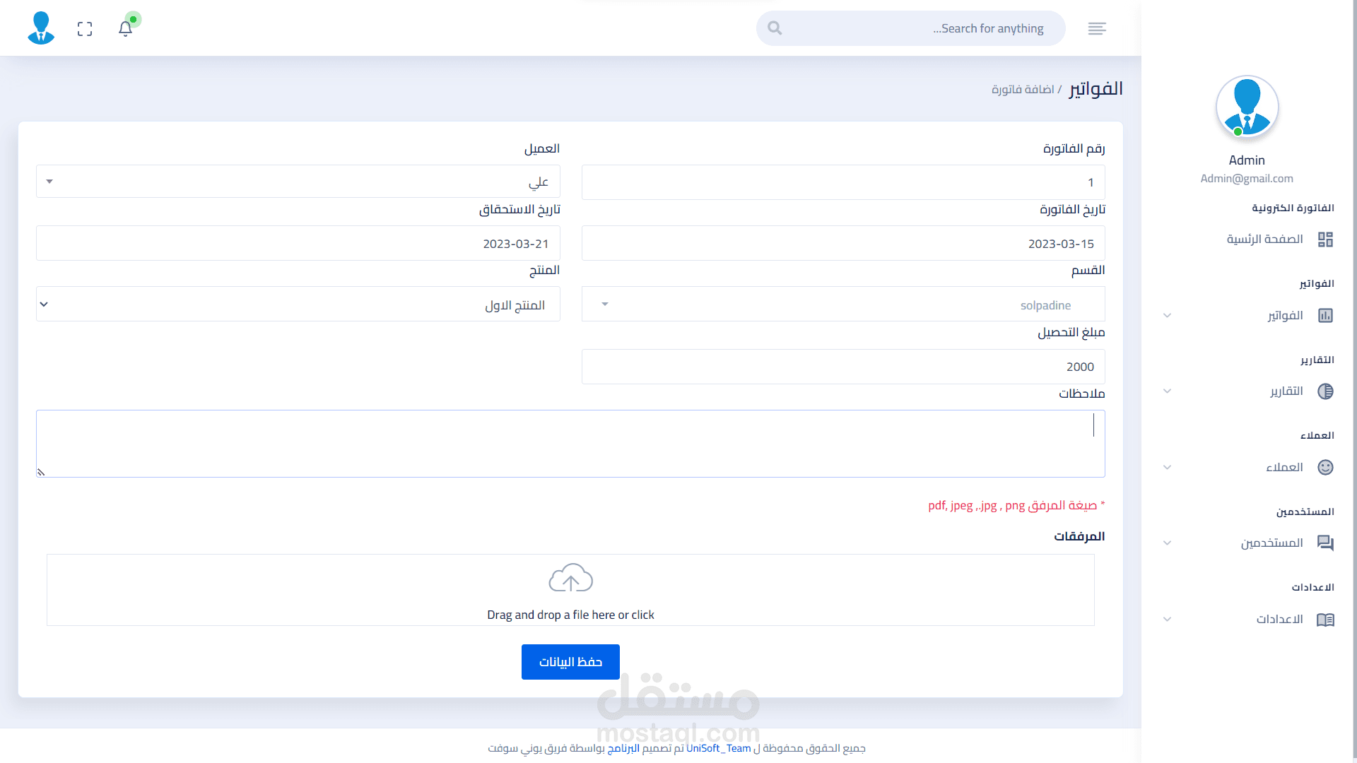نظام إدارة الفواتير هو تطبيق ويب مُطور باستخدام لارافيل يسمح للمستخدمين بإدارة فواتيرهم بسهولة وكفاءة. يوفر النظام وظائف شاملة لإدارة العملاء، والمواد، والفواتير، والدفعات، والتسديدات، وغيرها من العمليات المتعلقة بإدارة الفواتير.