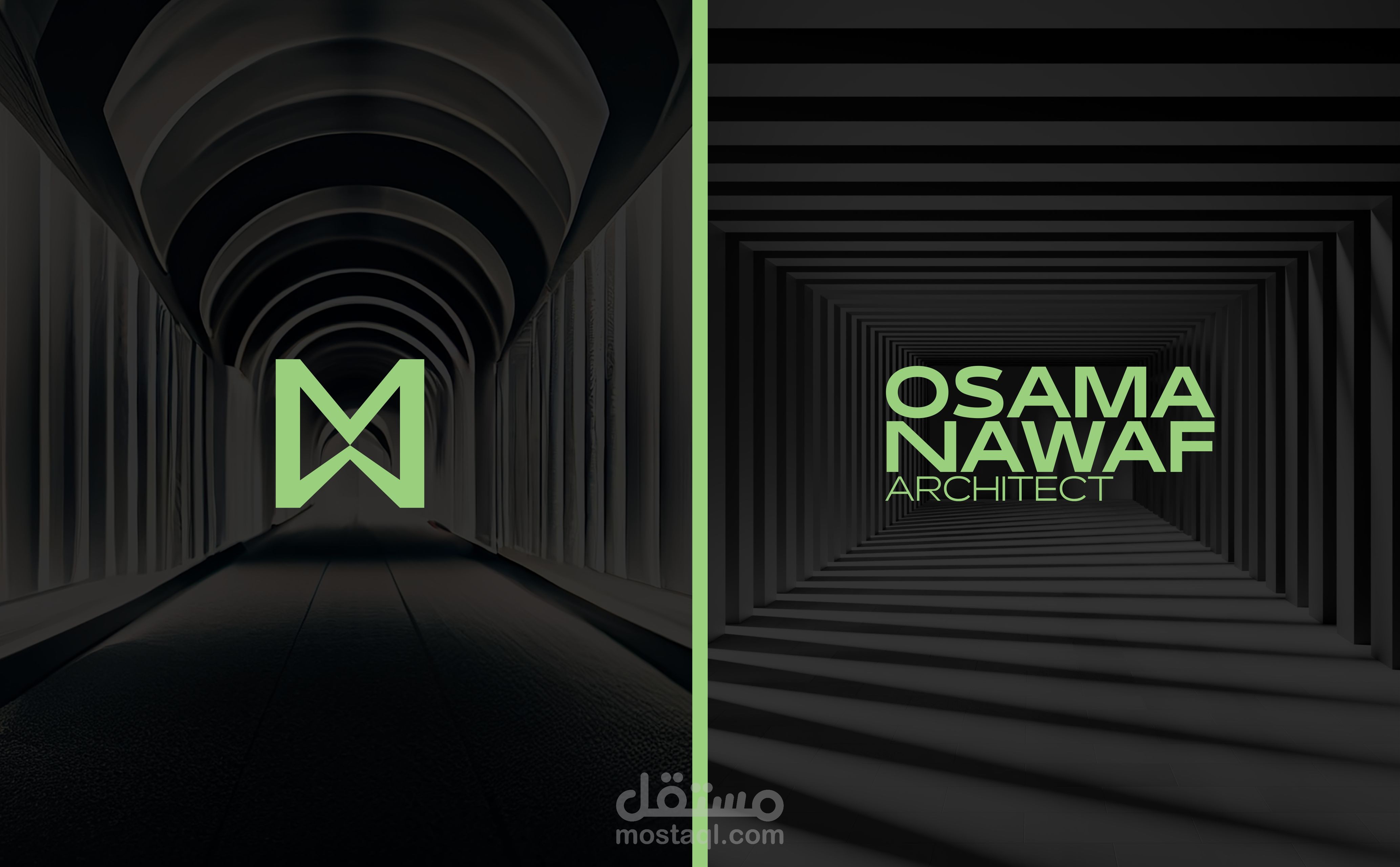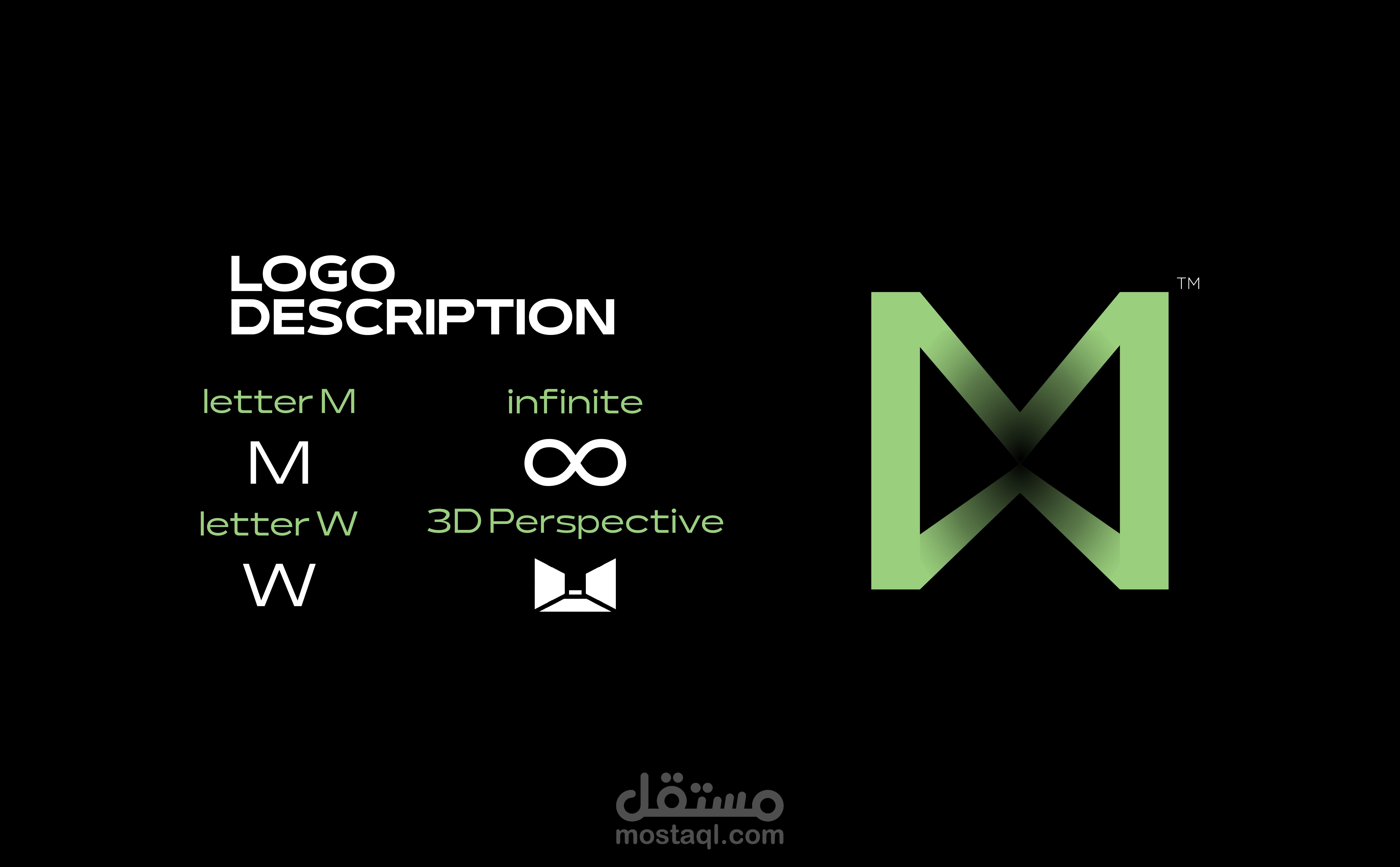 A logo and visual identity for an architectural brand. The idea is to combine the letter M and the letter W to produce a three-dimensional perspective shape that is in line with the work of the brand.