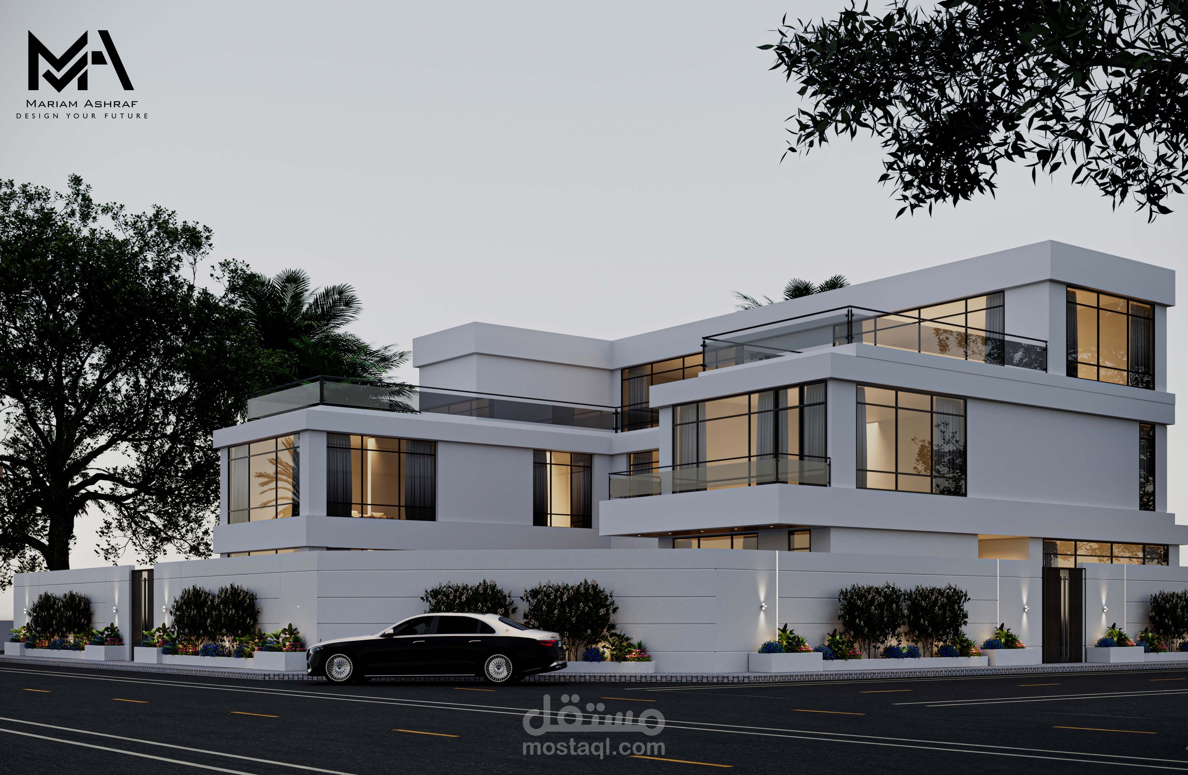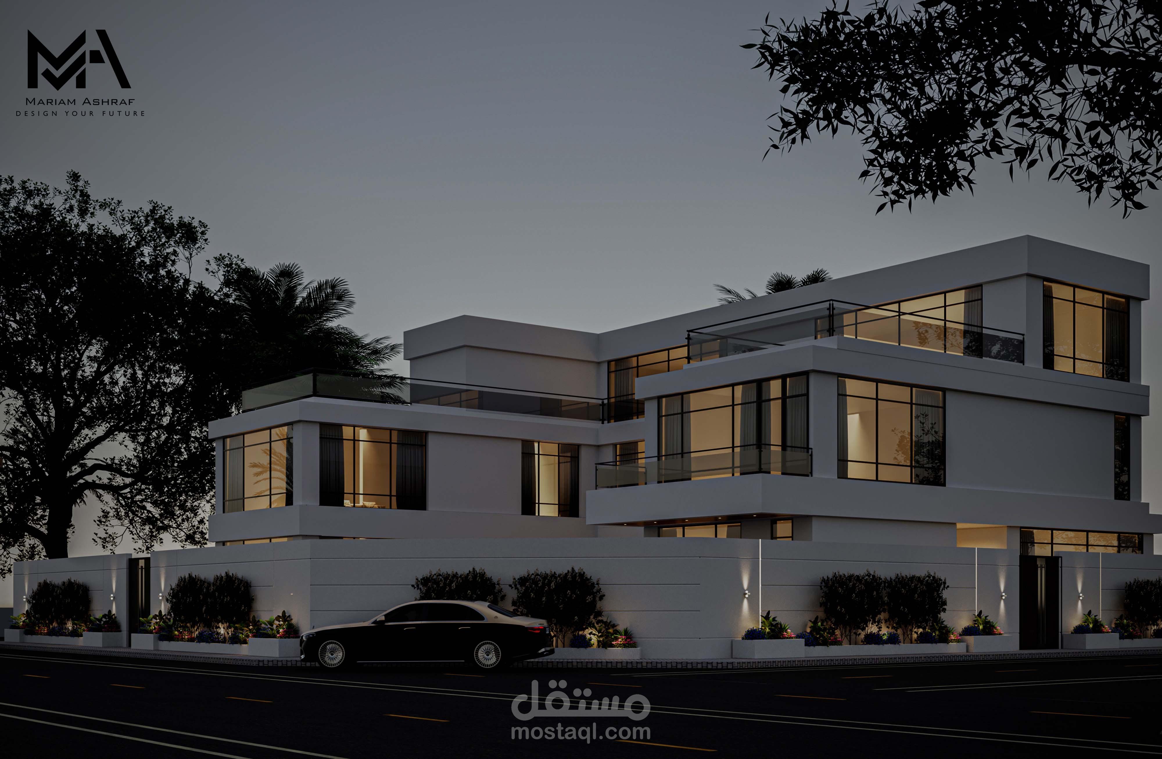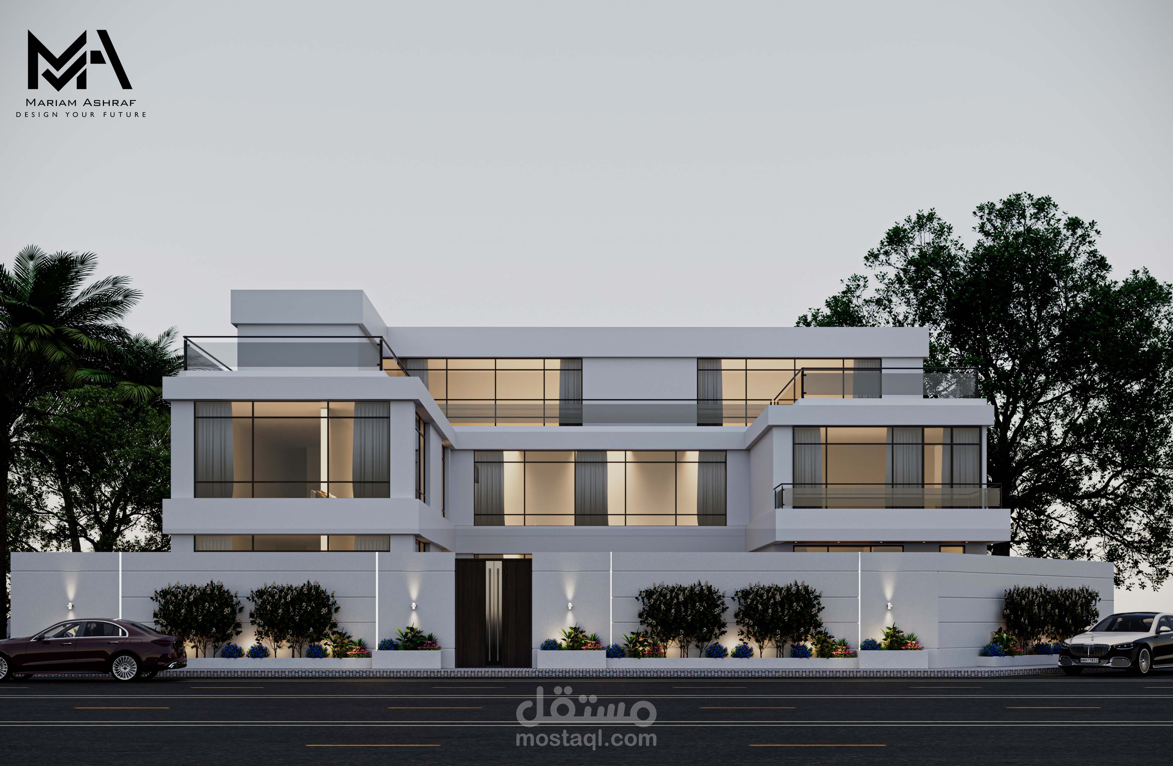 تصميم واجهه لفيلا بالمملكه العربيه السعوديه ذات تصميم حديث و بسيط و راقى