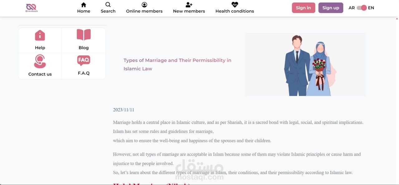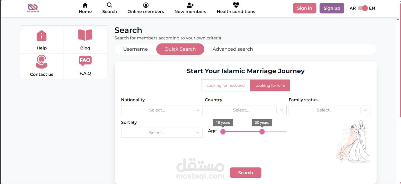 موقع لمساعدة الجنسين على الزواج الشرعي بطريقة اسلامية , بتوفير جميع الأدوات اللازمة لتسجيل الطلبات والبحث وتسهيل عملية إيجاد الطرف الآخر بالمواصفات المطلوبة