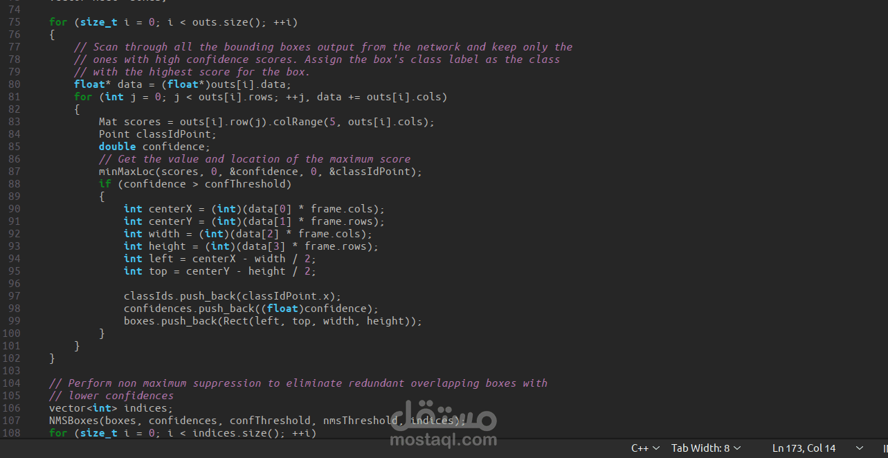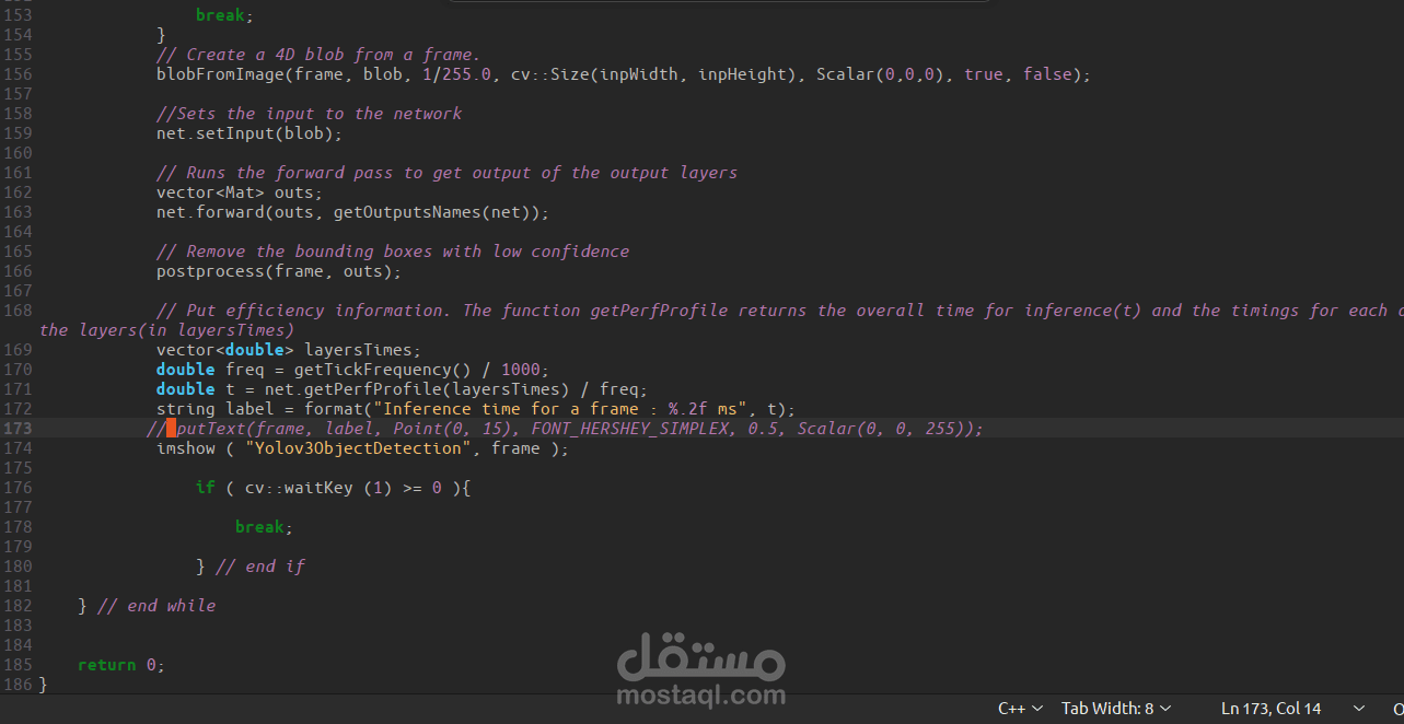 i have used YOLOV3 model in C++ to detect different object in camera frame