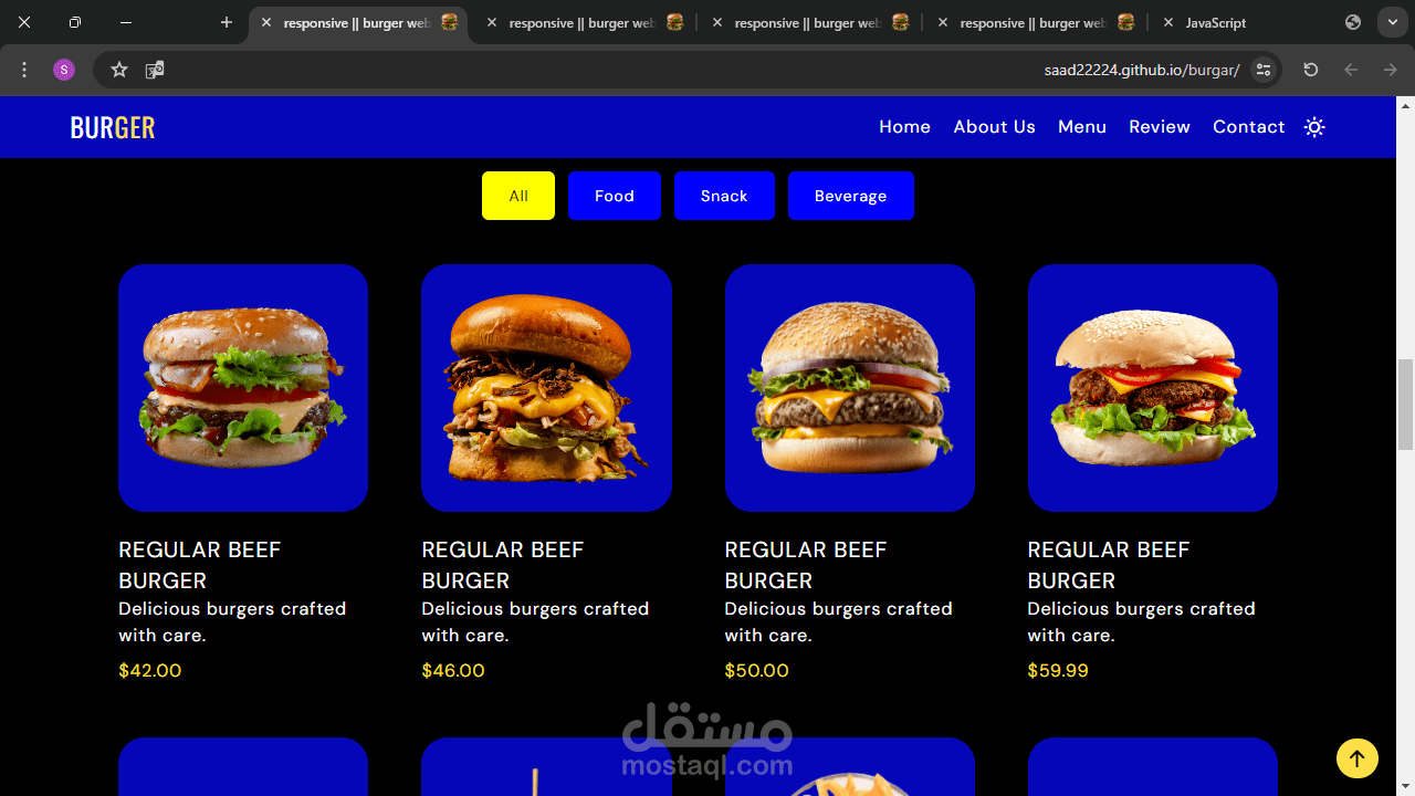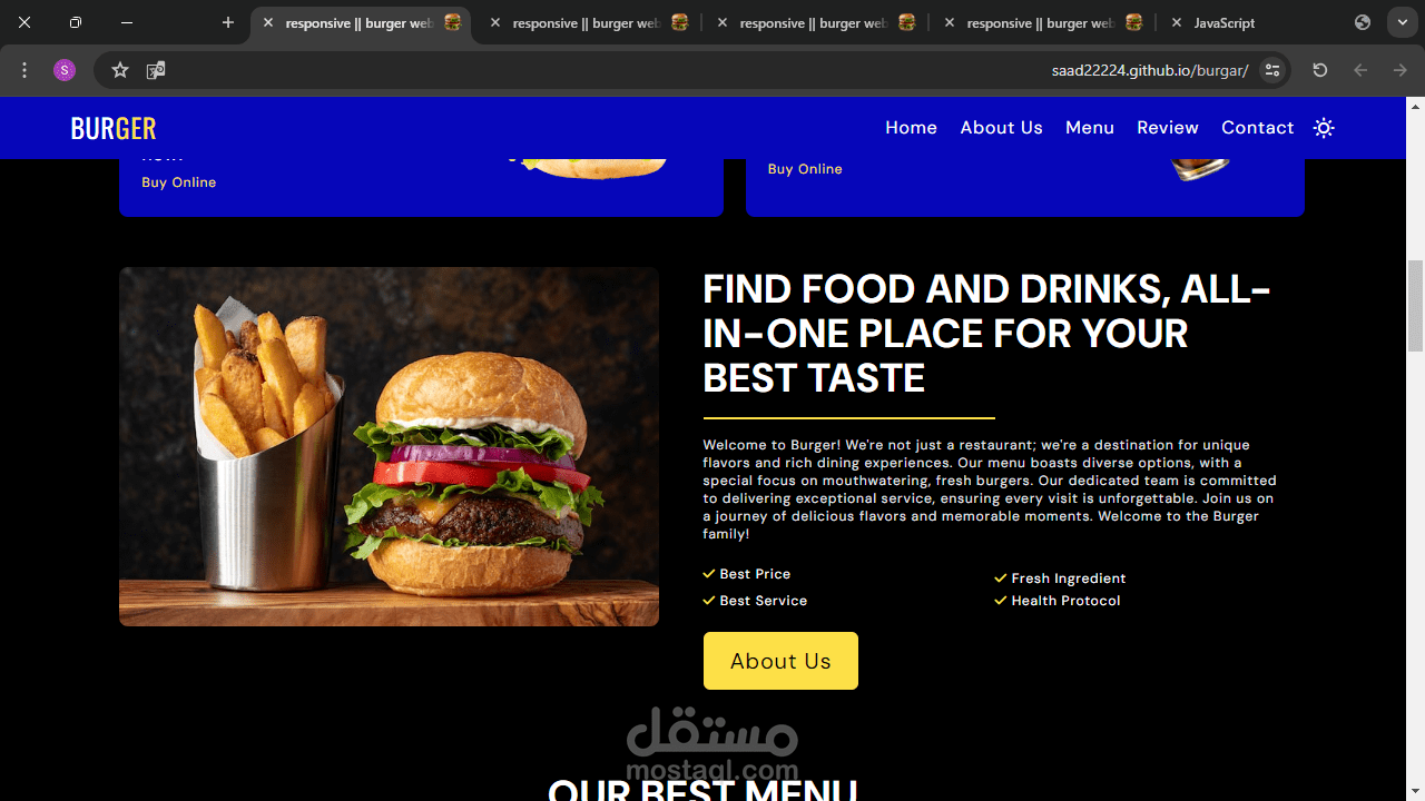 موقع لمطعم باستخدام html css tailwind js full responsive