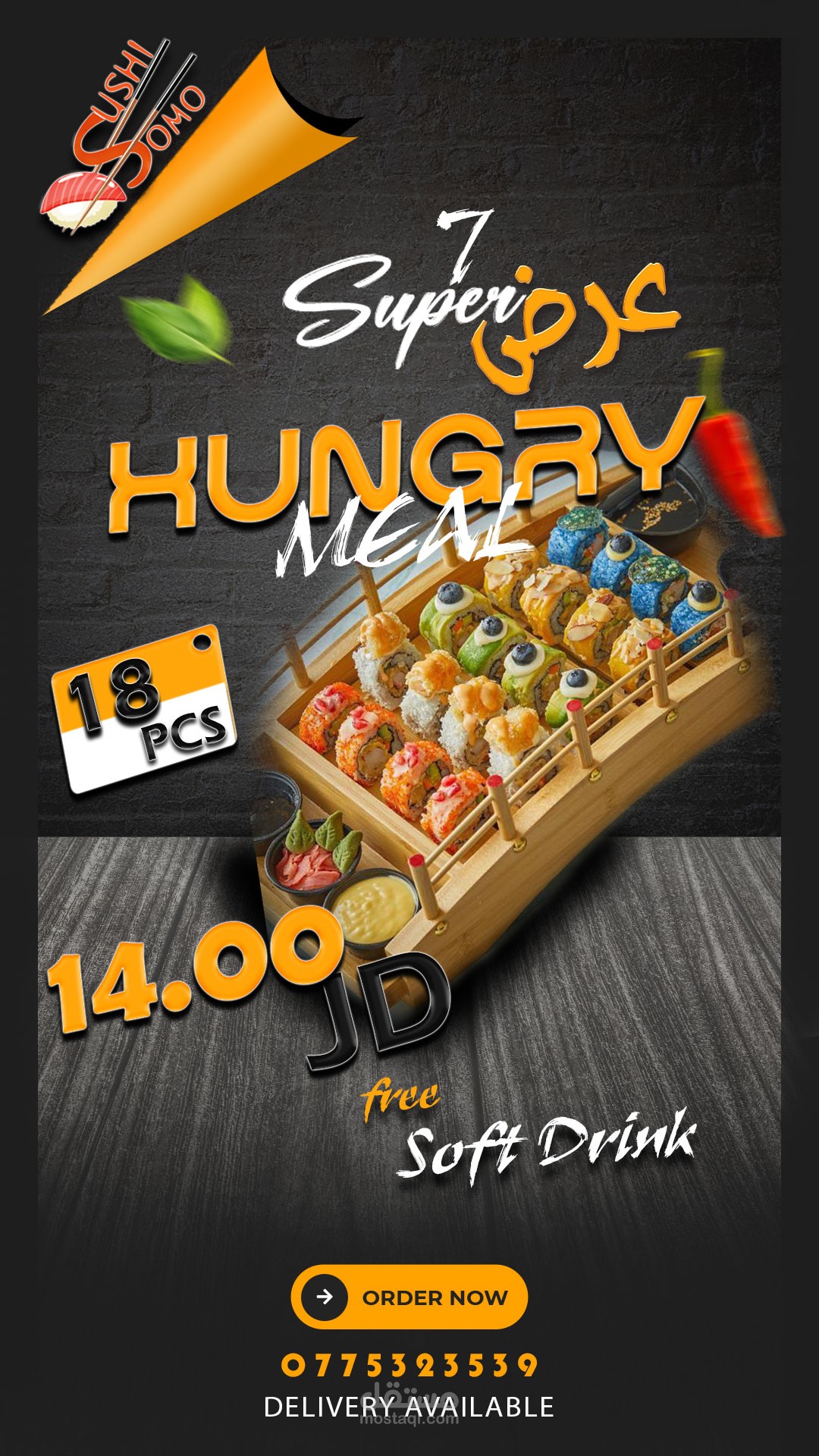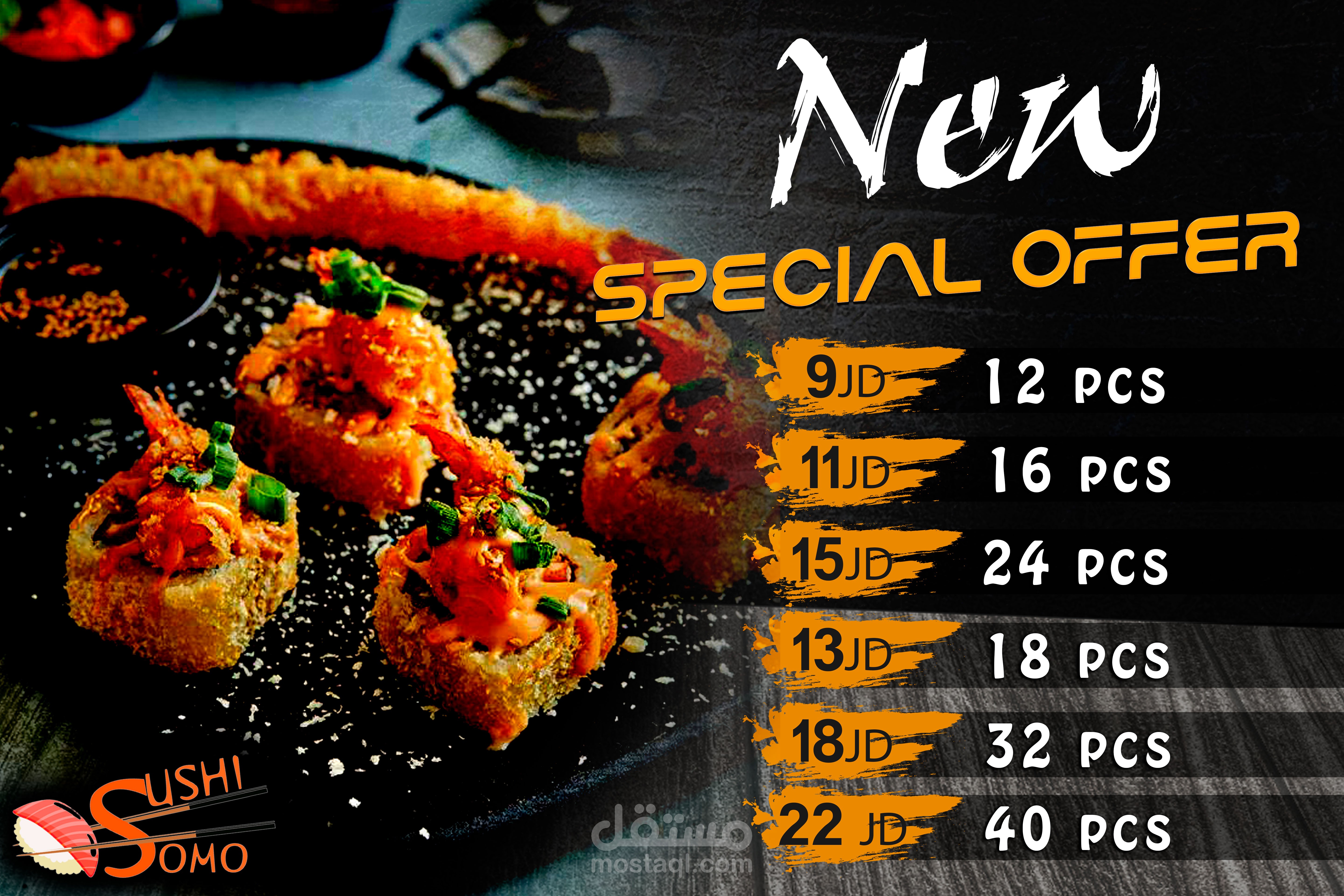 عمل ترويجي لمحل يقدم خدمة وجبات السوشي من خلال التواصل الالكتروني .
