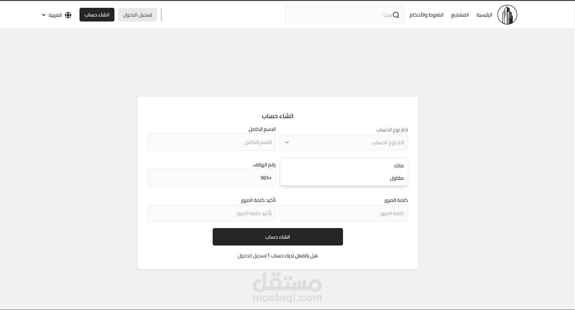 مشروع موجهه للمقاولين والمالك