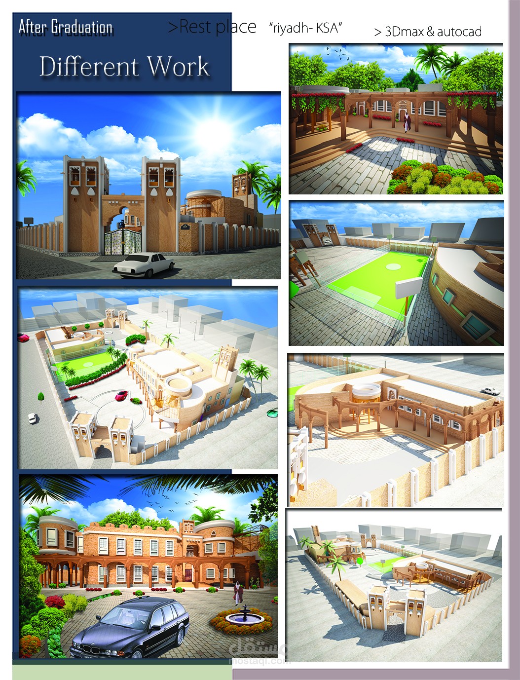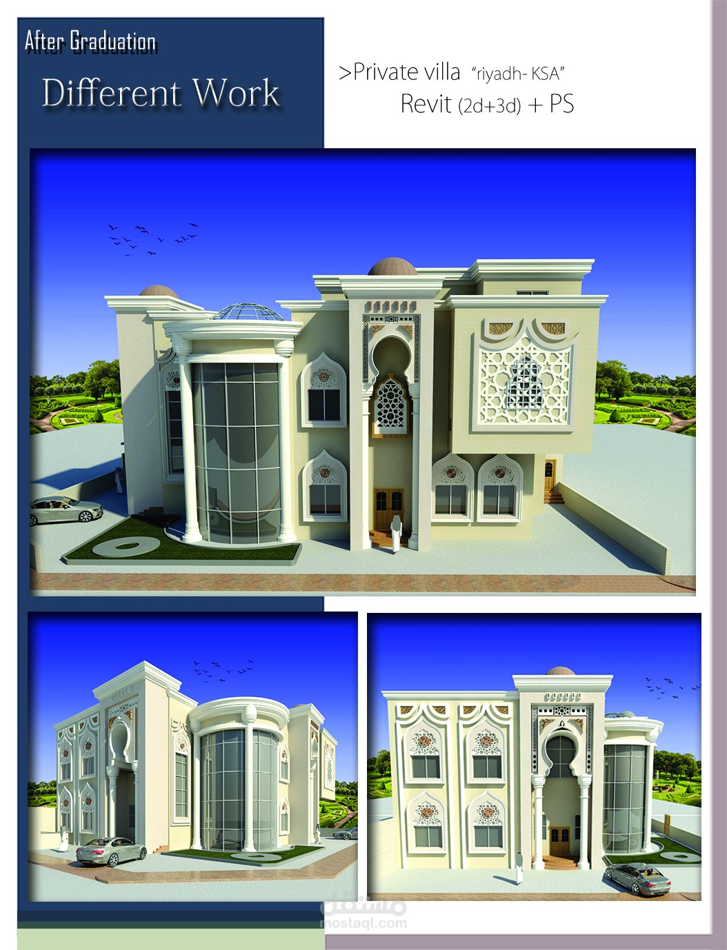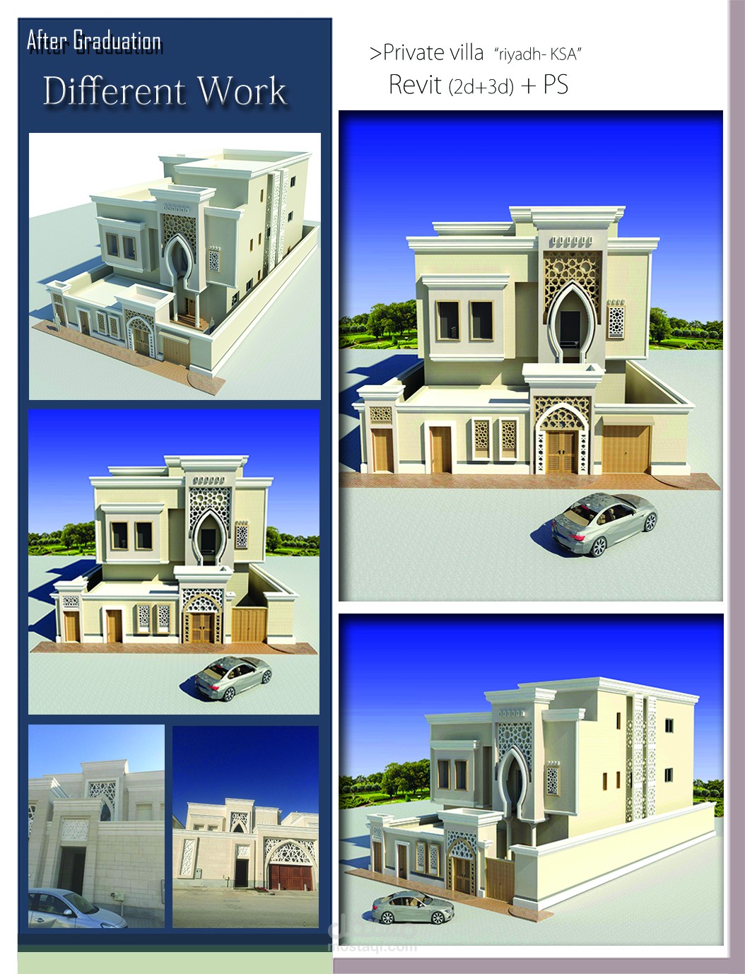 المشاريع الخاصة بفتره عملي في المملكه العربيه السعوديه و التي توضح القدرات و المهارات الخاصه بالتصميم و الافكار المرتبطه بطابع المنطقه و متطلبات العميل و بعض المشاريع الكبري في مصر وهي كالاتي :-