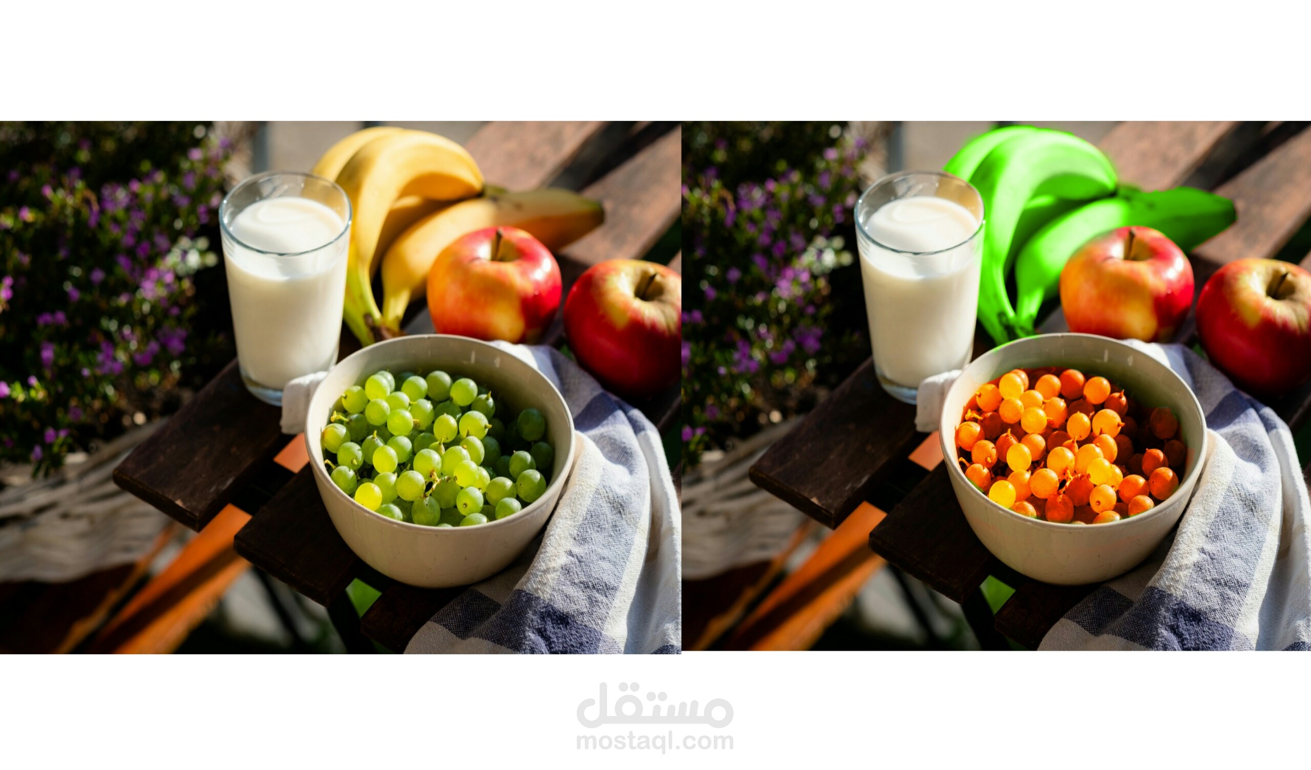 استخدمت برنامج pixellab على الهاتف لدمج الصورتين( قبل ازالة الخلفية + الصورة بعد ازالة الخلفية ) وقمت بضبط الابعاد عرض 800 بكسل وطول 470 بكسل
