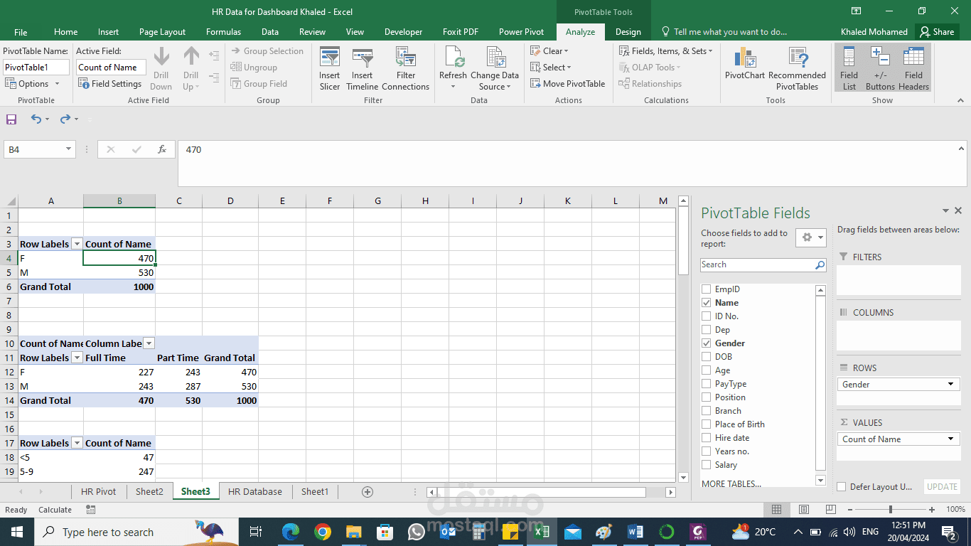 Make Dash Board from Pivot Table using Charts