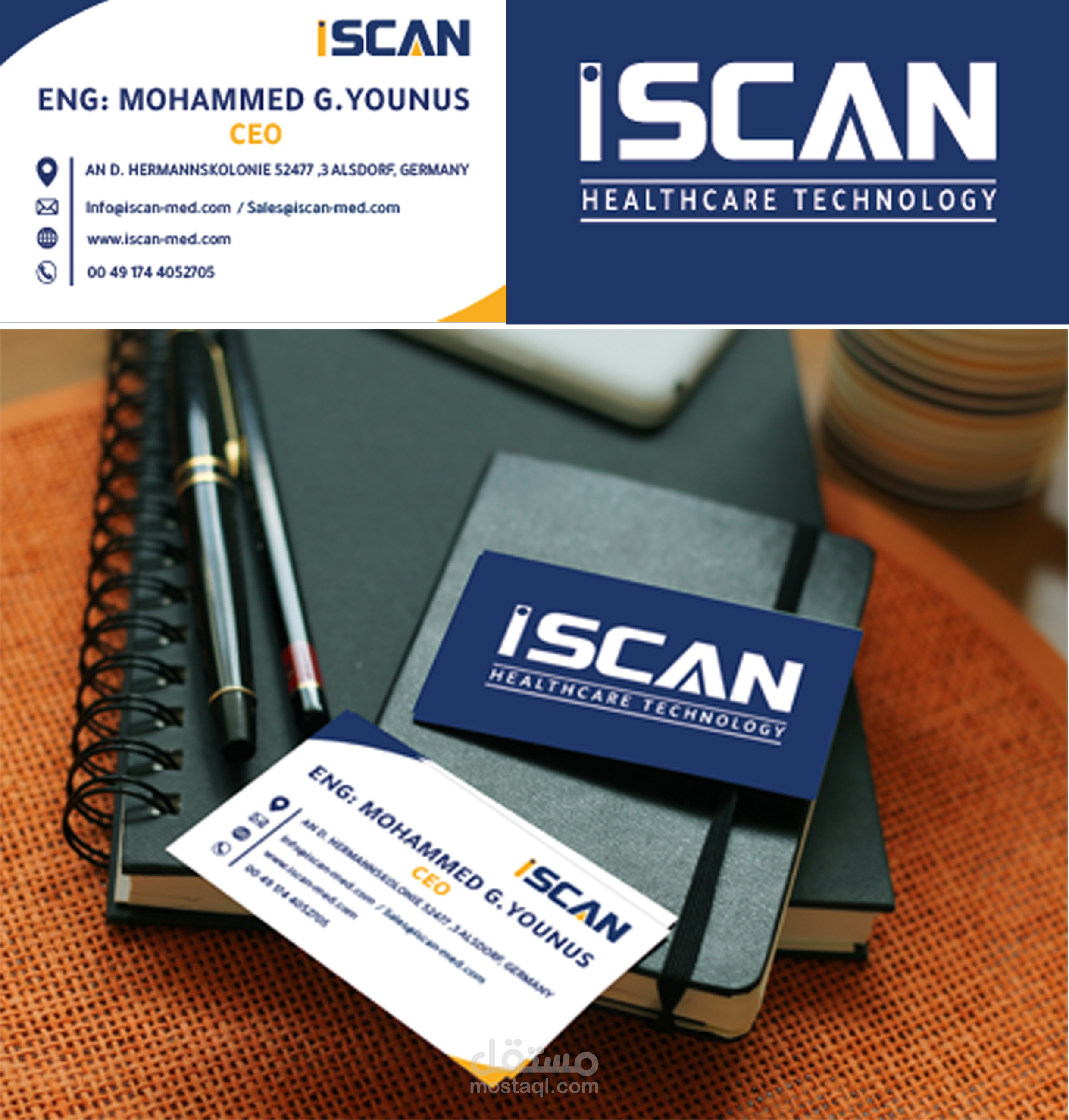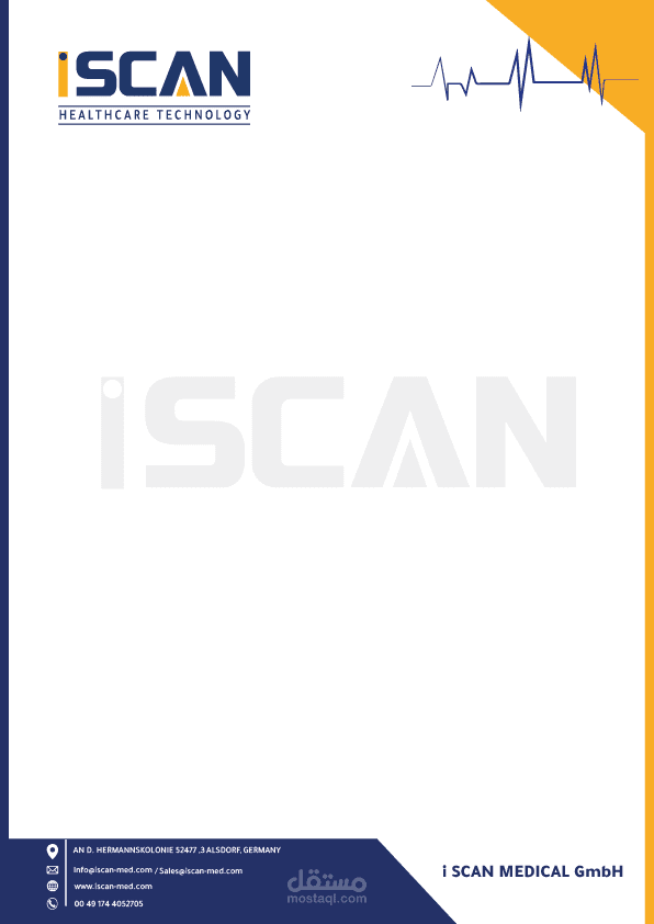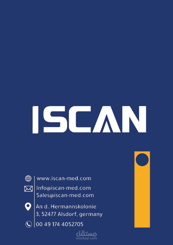 شركة I SCAN تعمل بمجال الاجهزة الطبية تقع بالمانيا ولها فروع بالشرق الاوسط,كانت مهمتنا هى تنفيذ عناصر الهويه البصريه للشركه من البدايه وتنفيذ بروفايل وكتالوجات المنتجات الخاصه بالشركة.