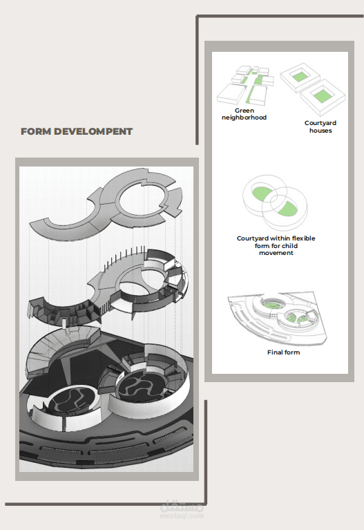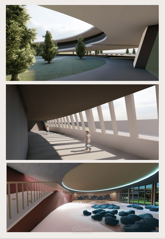 بالنظر إلى حياة المزارعين في البحرين، هناك شعور قوي بالعائلة والمجتمع وما إلى ذلك، حيث أن الزراعة هي جهد جماعي/ مجتمعي مشترك. هذه المُثُل تتآكل إلى حد ما بسبب المجتمع الفردي. المبنى الخاص بي مستوحى من الزراعة، التي كانت صناعة مهيمنة في البحرين، وجميع القيم الاجتماعية التي يغرسها الاحتلال، وهو أمر مهم يجب تقديمه وغرسه في الأطفال كجزء من تطورهم. البحرين