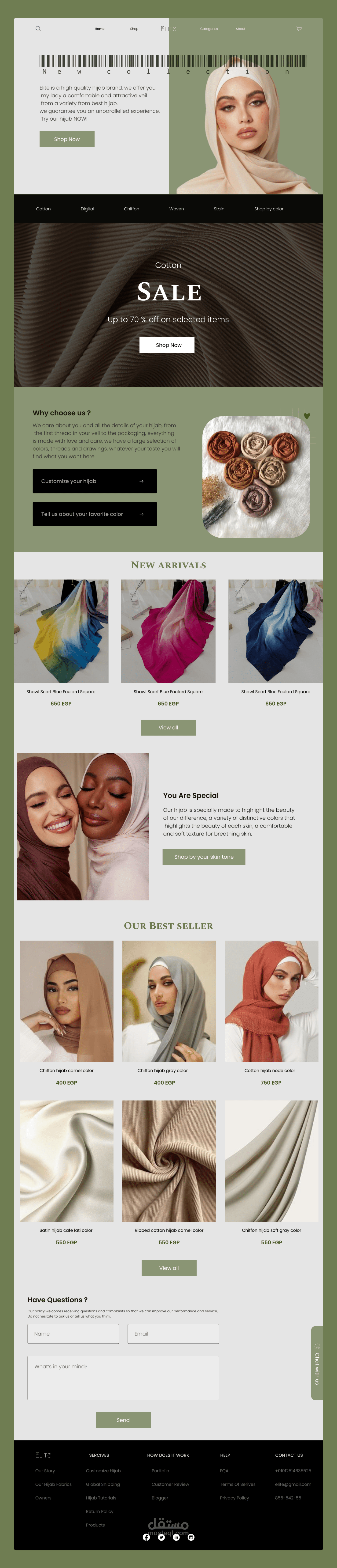 Landing page ( صفحة هبوط ) لبراند حجاب عصري