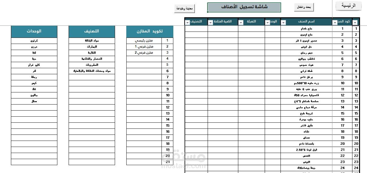 يشمل قسم المخازن