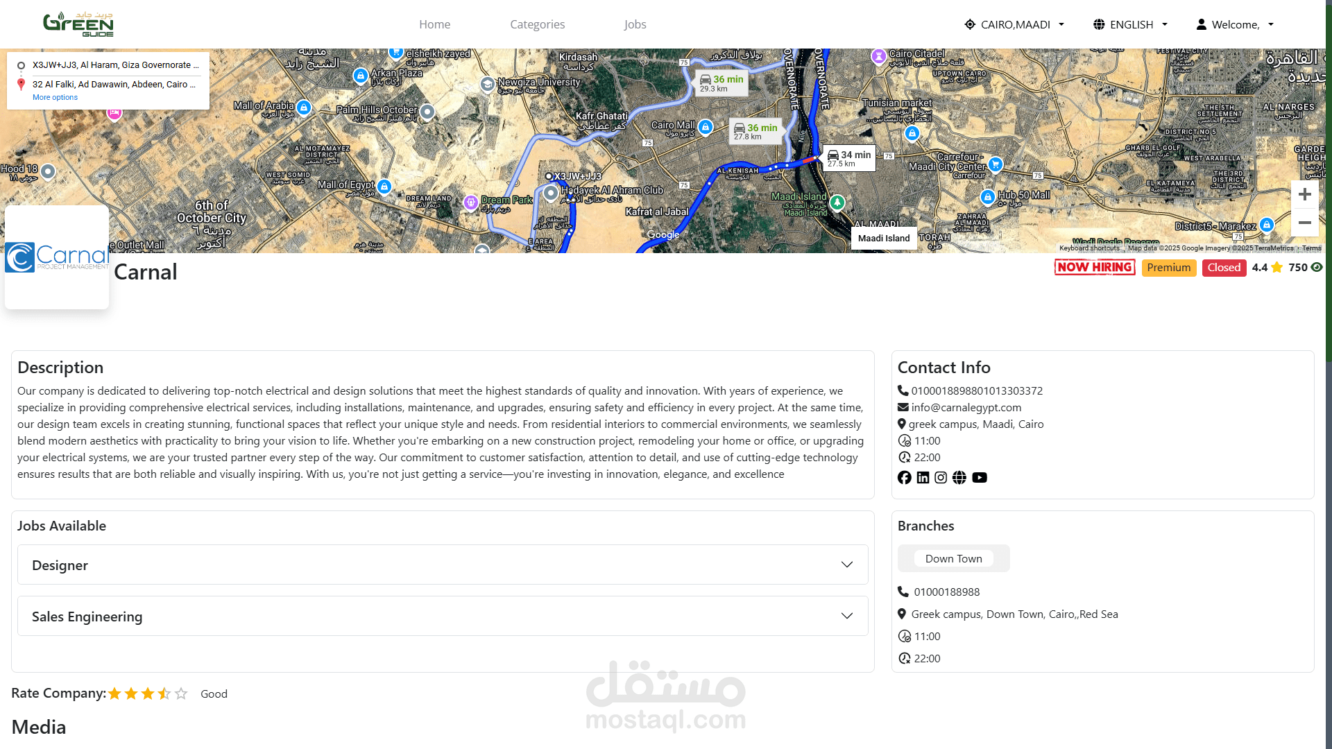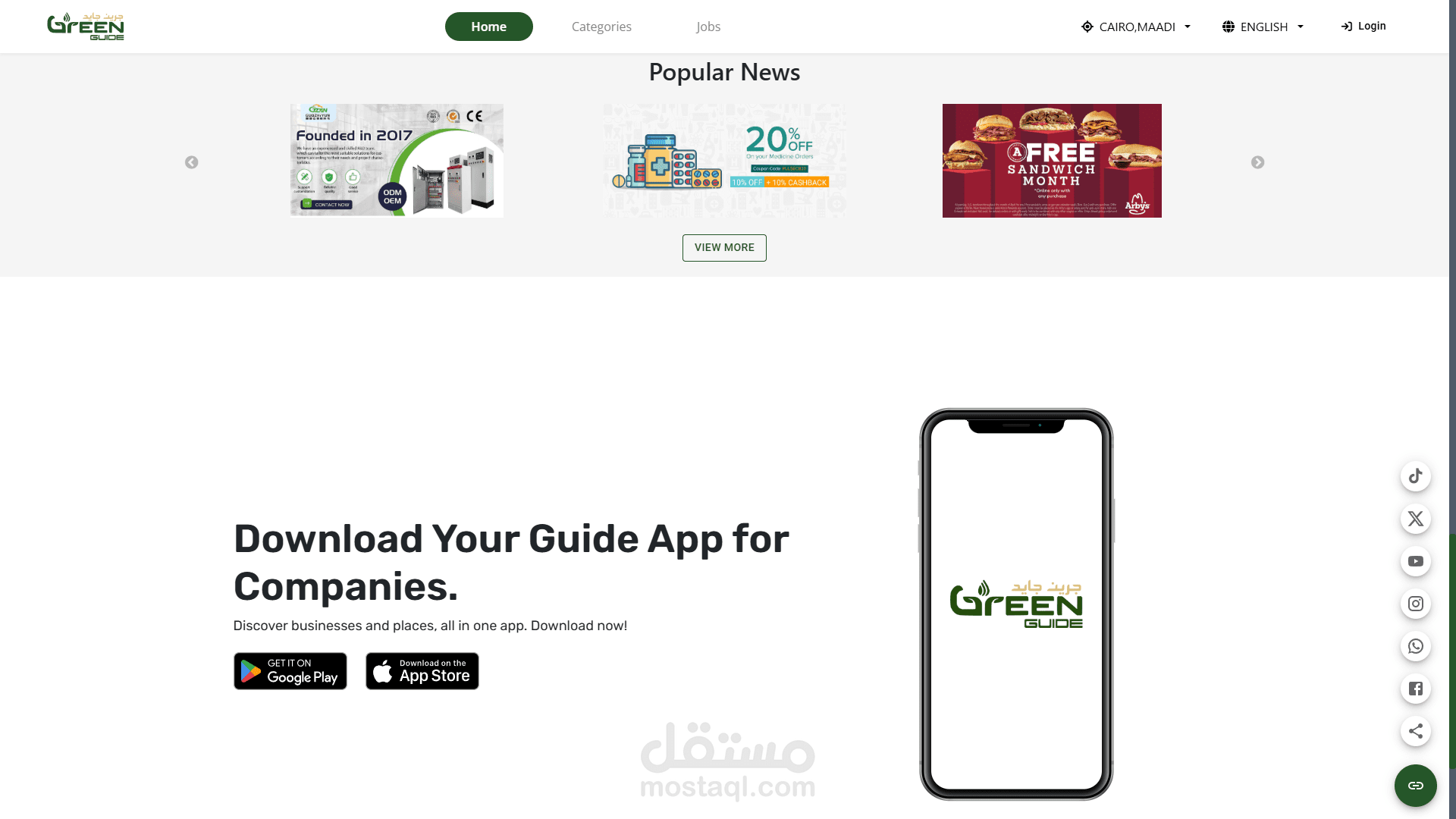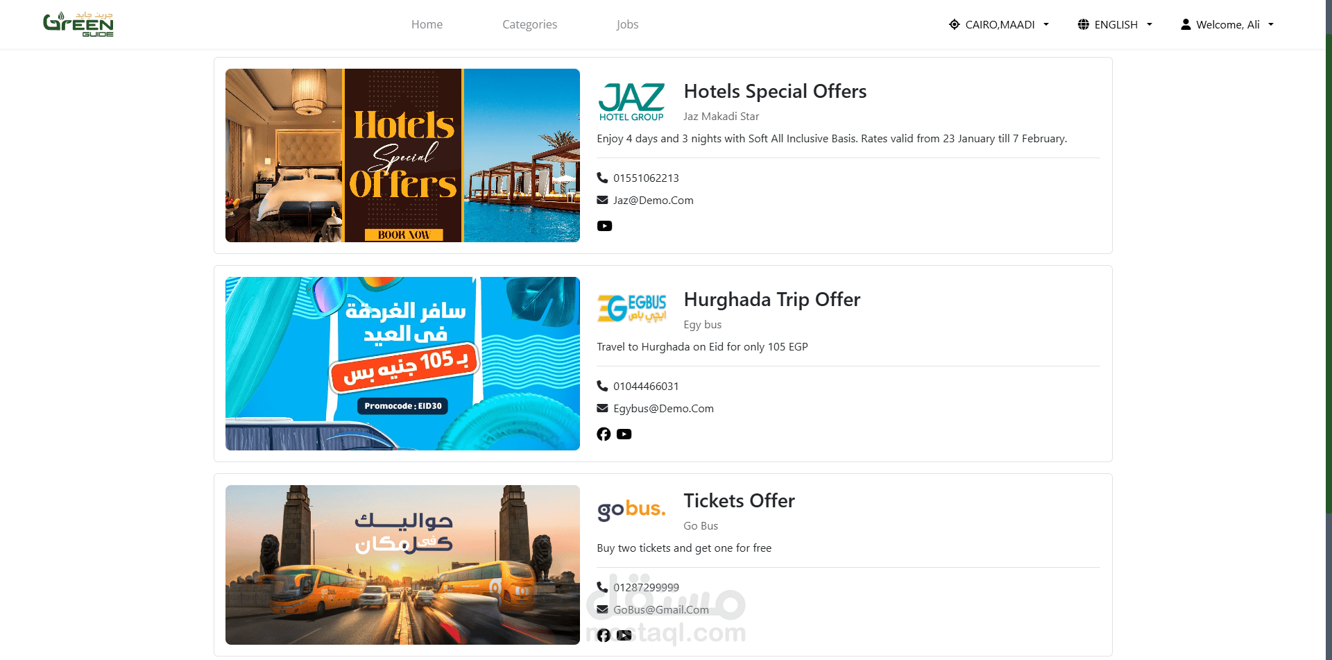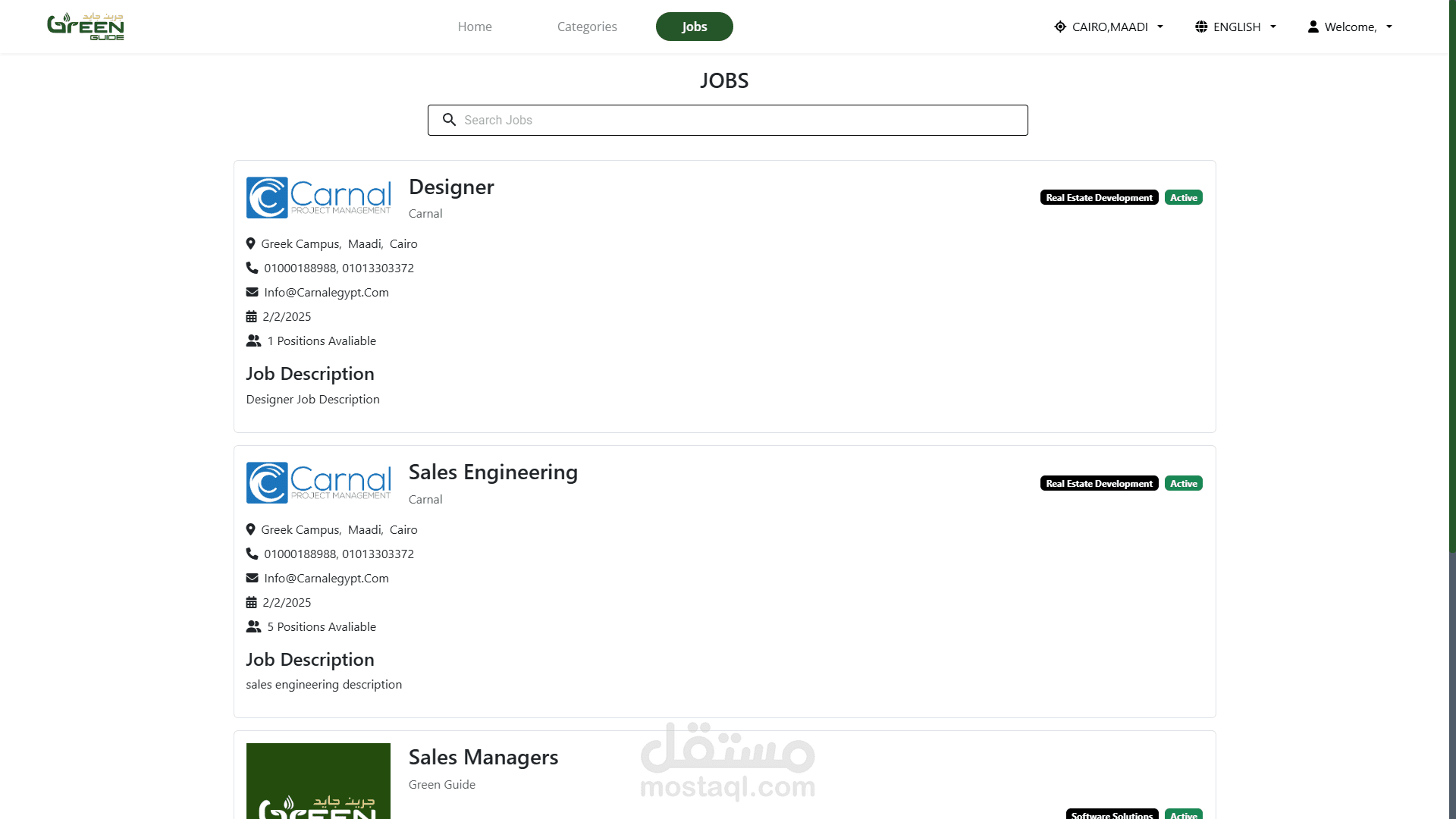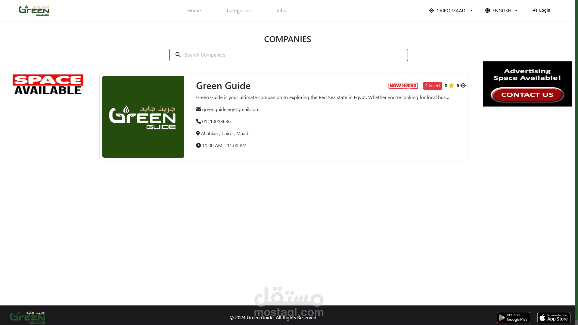 صُمم جرين جايد ليكون دليلاً شاملاً للأعمال في محافظات مصر، مع التركيز بشكل خاص على منطقة البحر الأحمر. يضم التطبيق أدلة متعددة، كل منها يحتوي على أقسام مُصنفة. لكل شركة ملف تعريفي خاص يعرض تفاصيلها ومعلومات الاتصال بها وقوائم الوظائف المتاحة. بالإضافة إلى ذلك، توجد صفحة وظائف منفصلة، تتيح للمستخدمين تصفح الوظائف والتقدم إليها مباشرةً عبر التطبيق.