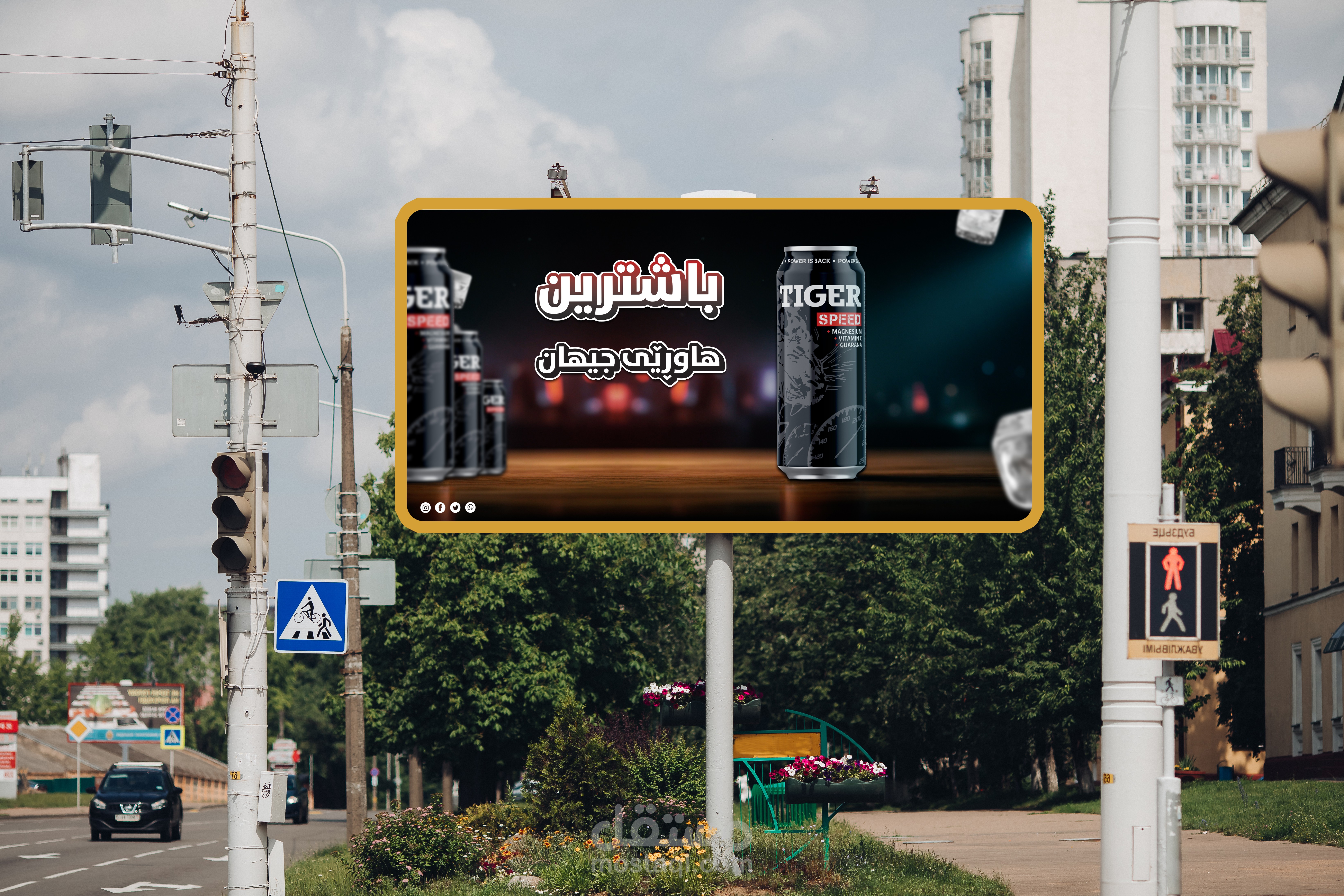 لوحة اعلانية لمنتج (مشروب طاقة)