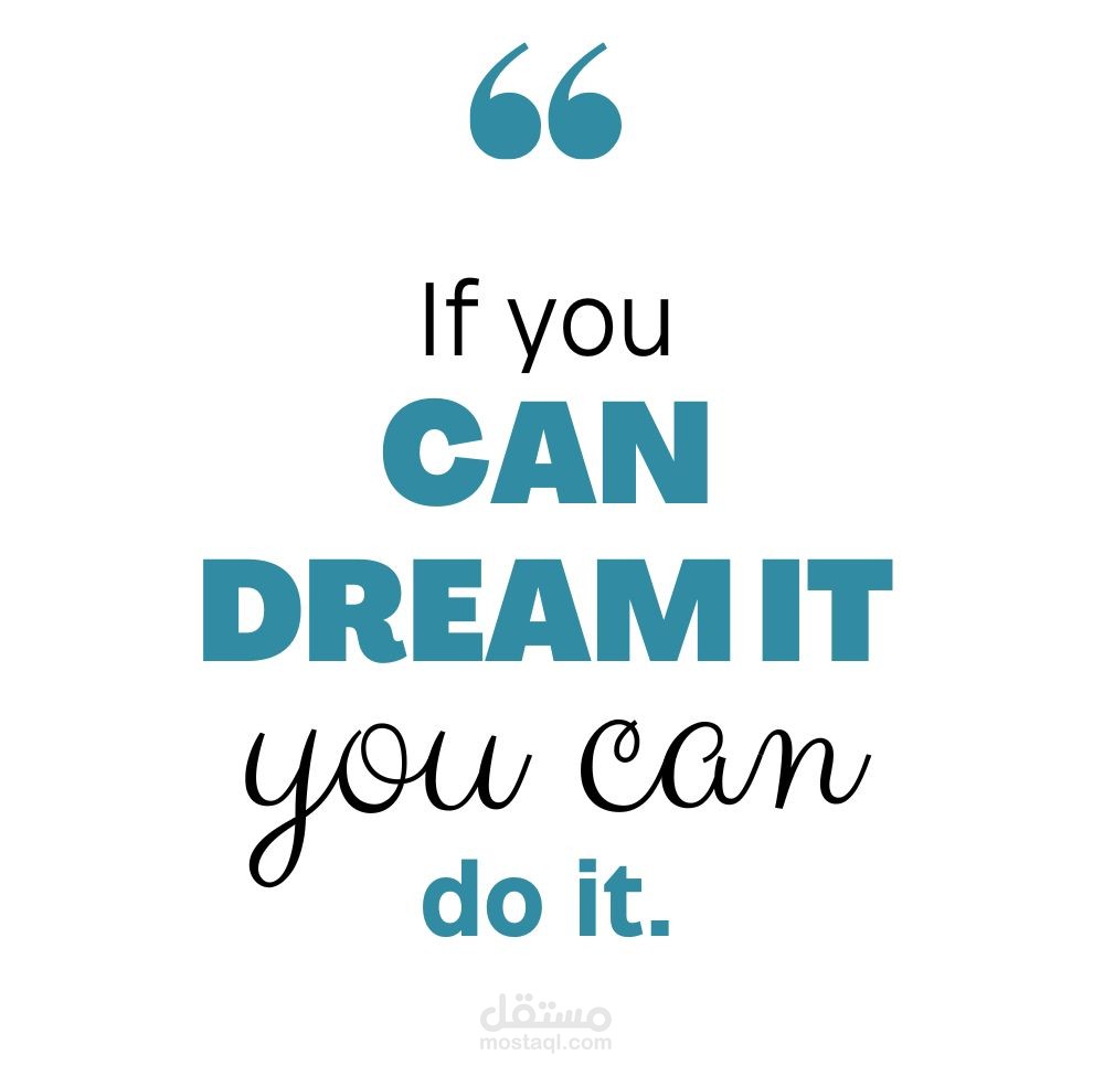 تم تصميم مج يحمل جملة "if You Can Dream it you can do it" باستخدام برامج التصميم الشهيرة كـ كانفا وفوتوشوب والإليستريتور. الجملة مصممة بأسلوب جذاب وملفت للنظر، مما يجعلها مثالية للاستخدام في مختلف السياقات مثل الهدايا أو الاستخدام الشخصي.