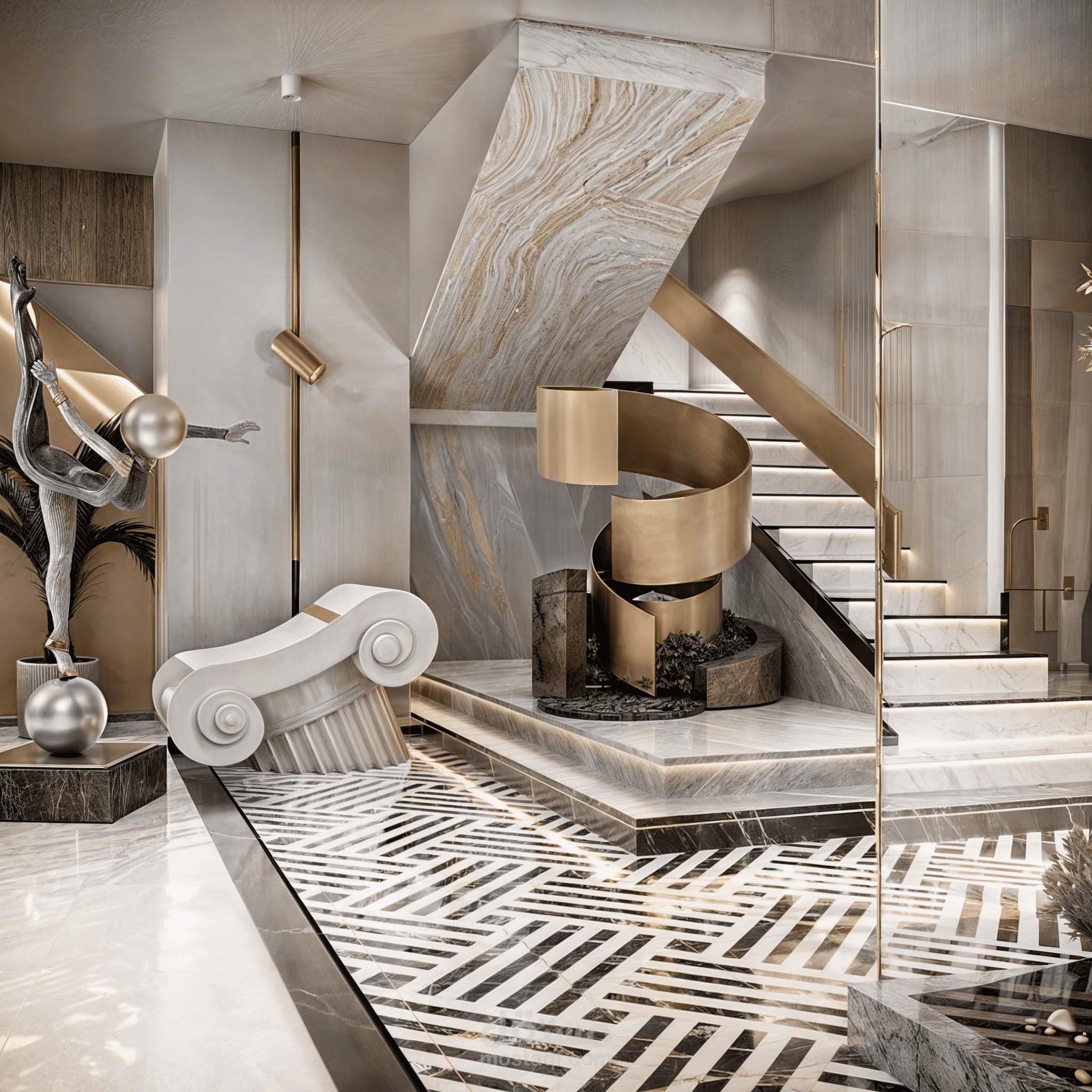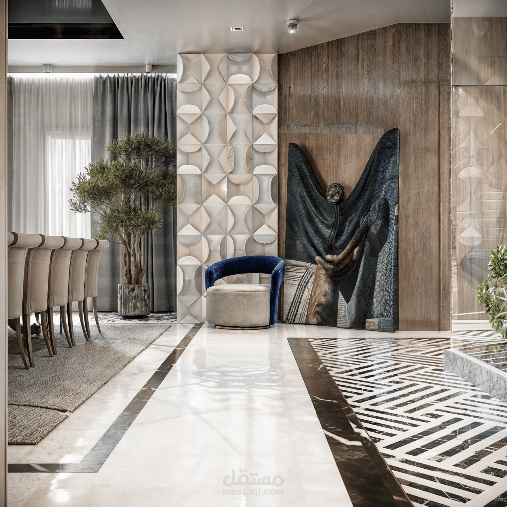 عمل تصميم داخلي مميز لمنطقة غرفة الطعام والاستقبال