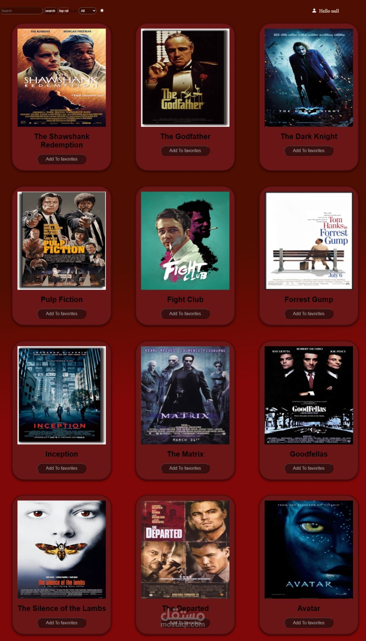 عمل موقع افلام باستخدام HTML و CSSوJS مكون من 5 صفحات ،(صفحة signupو، login ,صفحة الافلام ،و صفحة المشاهدة وصفحة الافلام المفضلة)