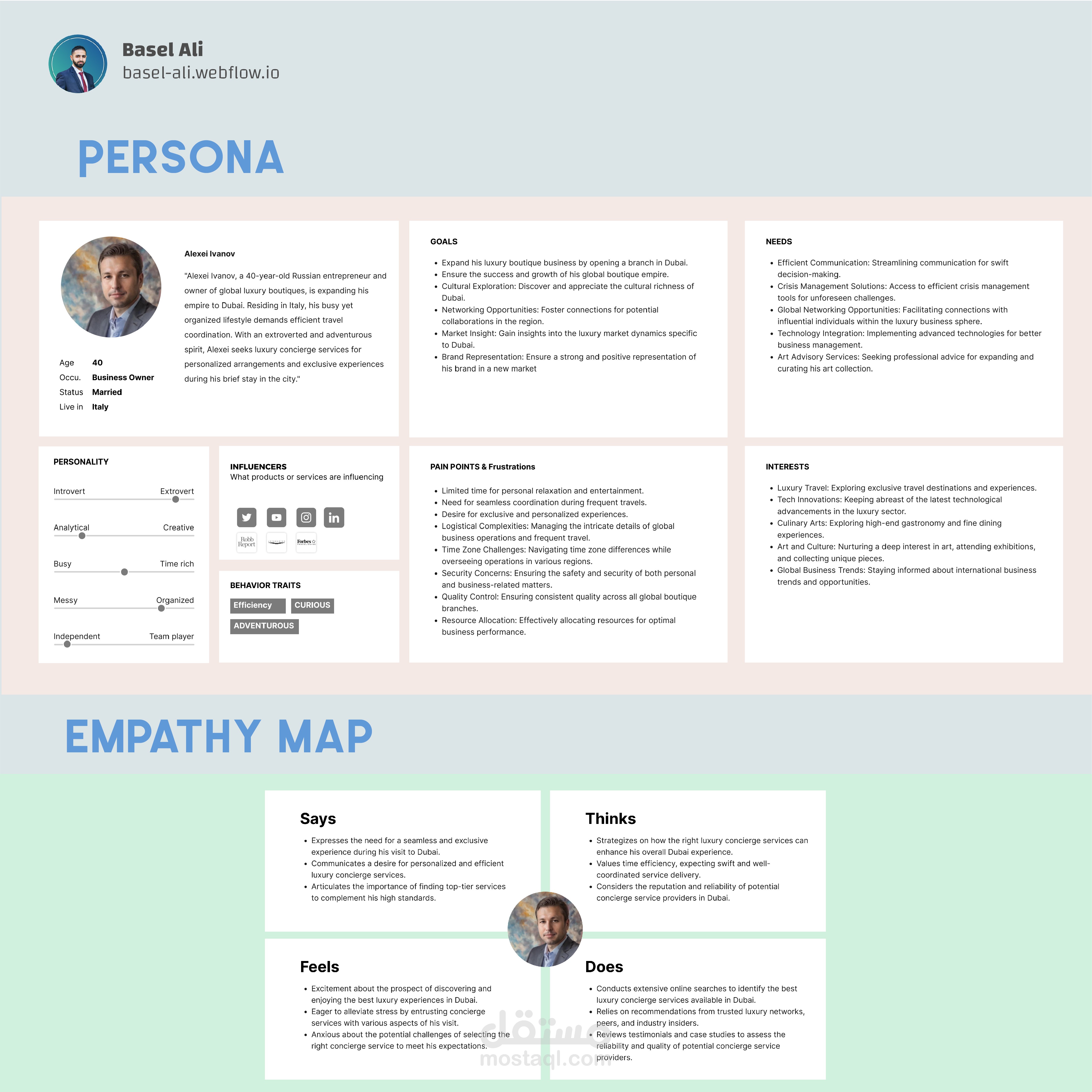 4- تم اعداد الشخصيات الافتراضية persona لفهم المستخدمين والتصميم بما يتناسب مع طموحاتهم وثقافتهم