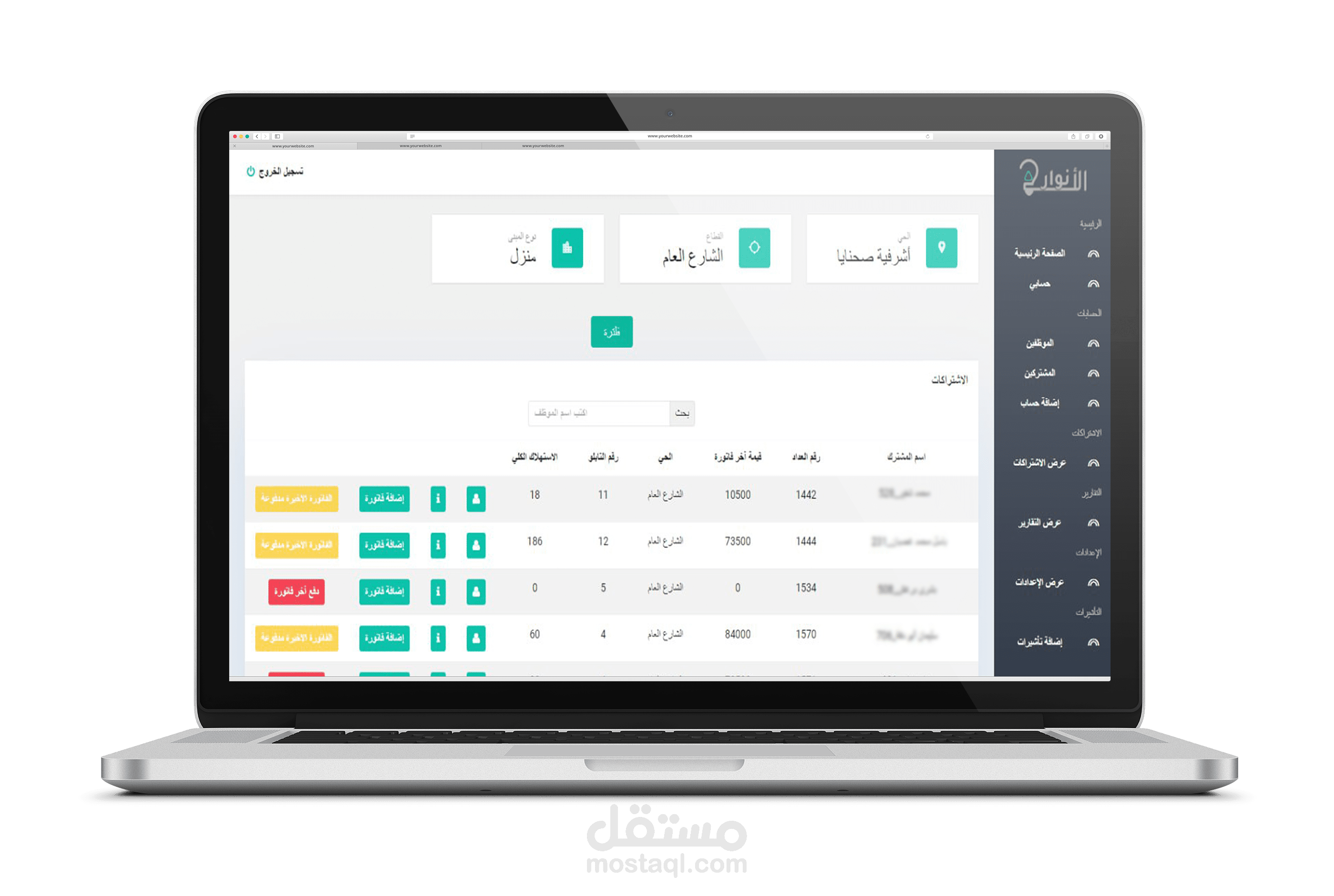 الأنوار هو نظام إدارة شركة كهرباء خاصة يوفر إدارة ذكية وموثوقة.