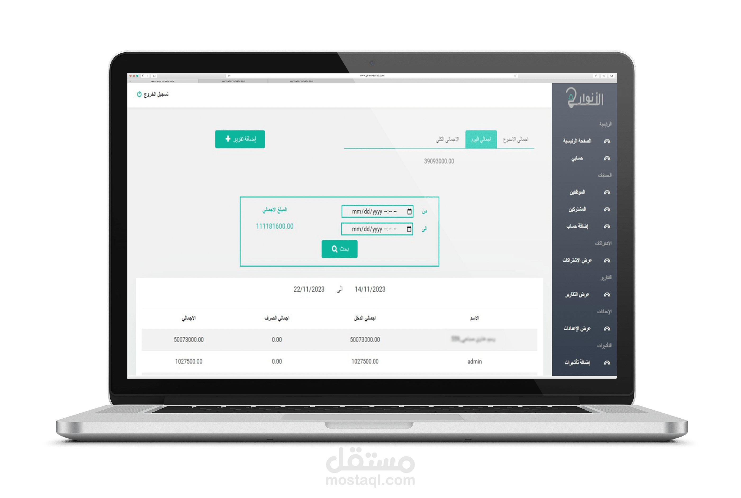 يوفر النظام لوحة تحكم للعاملين في شركة "الأنوار" لإدارة عدادات الكهرباء الخاصة بالمشتركين مع فوترة دورية للاستهلاك مع ميزة عرض كشف حساب لكل مستخدم
