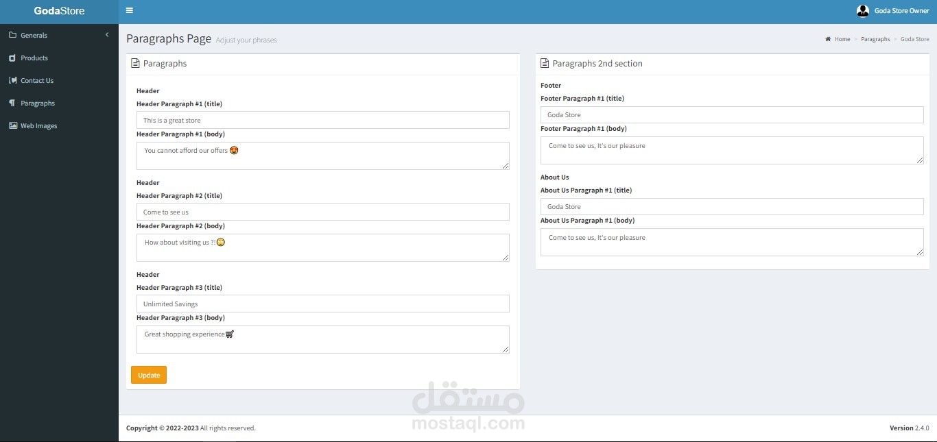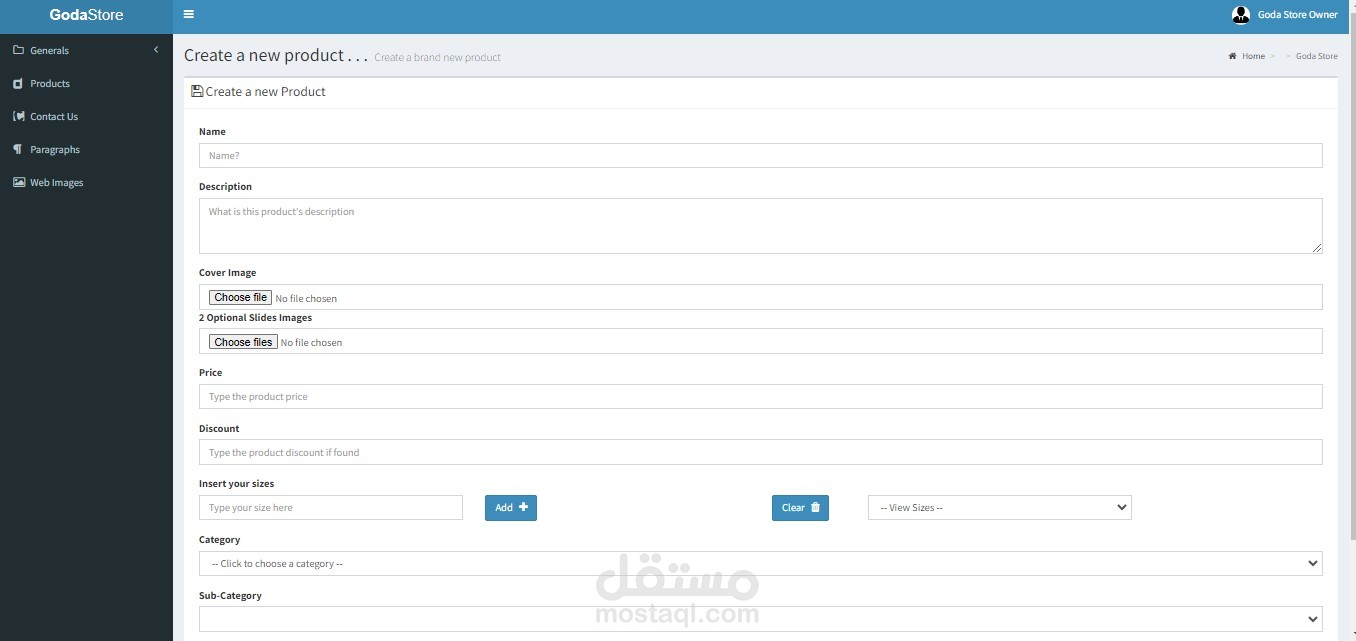 4 - يتيح الموقع لوحة تحكم لصاحب المشروع لاضافة وتعديل المنتجات حسب المتاح بالمخازن الفعلية