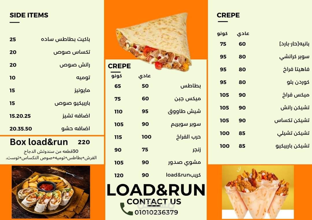 تصميم منيو ولوجو لمطعم load&run