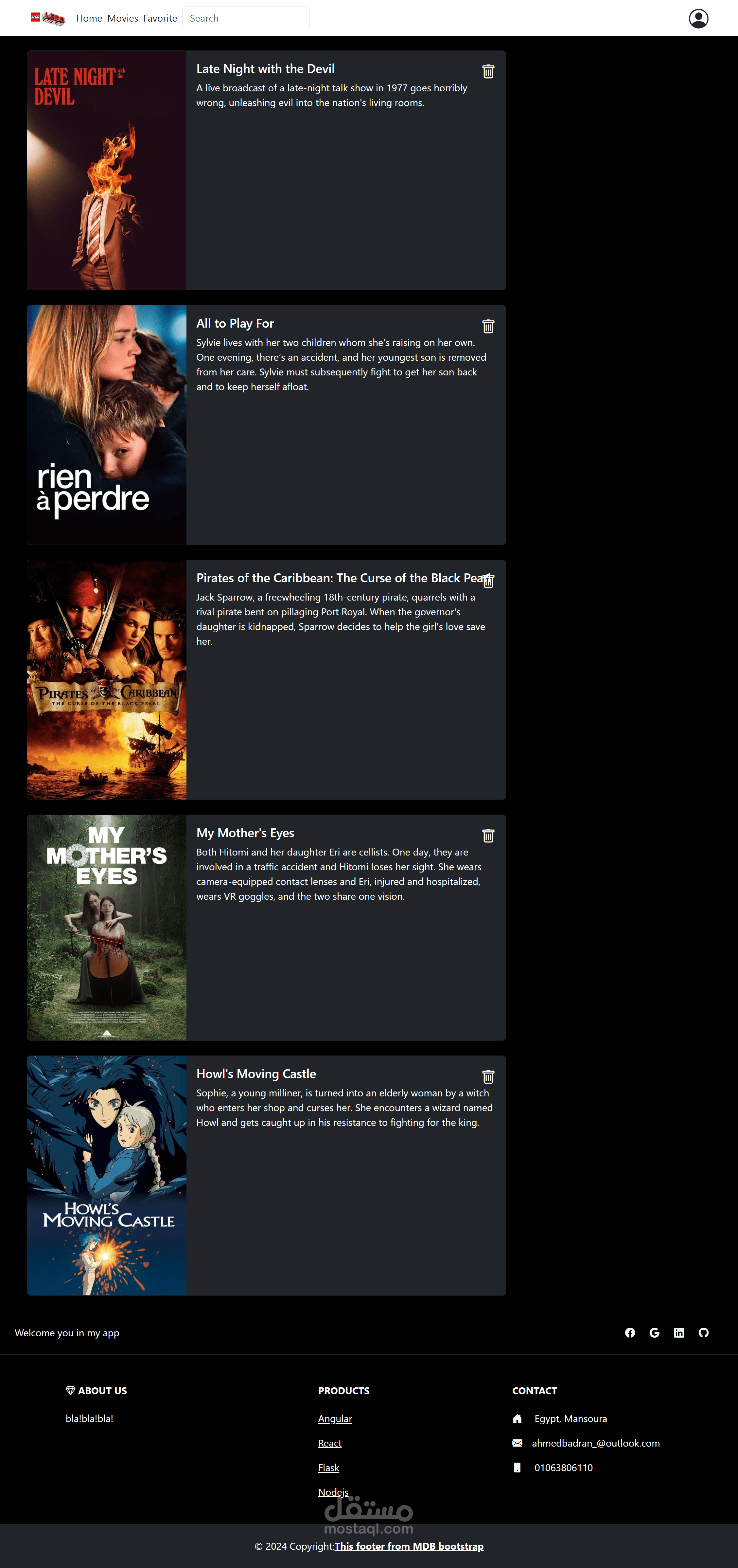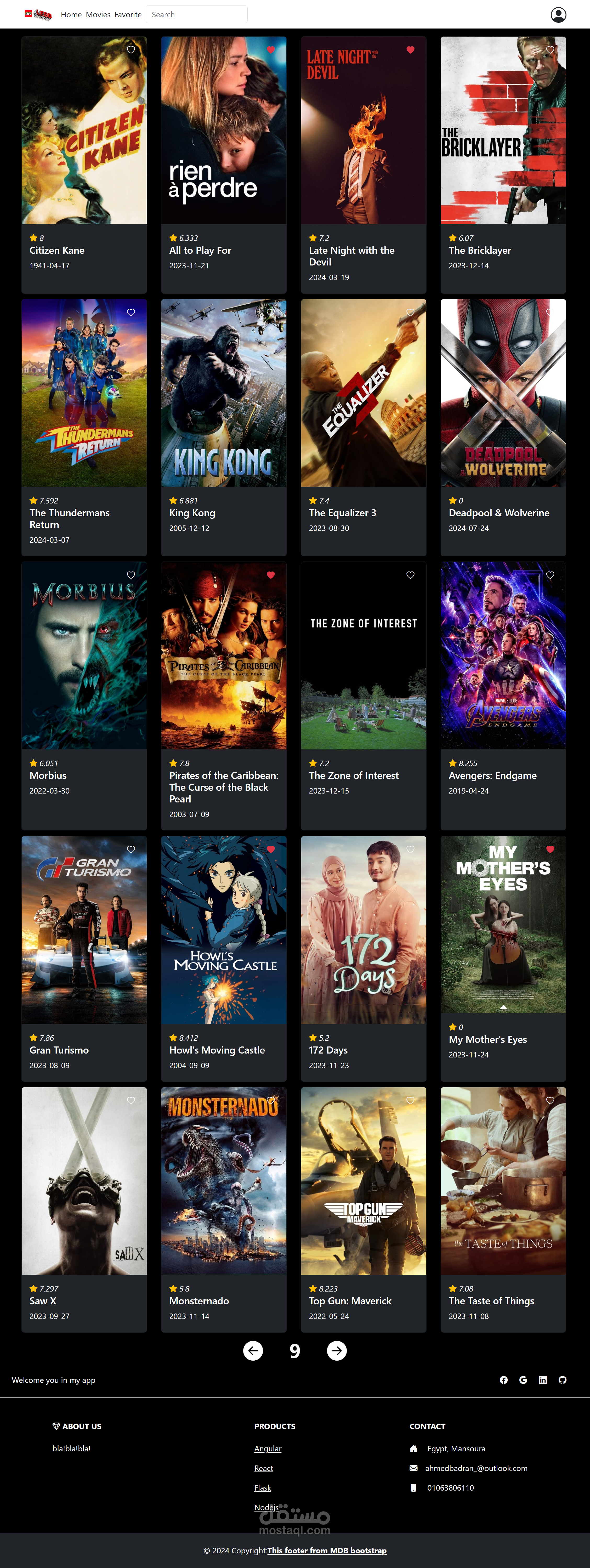 الموقع هو قاعدة بيانات لعرض الافلام والتفاصيل عنها. هو محتوي UI, باستخدام مكتبة React.