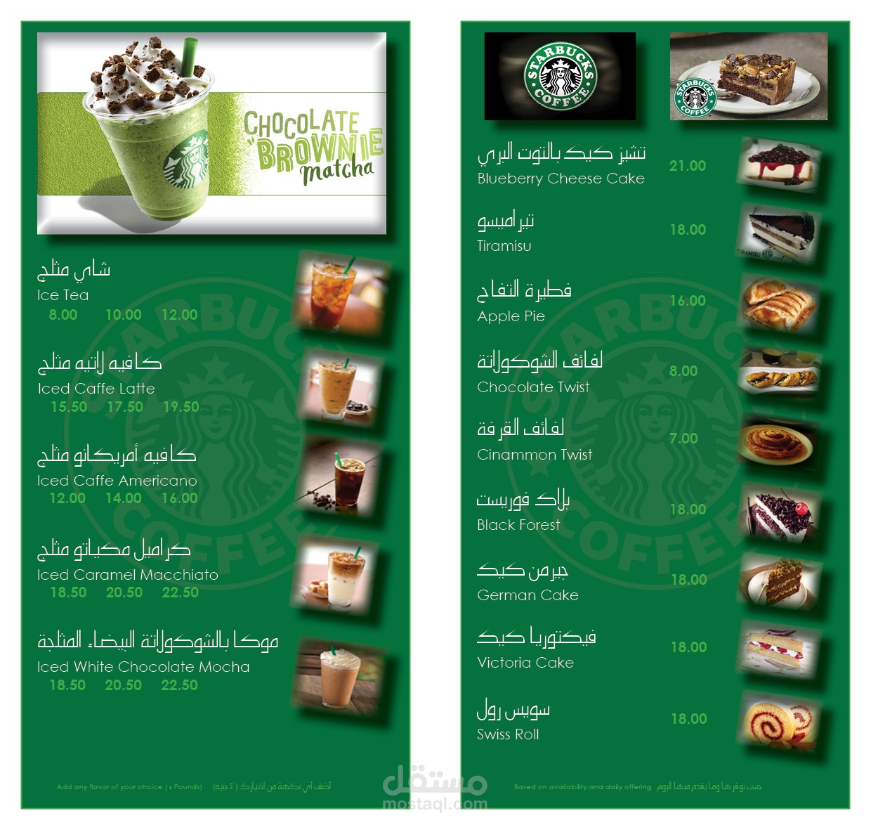 تصميمي لقائمة أسعار Starbucks