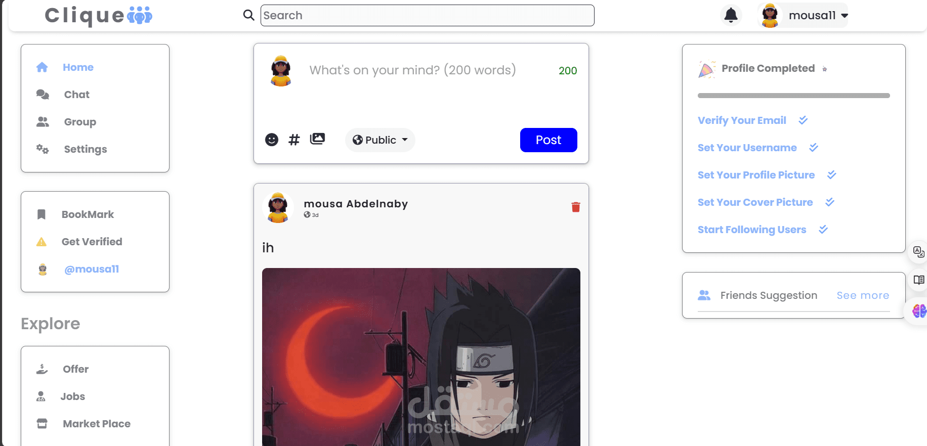 - عند الانضمام إلى مجتمع Clique، يمكن للمستخدمين استكشاف المنشورات والتفاعل معها عن طريق الإعجاب أو عدم الإعجاب أو التعليق. يمكنهم أيضًا متابعة المستخدمين الذين يهتمون بمحتواهم.