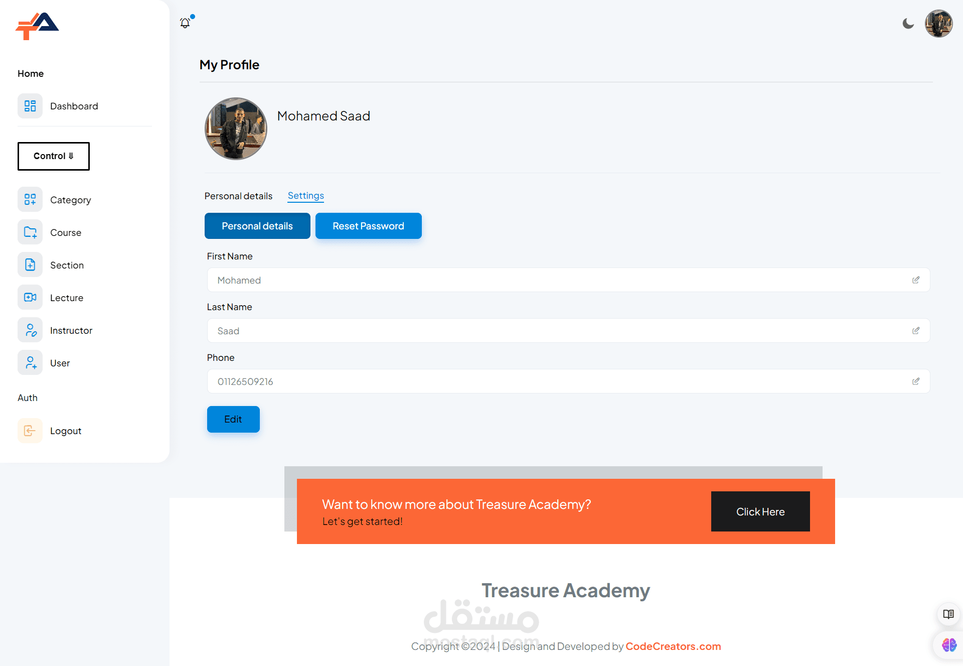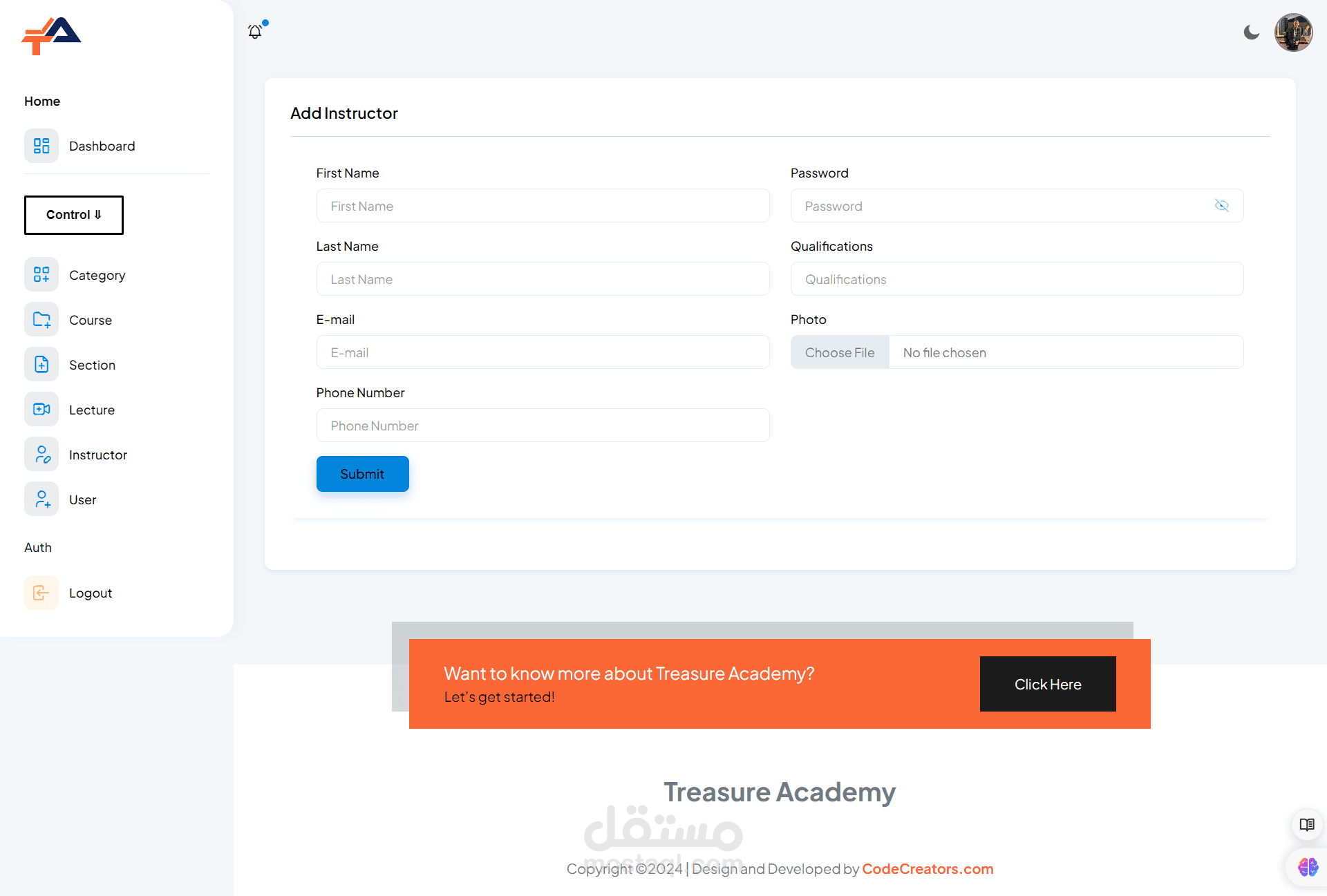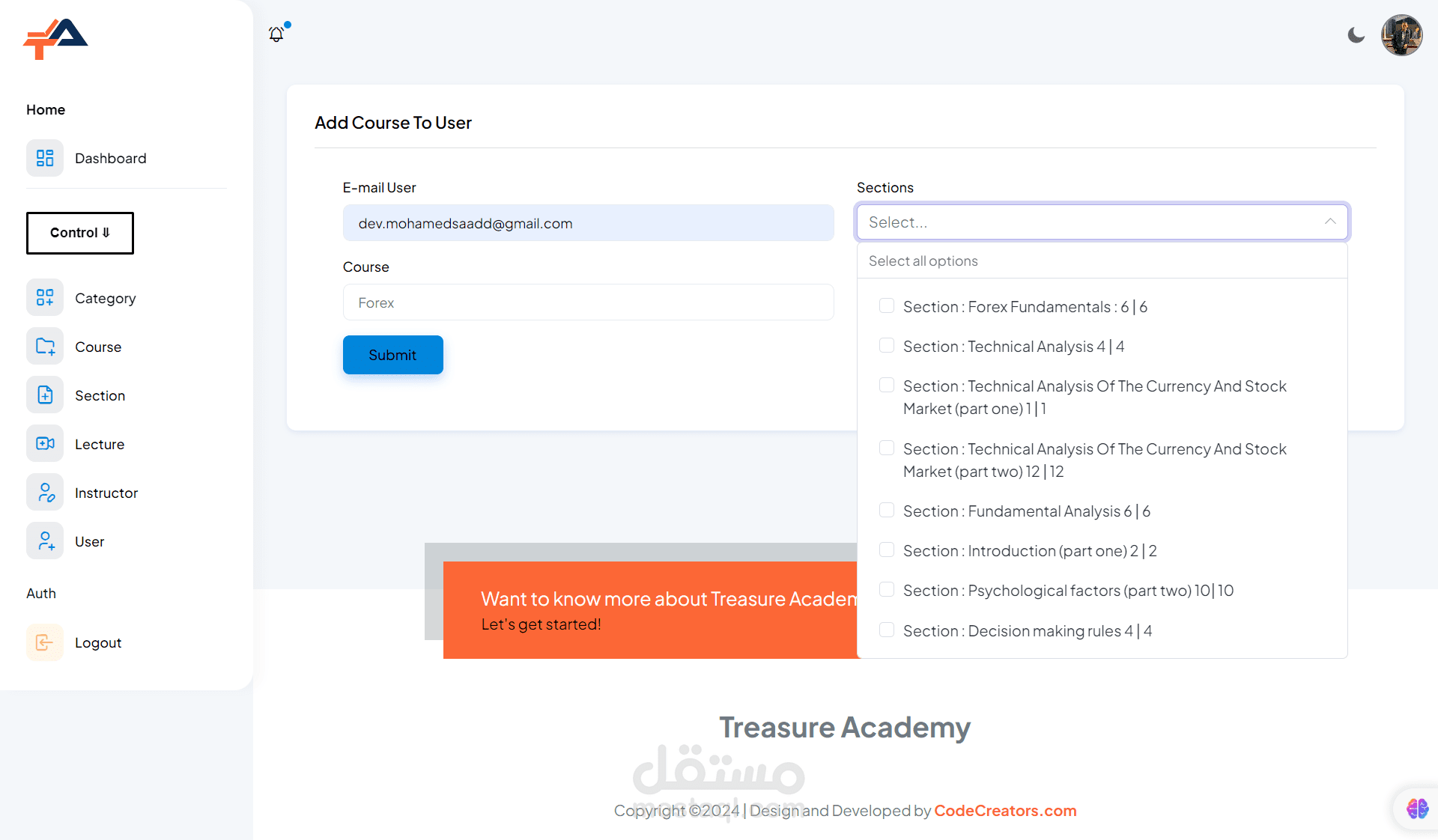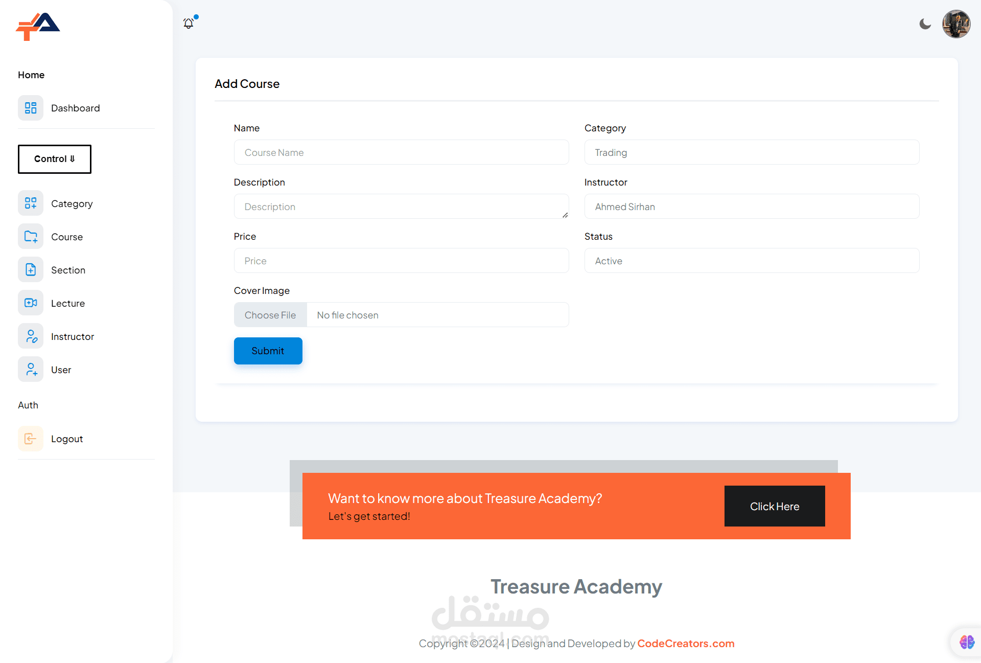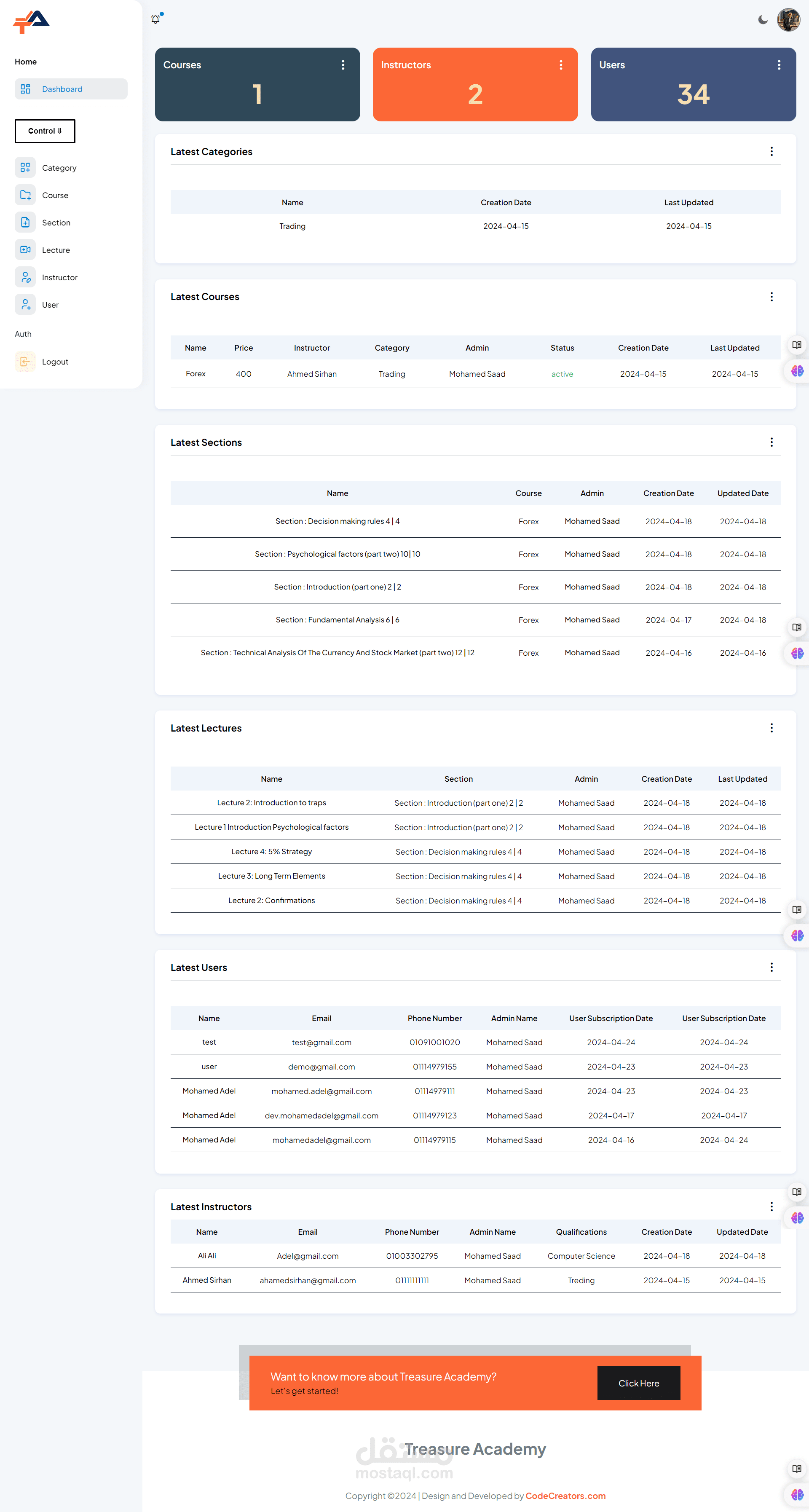 Admin Dashboard: Administrators have access to a powerful dashboard where they can manage courses, users, payments, and site settings. They can easily add, edit, or remove courses, monitor student progress, and analyze site performance through comprehensive analytics.