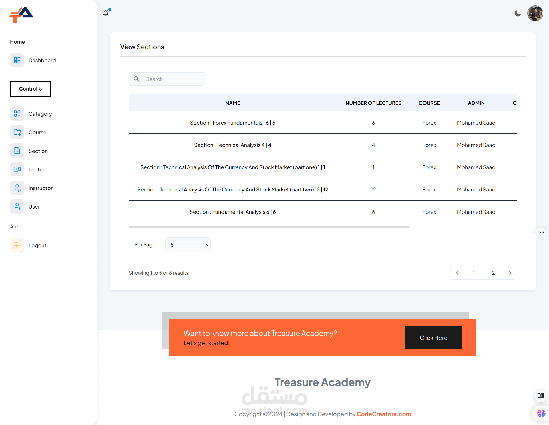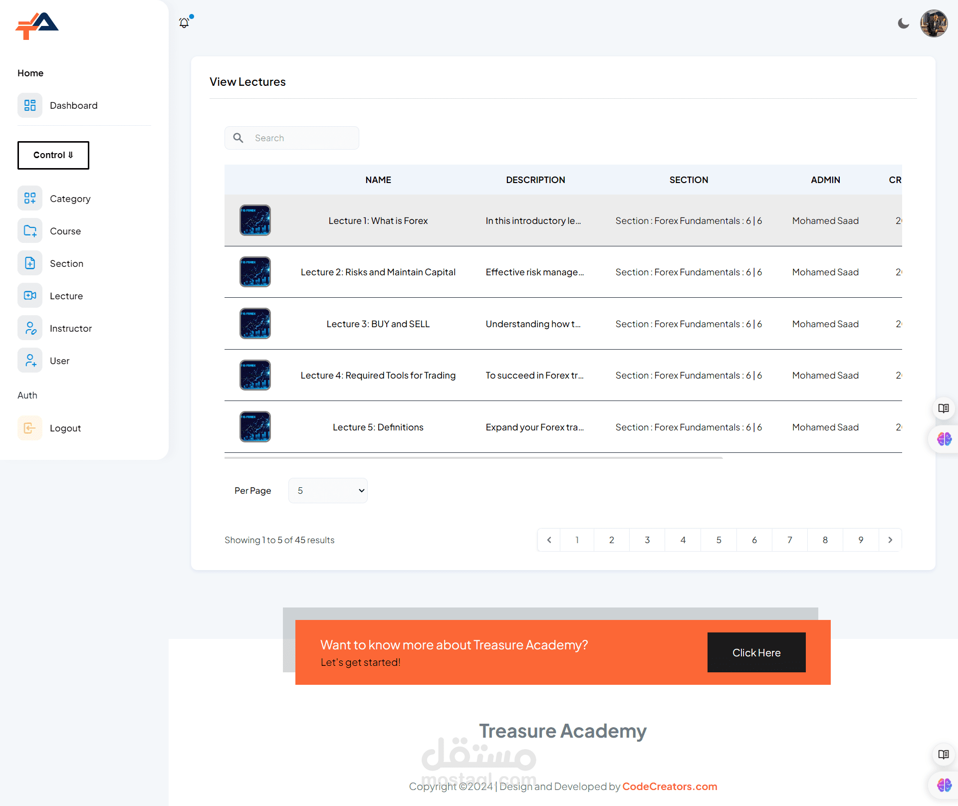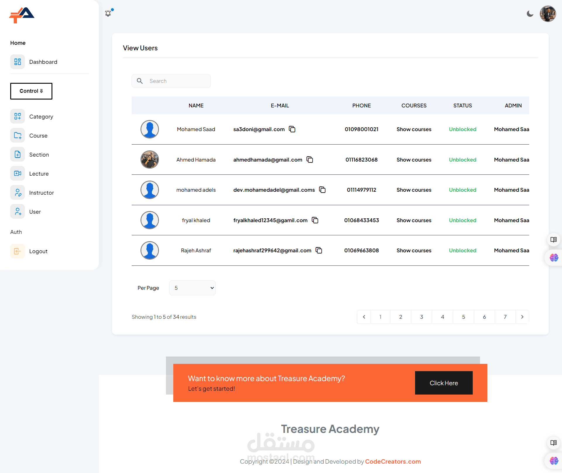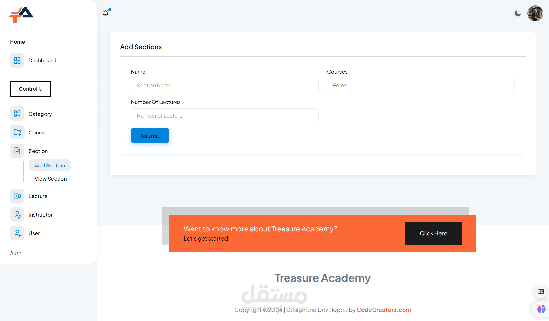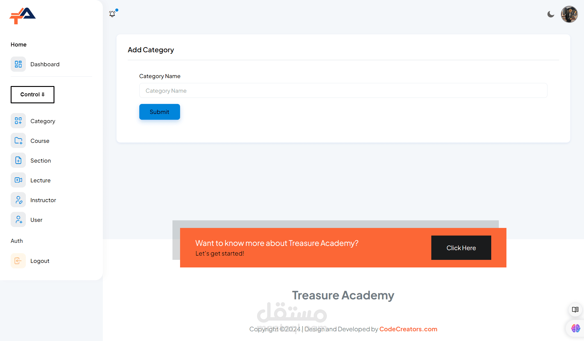 Admin Dashboard: Administrators have access to a powerful dashboard where they can manage courses, users, payments, and site settings. They can easily add, edit, or remove courses, monitor student progress, and analyze site performance through comprehensive analytics.