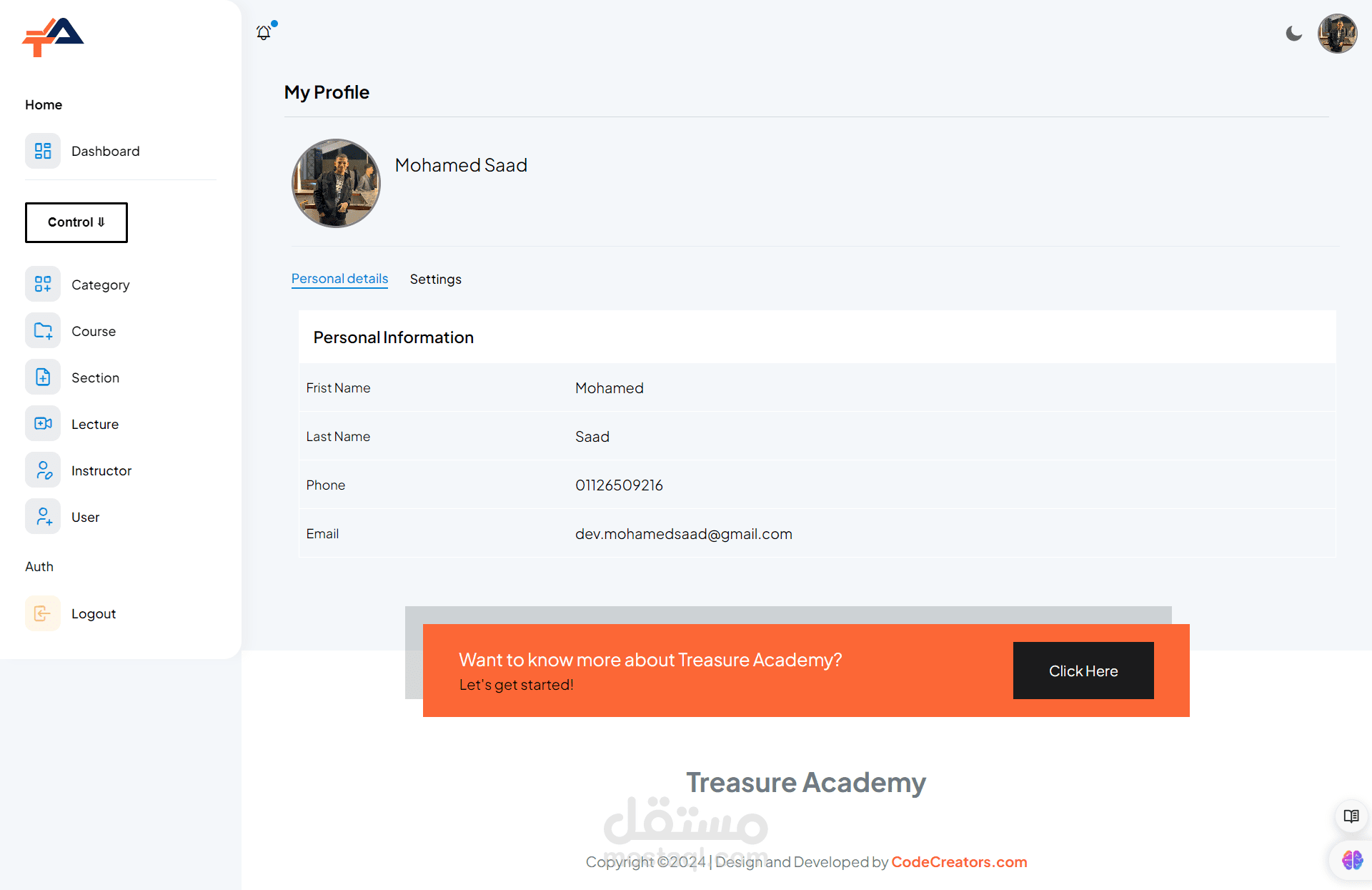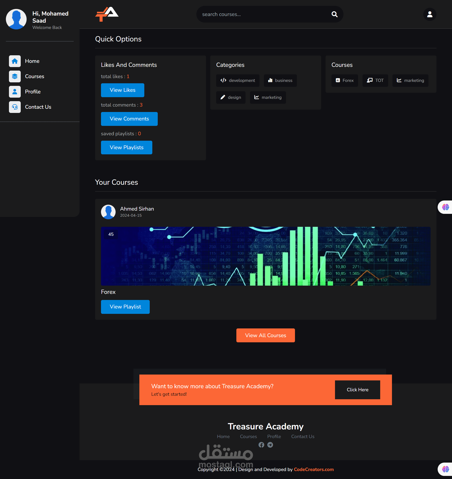 Student Dashboard: Students enjoy a personalized dashboard where they can enroll in courses, track their progress, access learning materials, and communicate with instructors. The dashboard provides a seamless user experience, making it easy for students to navigate and engage with their coursework.