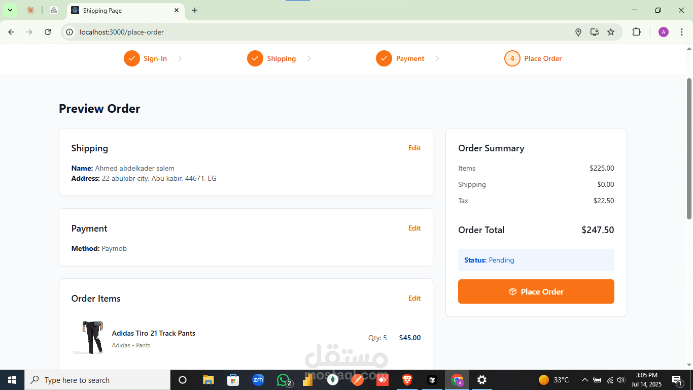 Tech Stack: MongoDB, Express.js, React.js, Node.js, Redux Toolkit, RTK Query, Tailwind CSS, MUI, JWT, PayPal & Paymob Integration