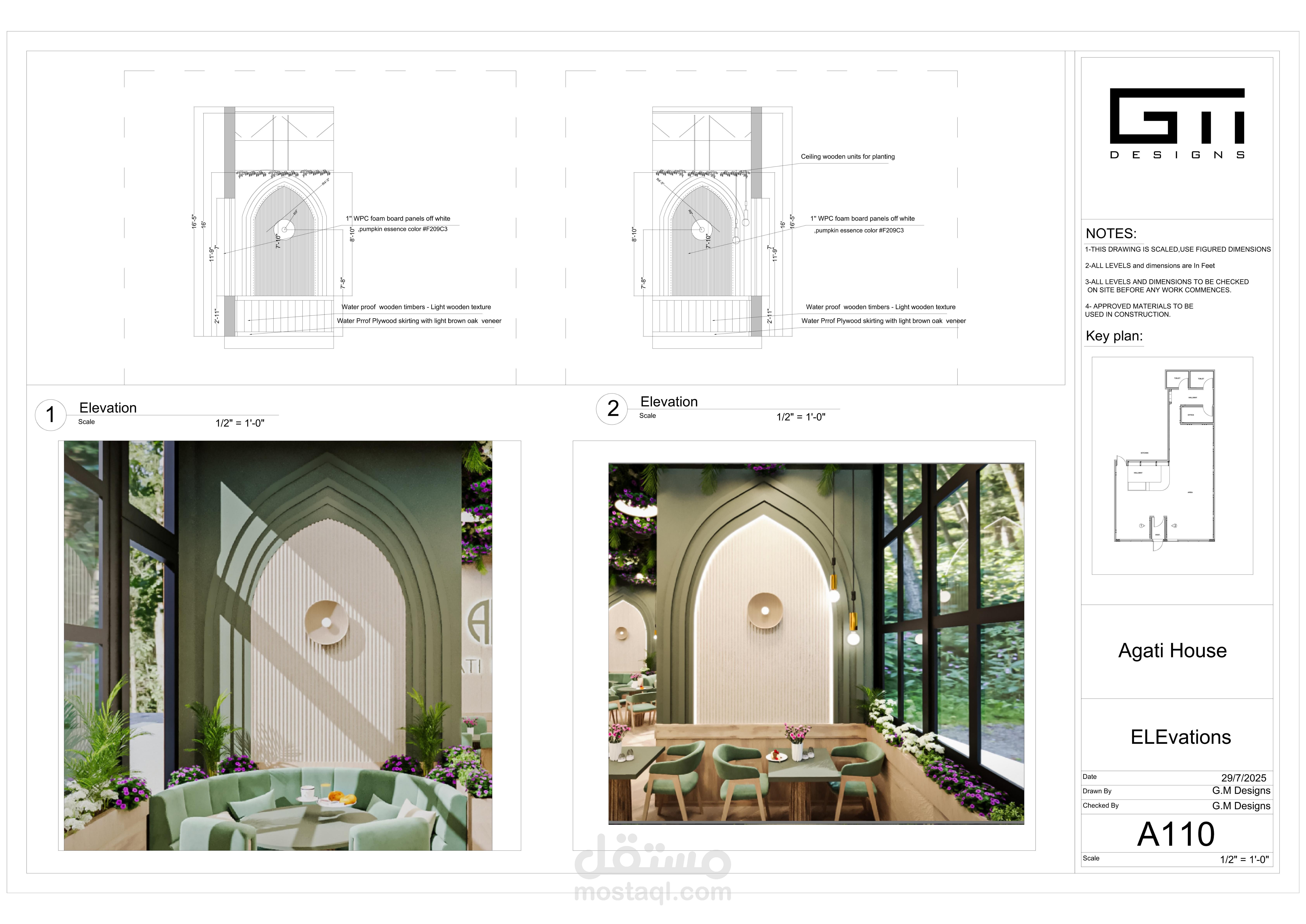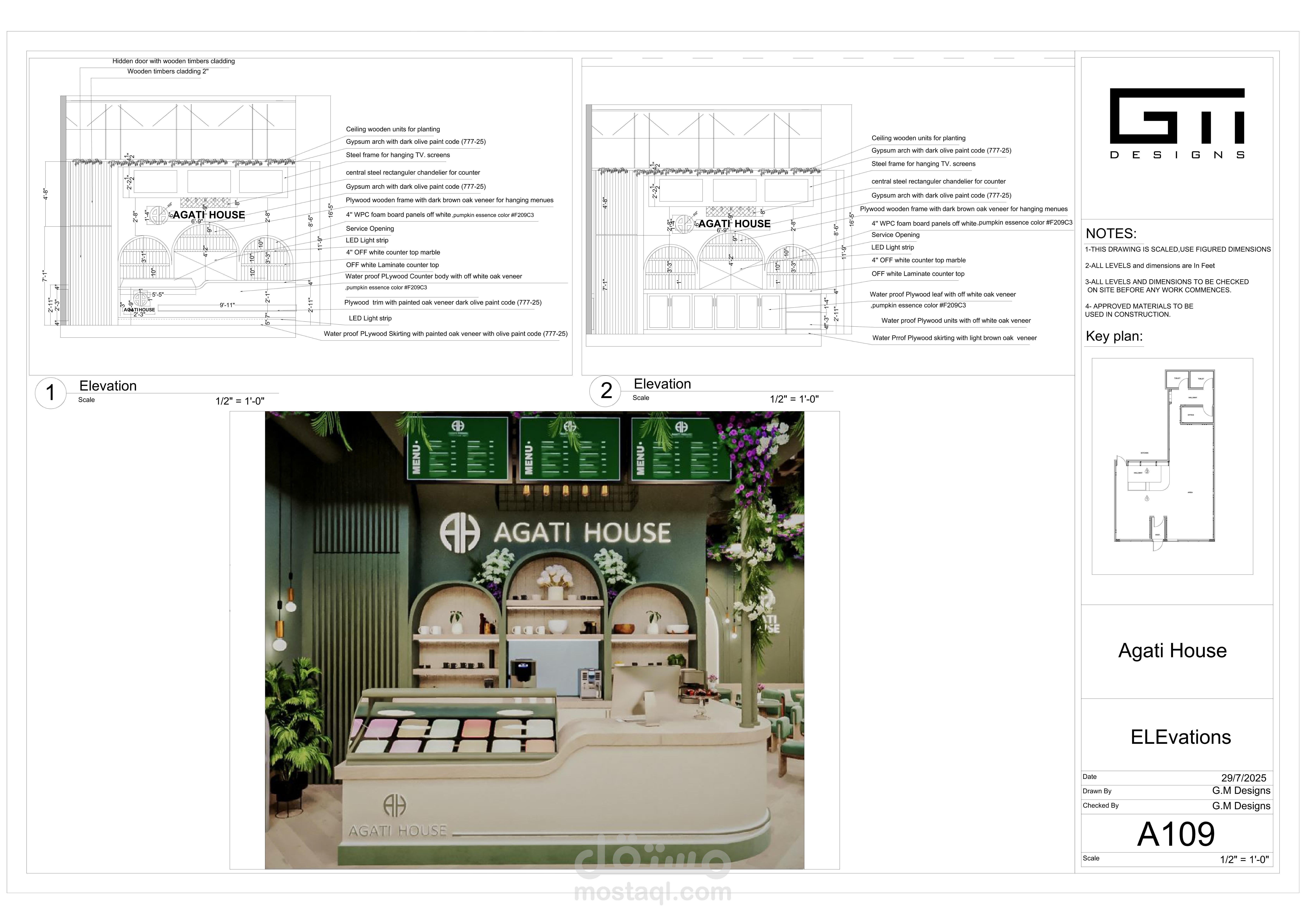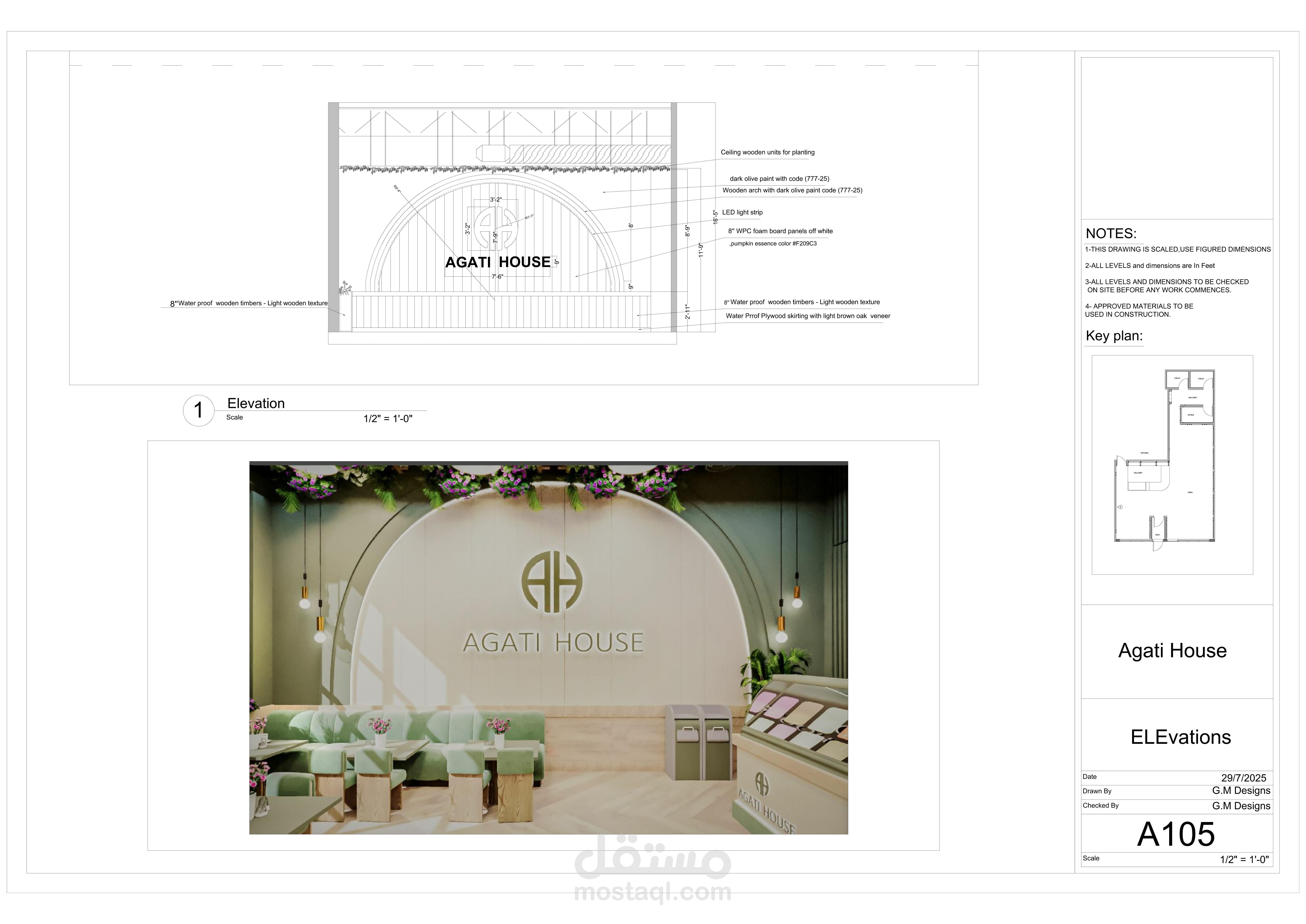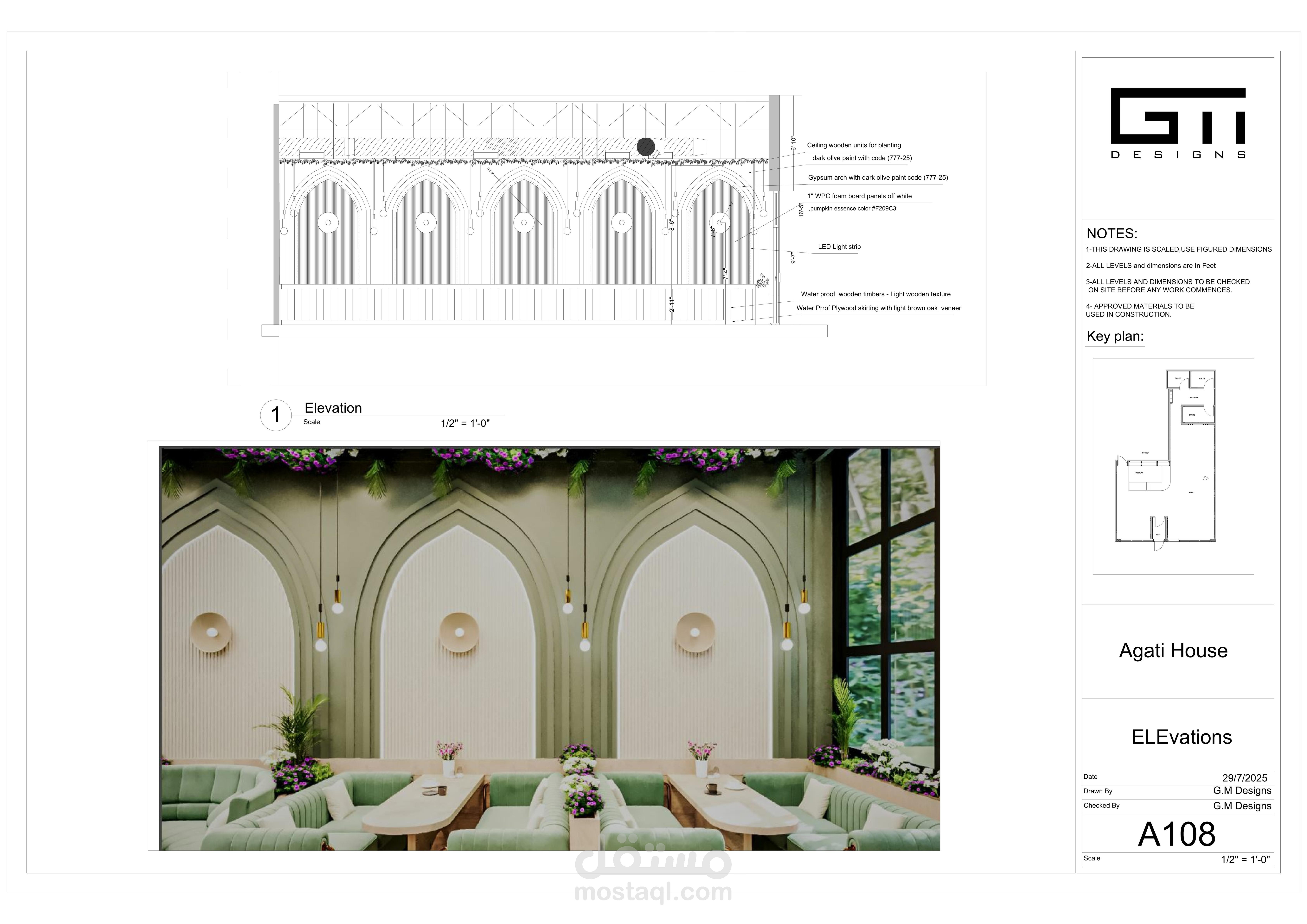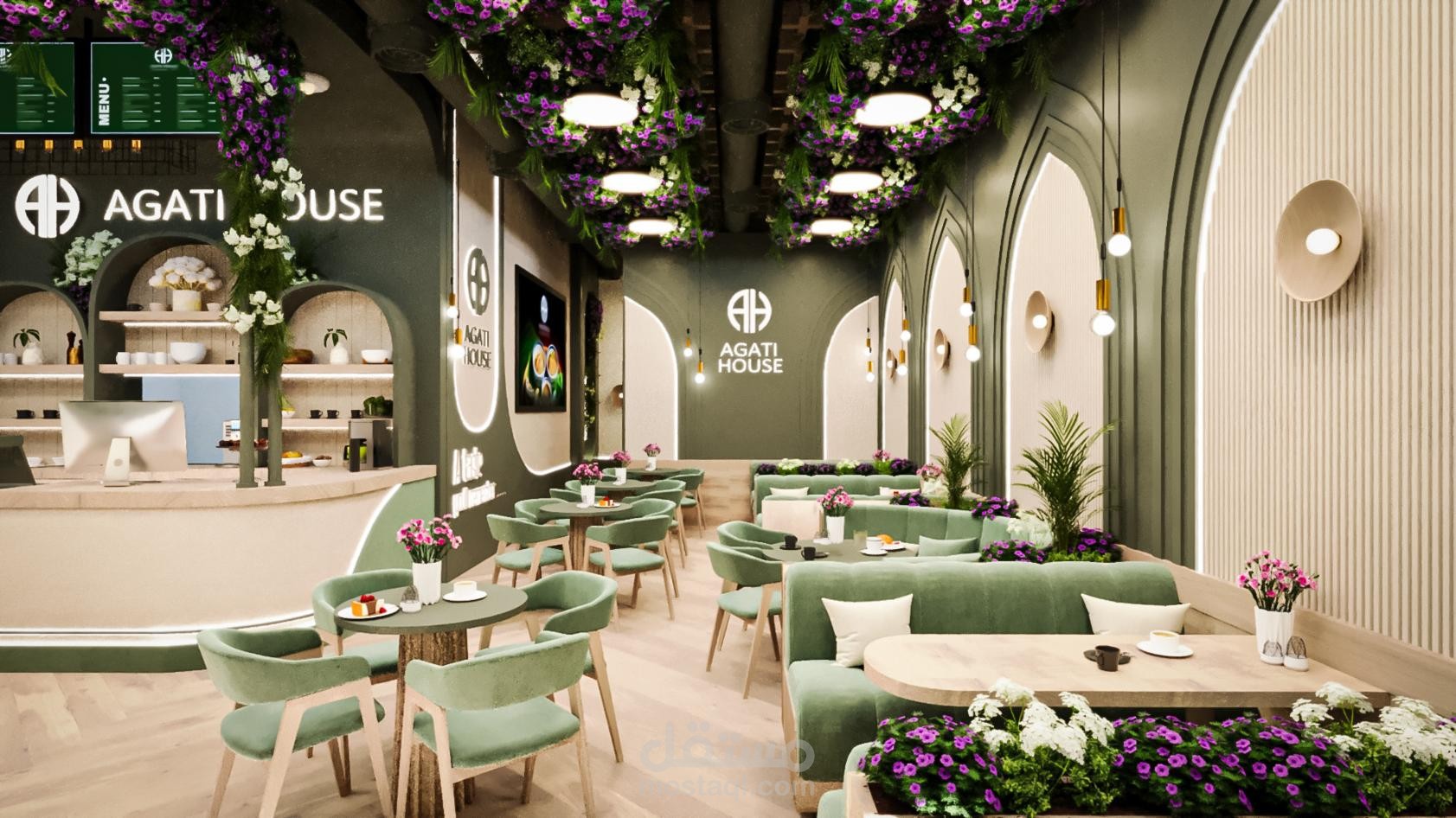 SCOPE OF WORK : The project main scope was to design AGATI HOUSE Restaurant in USA the design main focus is to make a place with cozy , Quite & relaxing style with natural design and interior planting .