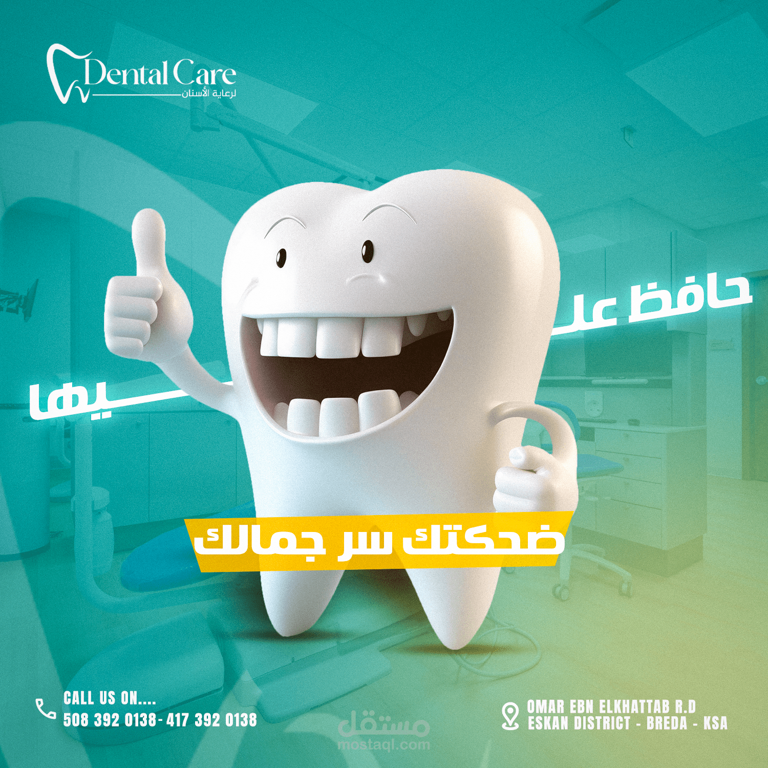 تصميم بوستات سوشيال ميجيا خاصى بعيادة أسنان مقرها المملكة العربية السعودية وتم تسليم الأعمال وحازت على رضاء العميل