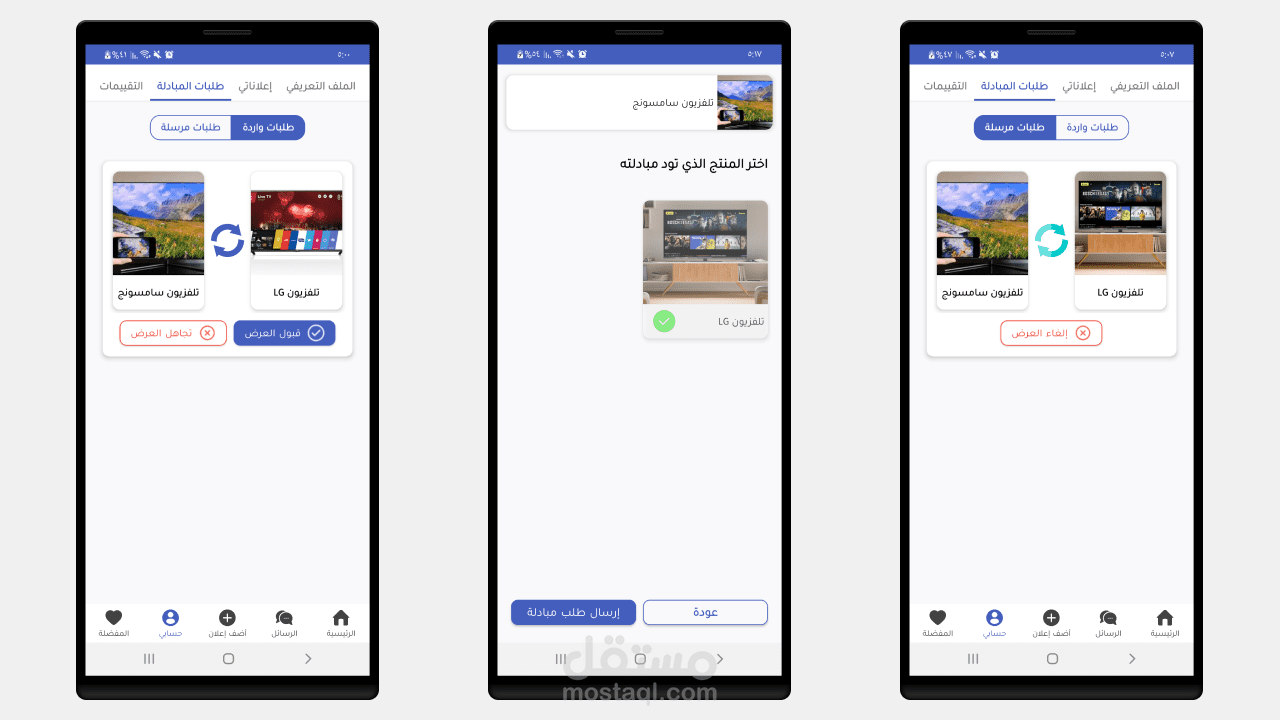 - عرض طلبات المبادلة الواردة أو طلبات المبادلة المرسلة
