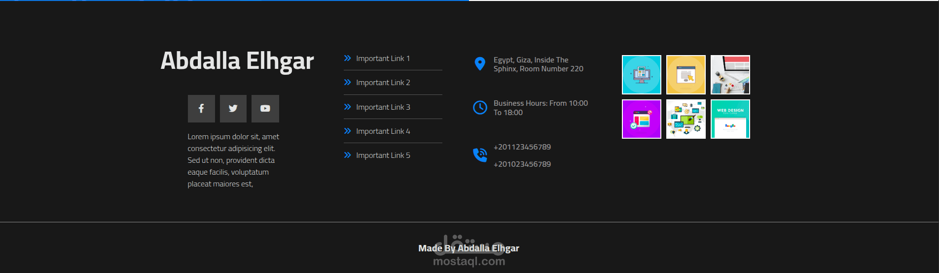 Elhagar World هو مشروع صفحة هبوط (Landing Page) تم تطويره بهدف استعراض مهاراتي في استخدام المؤثرات الحركية (CSS Animations) داخل واجهات المستخدم.