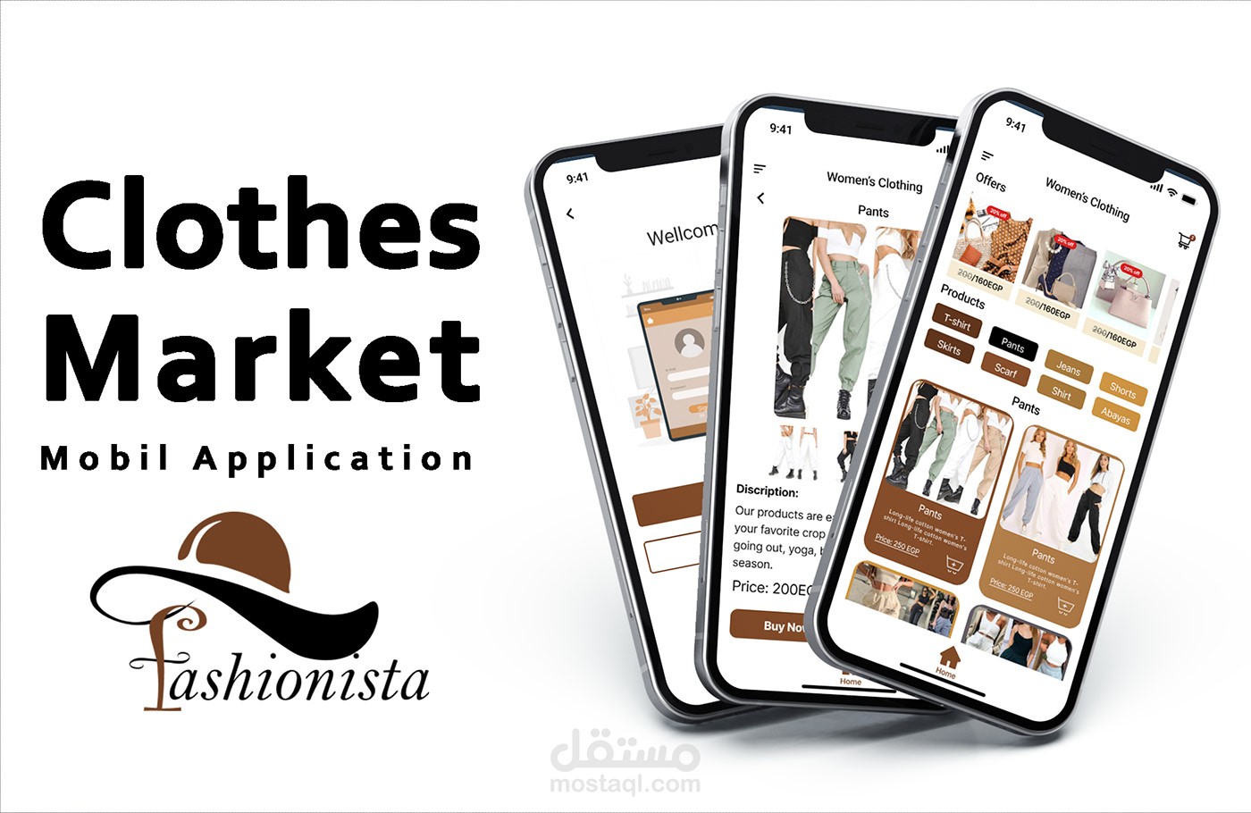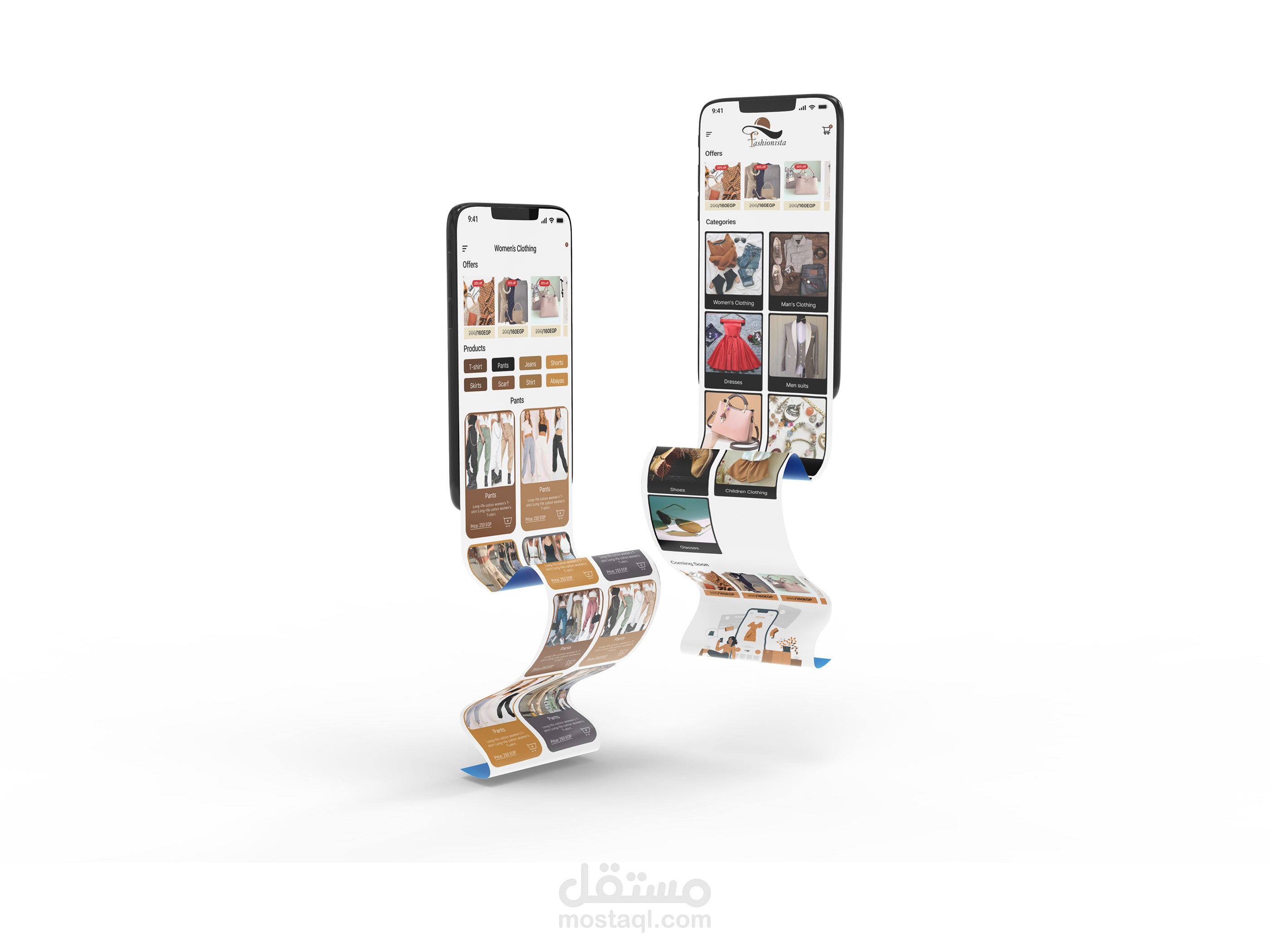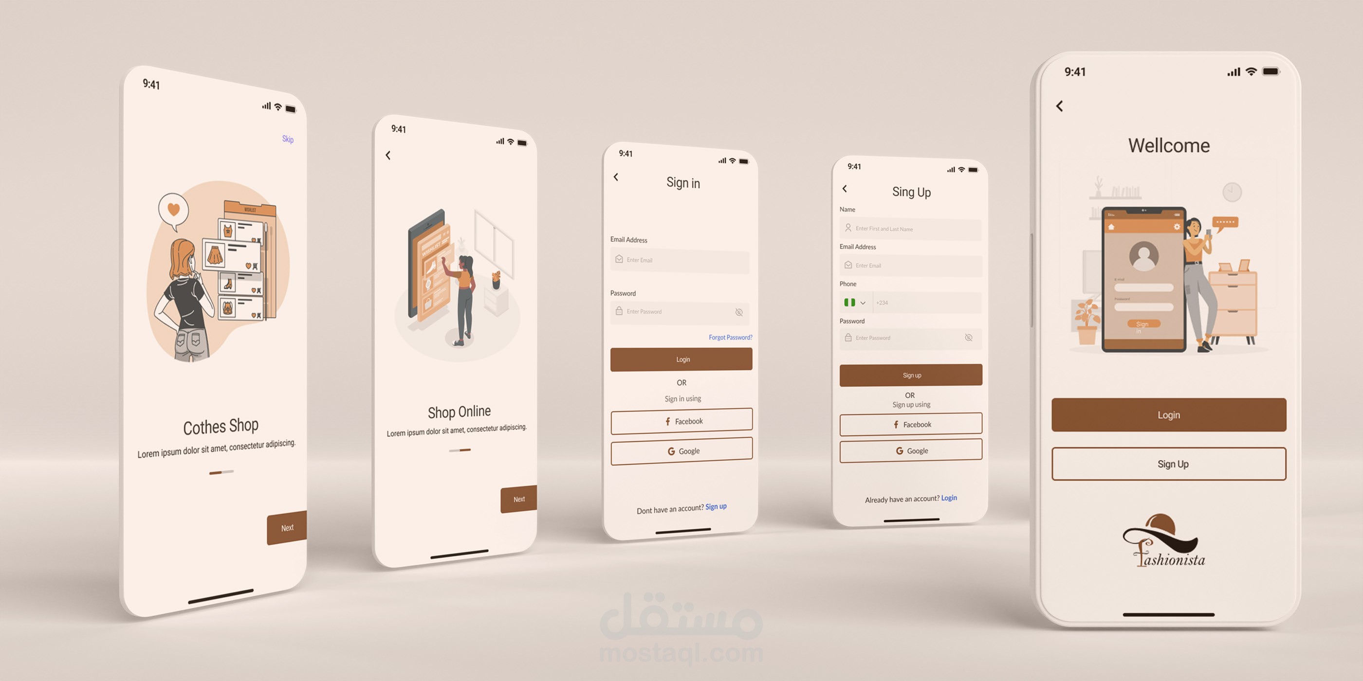 عمل تصميم واجهه مستخدم عن طريف برنامج فيجما لتطبيق ملابس كلاسيكي اسمه فاشونيستا