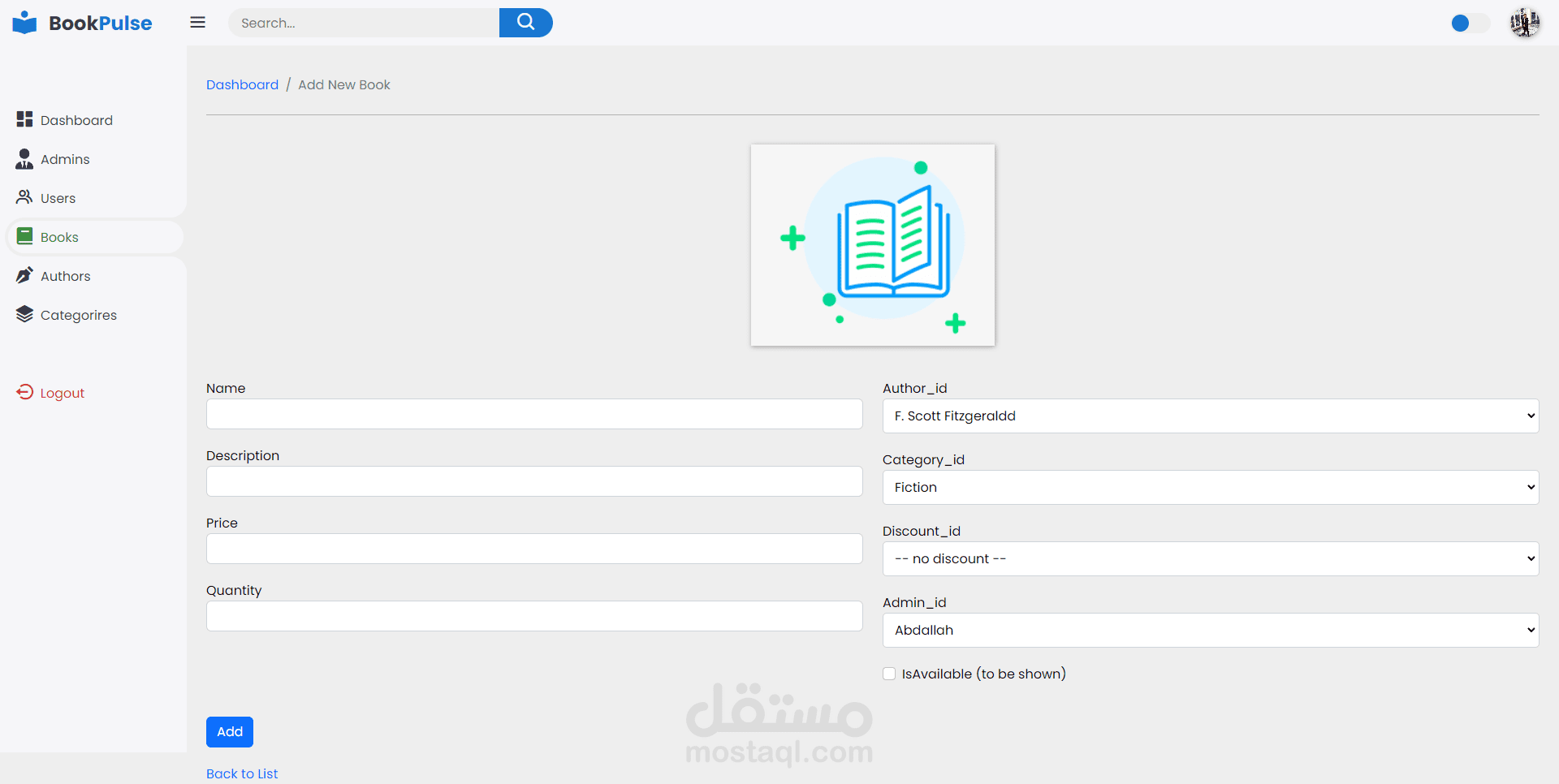 - إضافة أو تعديل كتاب