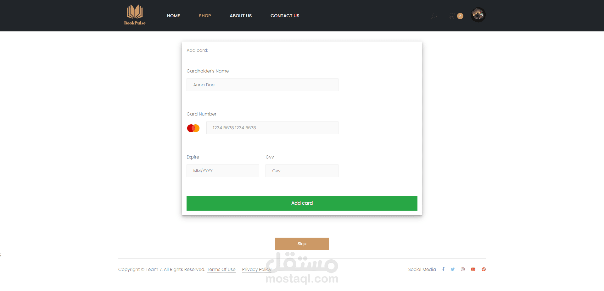 - إضافة فيزا أو التخطى والدفع عند الاستلام