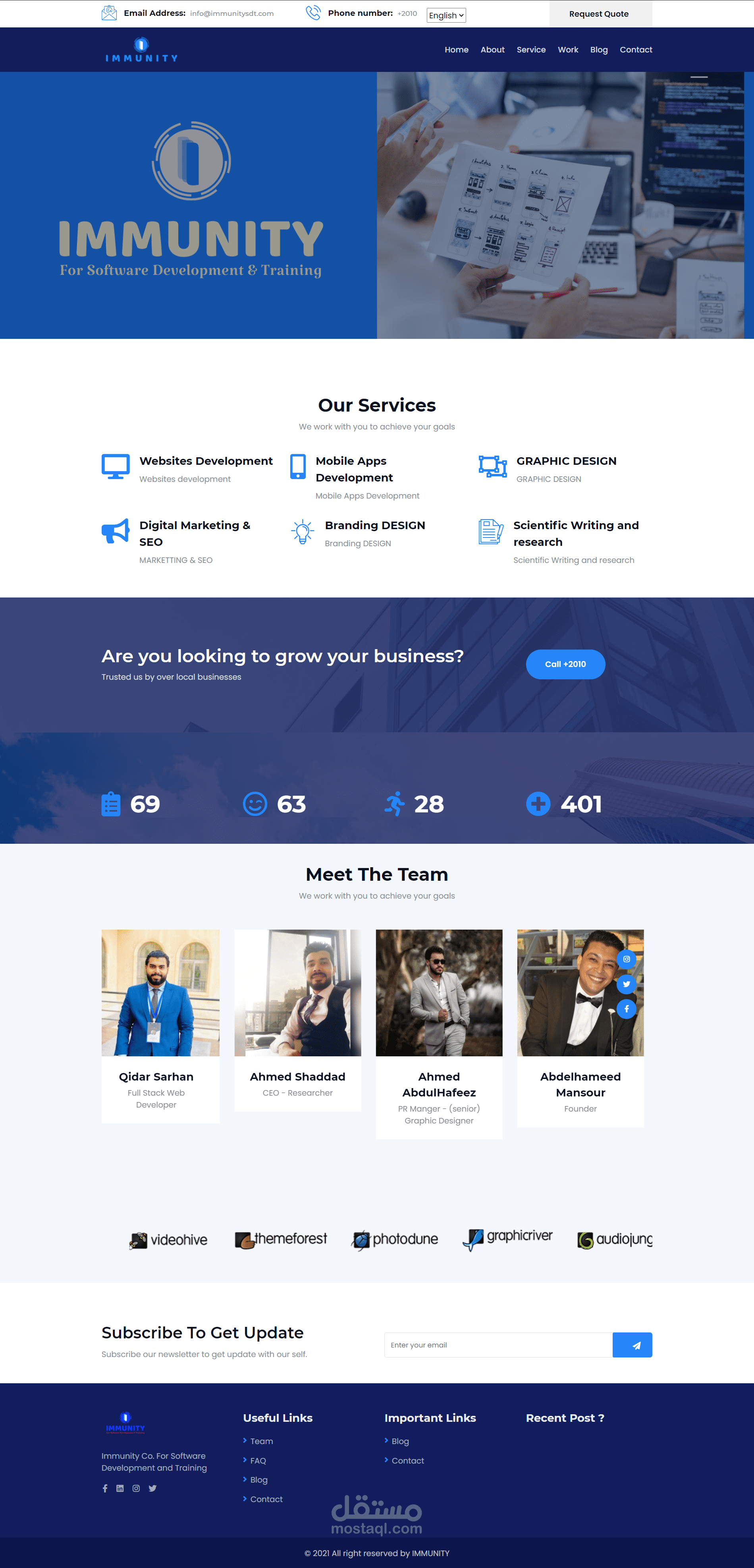 موقع تعريفي هوية لشركة تسويق وخدمات