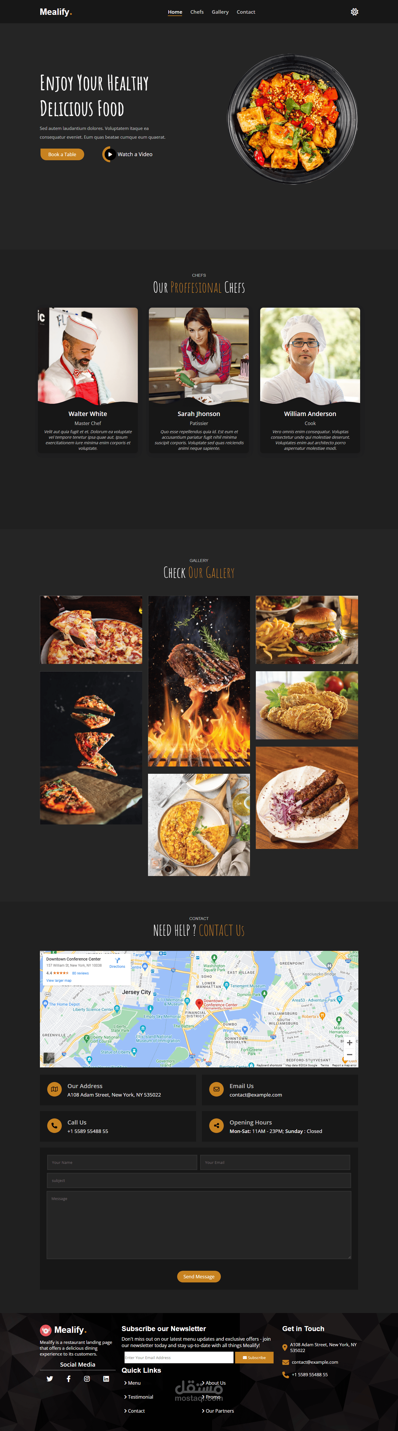 Gallery Section: Showcases high-quality images of the restaurant's interior, exterior, and dishes to entice visitors.