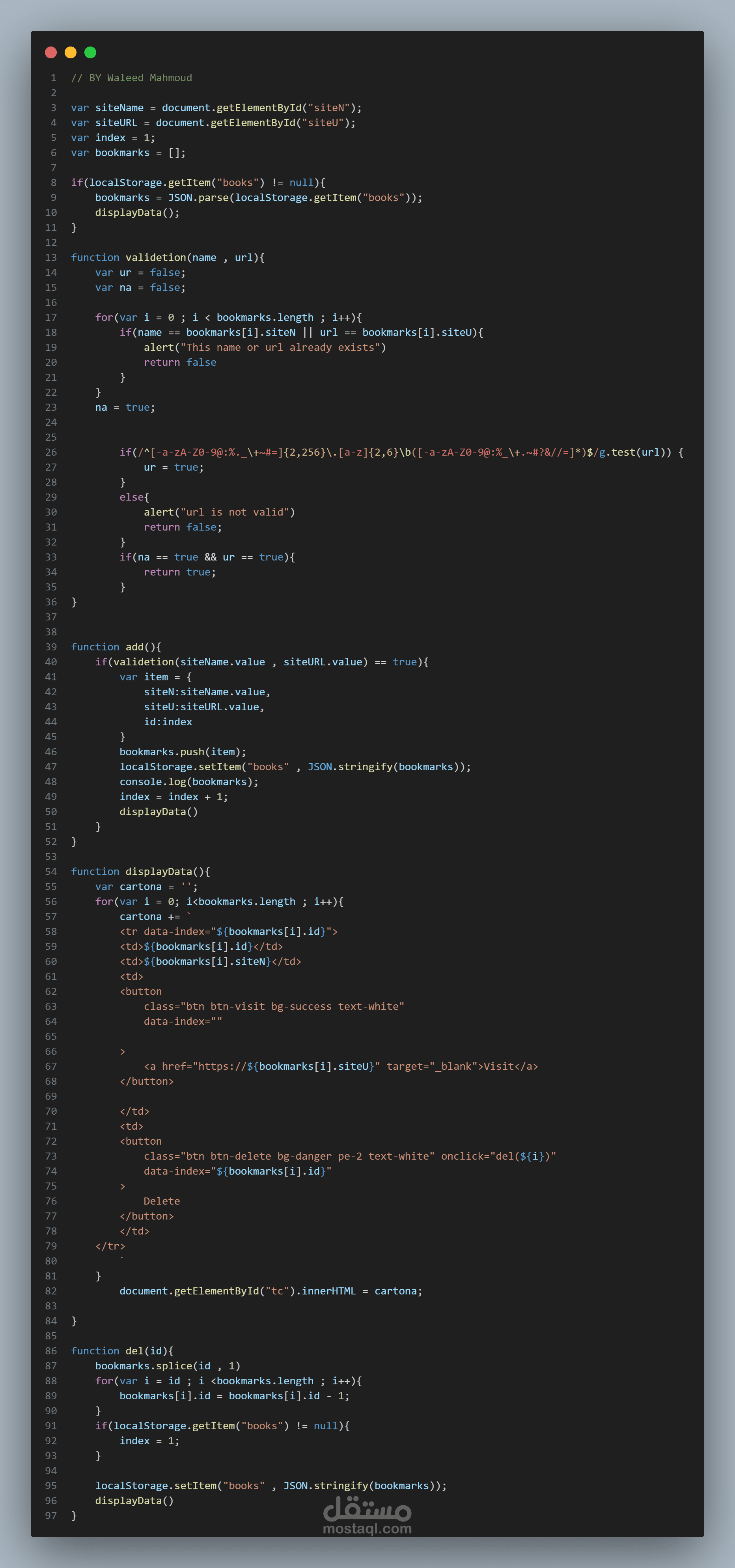 JavaScript CRUD Project with Local Storage: