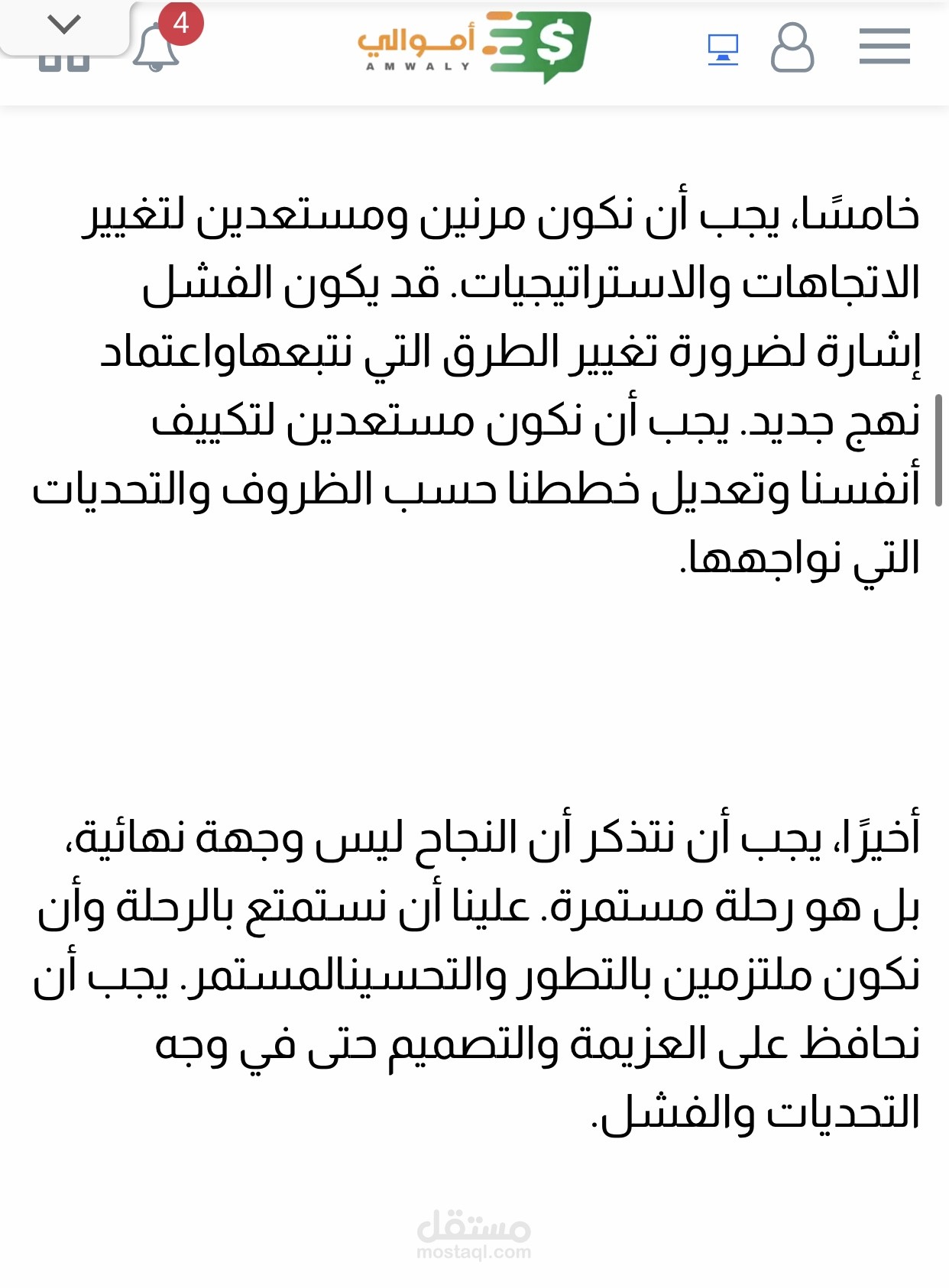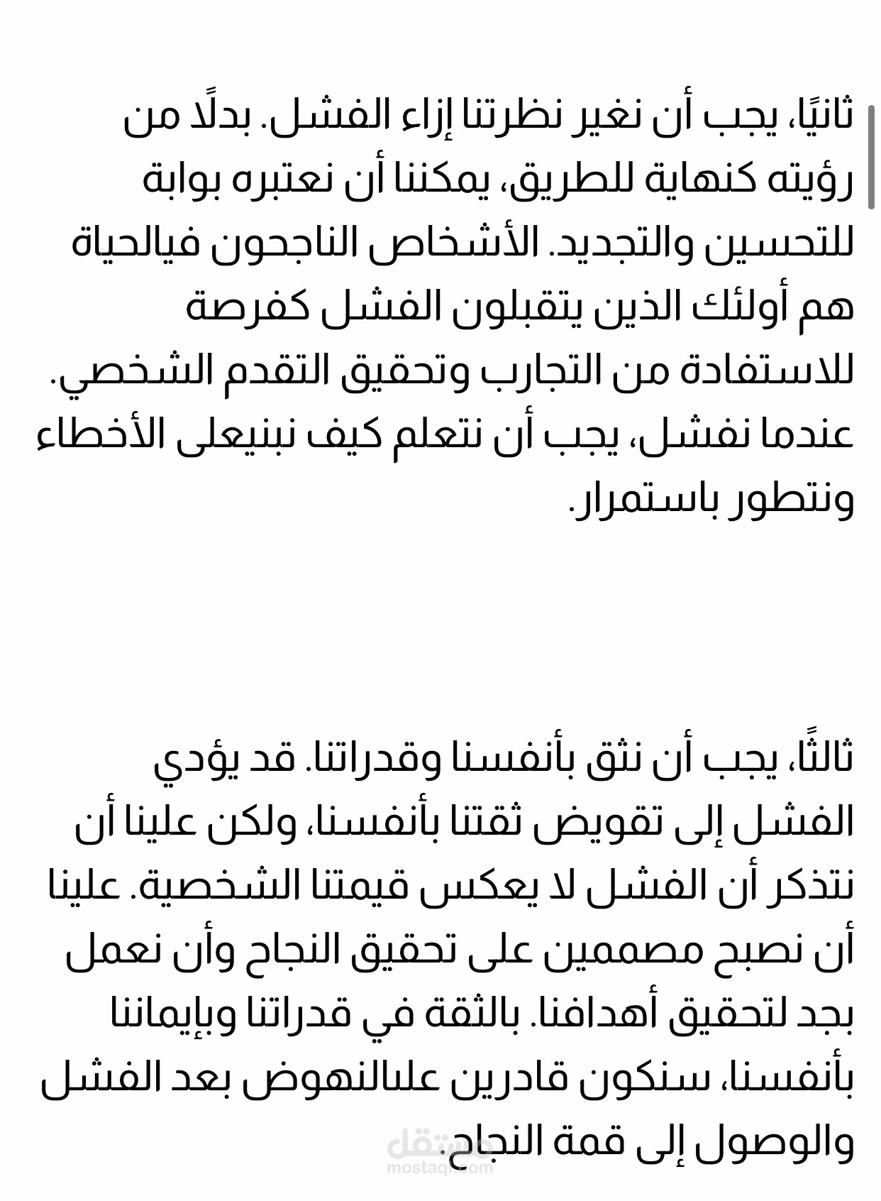 المثابرة والتفاني في العمل وتحمل المخاطرة قد تكون مفاتيح النجاح بعد الفشل. عليك أن تظل مصرًا على أهدافك وتعمل بجد لتحقيقها رغم الصعوبات التي قد تواجهك. تذكر أن الشخص الناجح هو من يقف مرارًا وتكرارًا بعد كل سقوط.
