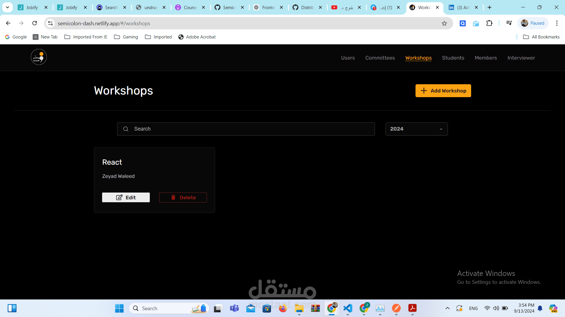 .Workshops & Committees: Admins can manage workshops (like React) and committees (such as Embedded and AI) by adding, editing, or deleting entries.