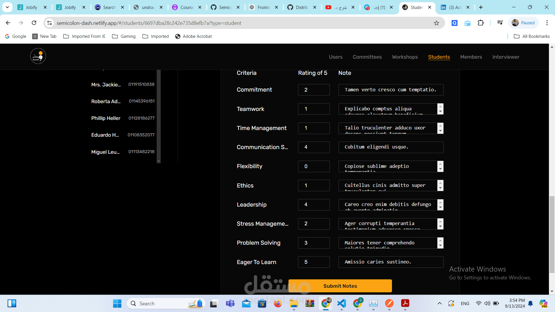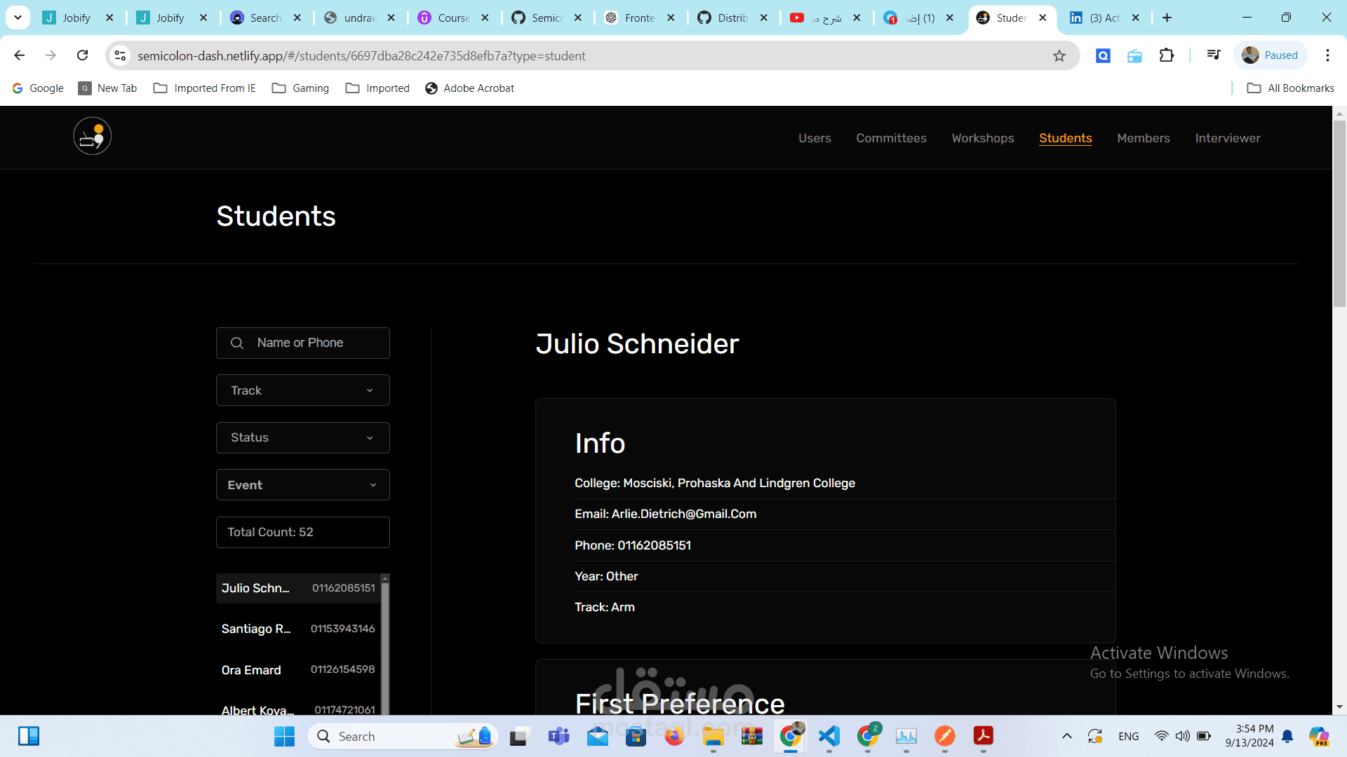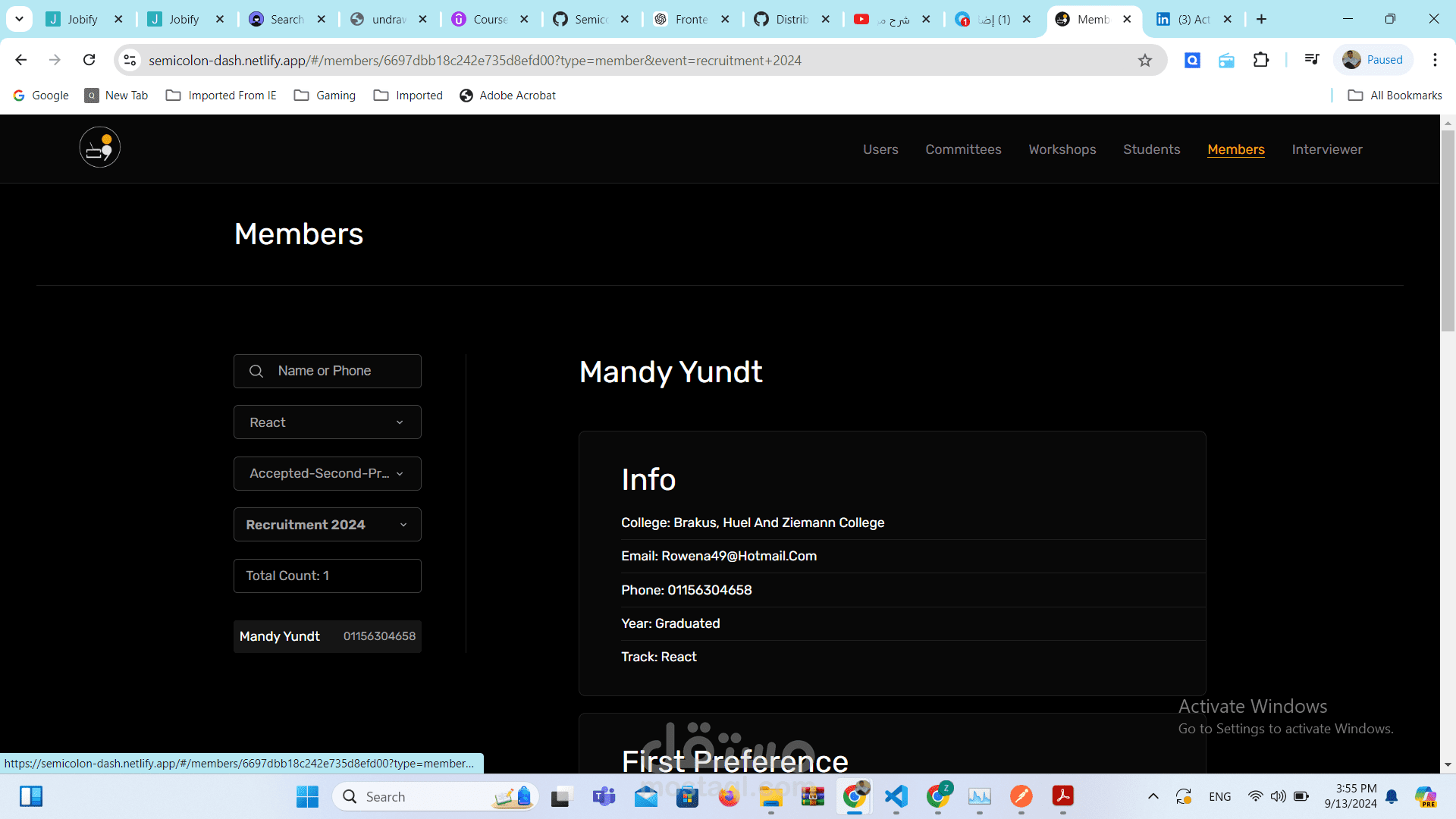 .Members Page: Shows data of those applying to be members of Semicolon.