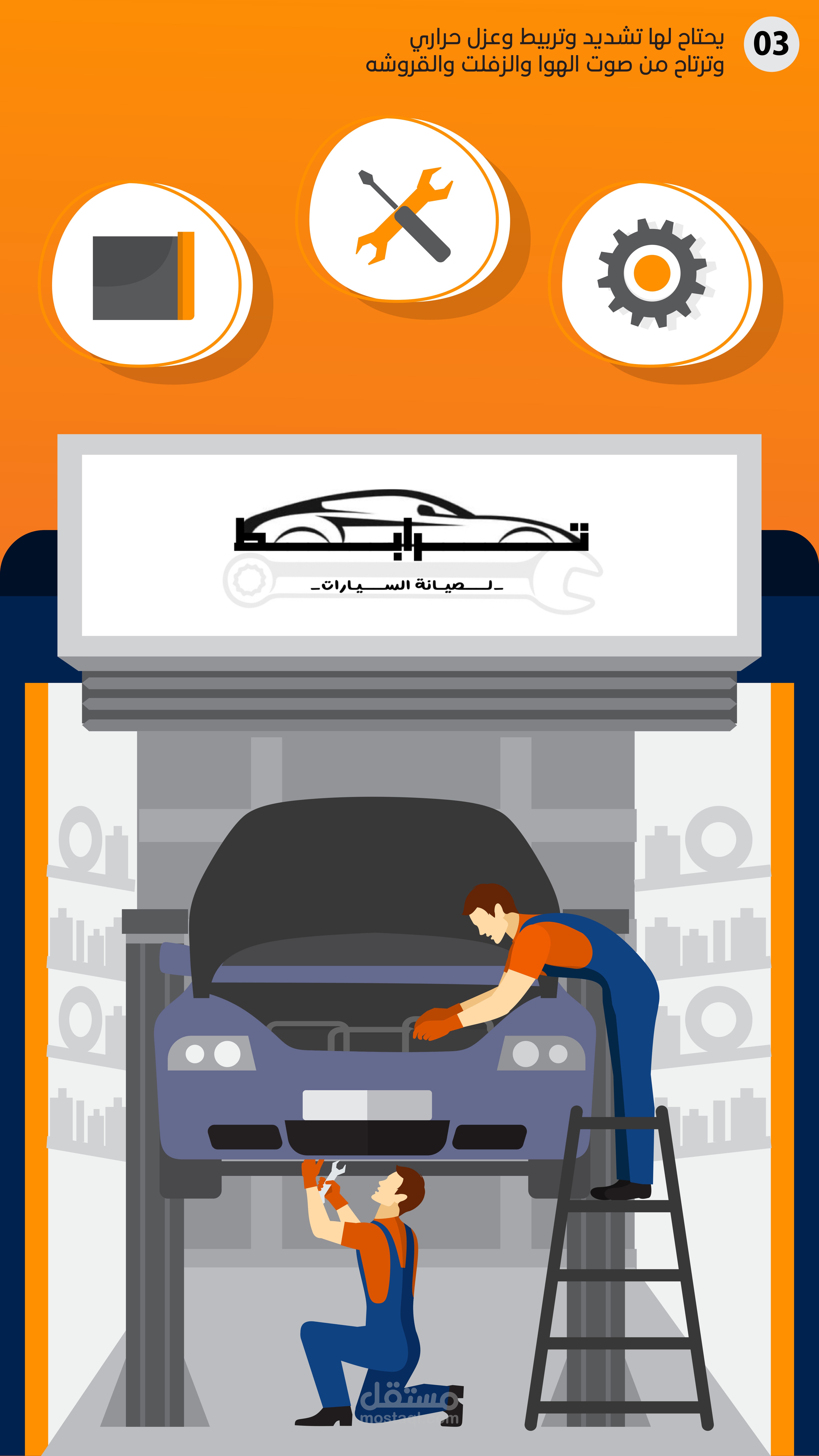 جاء العمل عن ورشة اصلاح سيارات المشهد الاول ان السيارة مجروشة يعني خربانه و بزوم علي الشخص والمشهد الثاني للسيارة وهي خربانه اللوحة مكسورة والسيارة مفككة والمشهد الثالث جاءت وهي في الورشة يتم تصليحها والمشهد الرابع والسيارة جديدة بعد التصليح والمشهد الاخير اعلان عن ترابط لاصلاح السيارات.