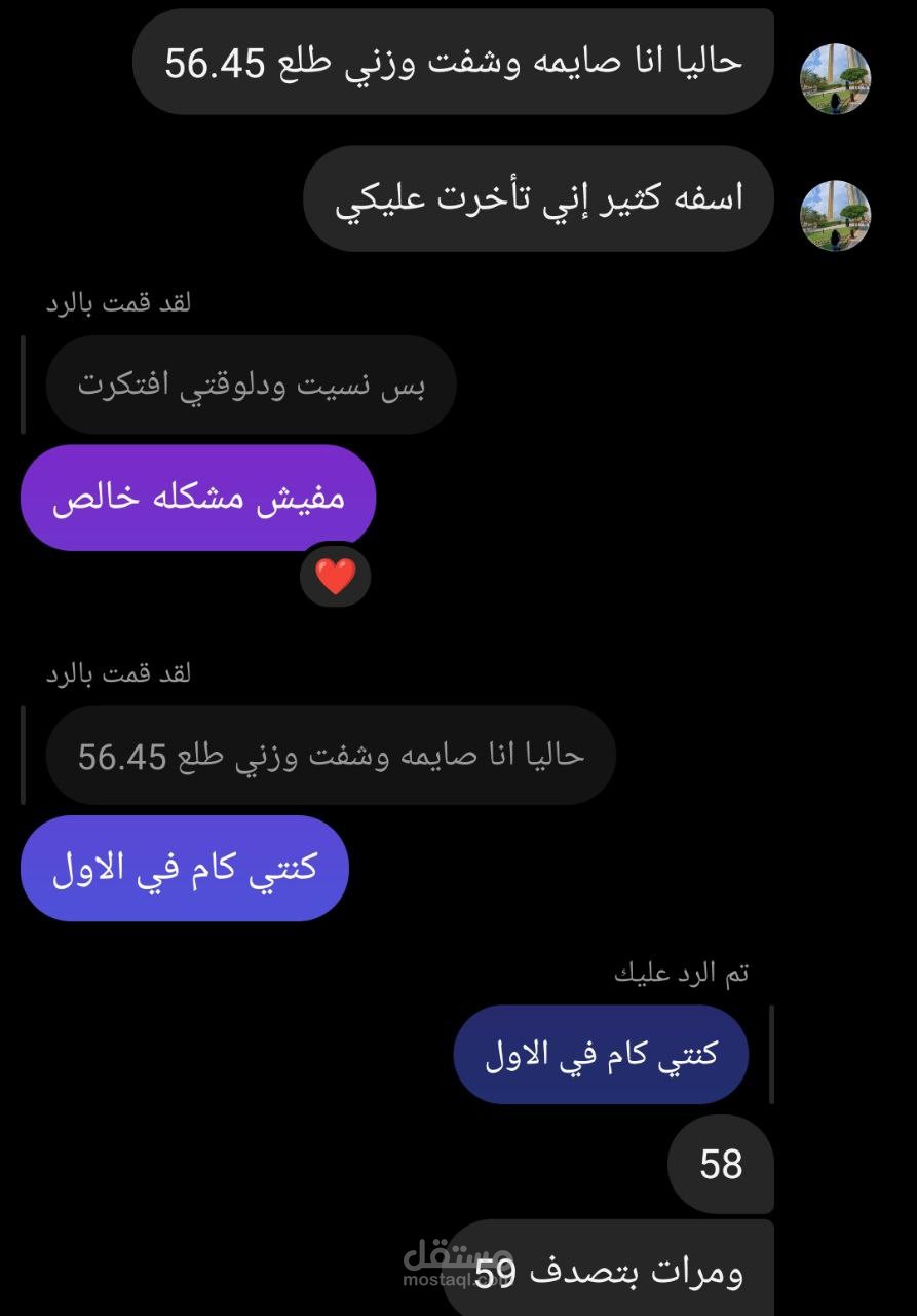 اهلا معكم اخصائيه التغذيه بسمه سمير اقدم لكم في هذه الخدمه الآتي: 1- تقييم الحاله الغذائية الحاليه: يتم من خلال جمع المعلومات المتعلقه بنمط الحياه والتغذية والأهداف