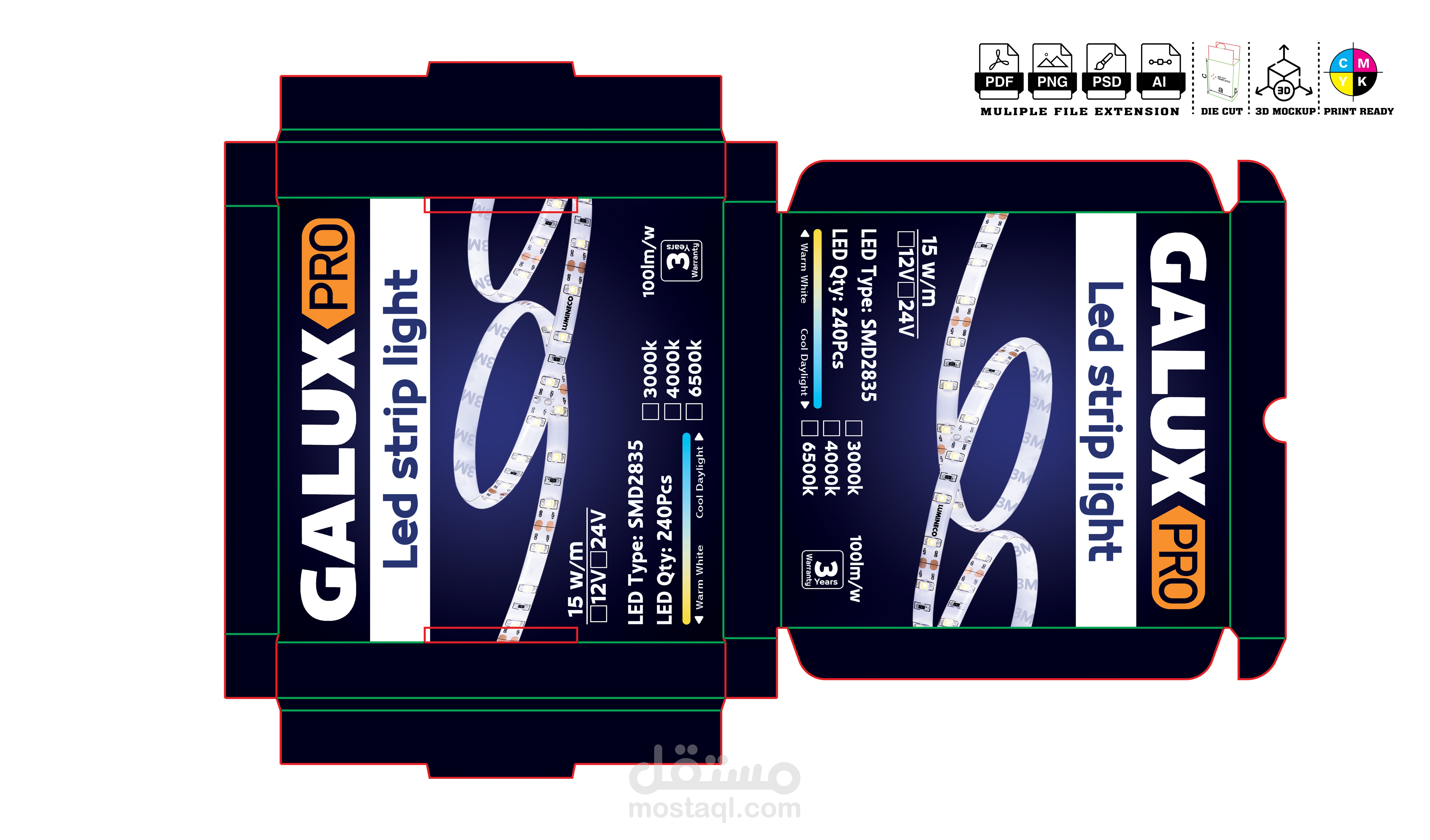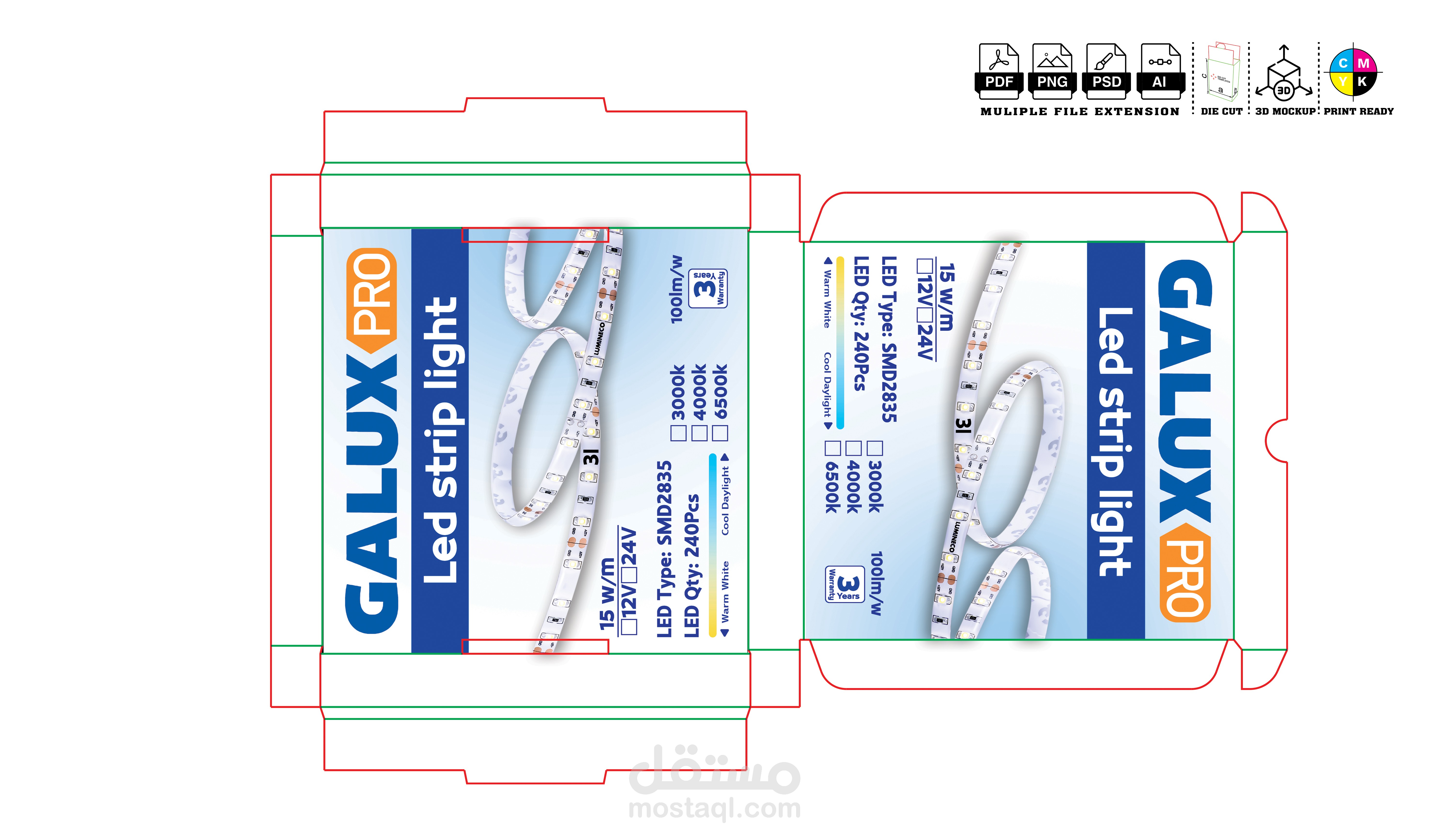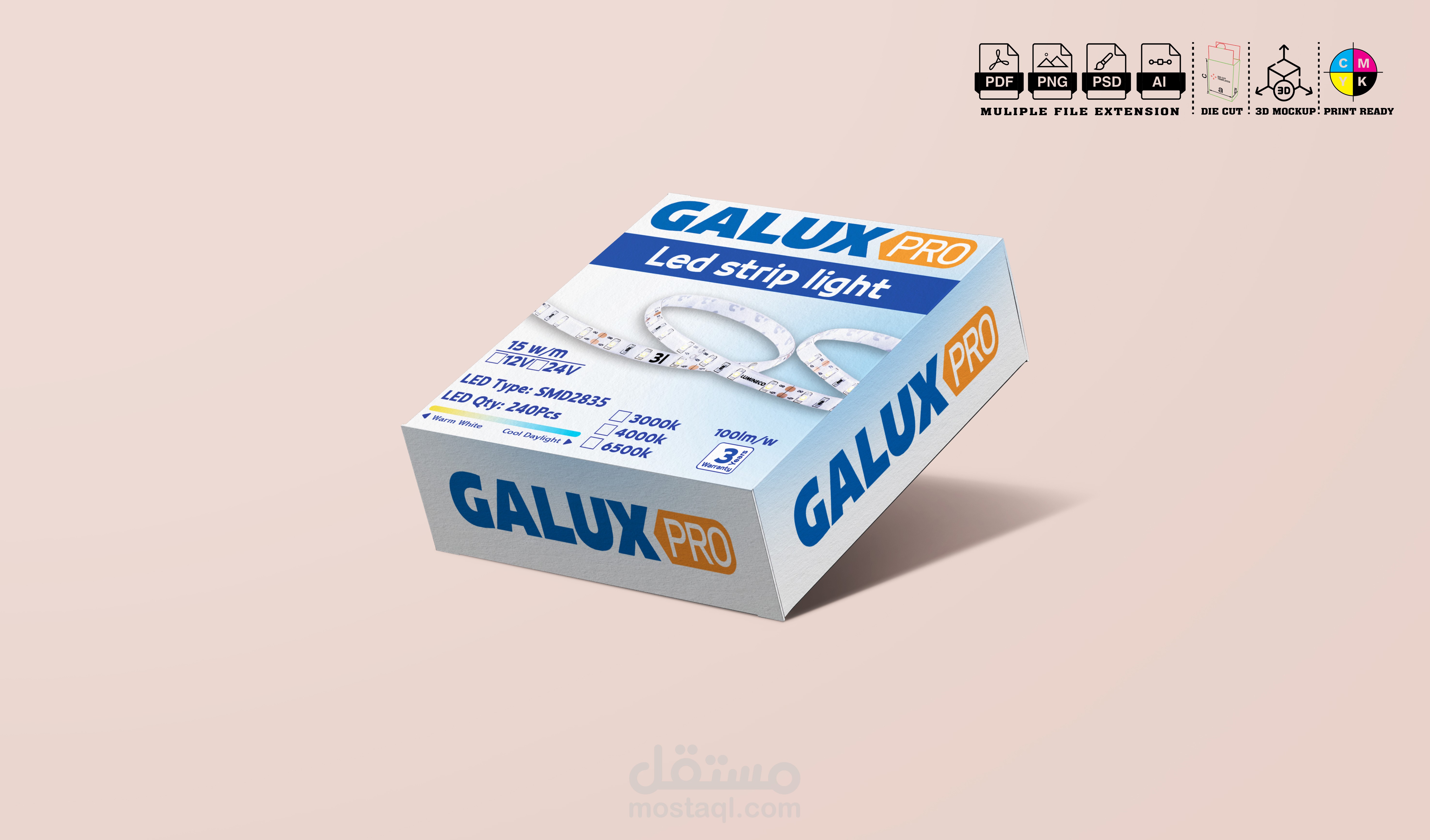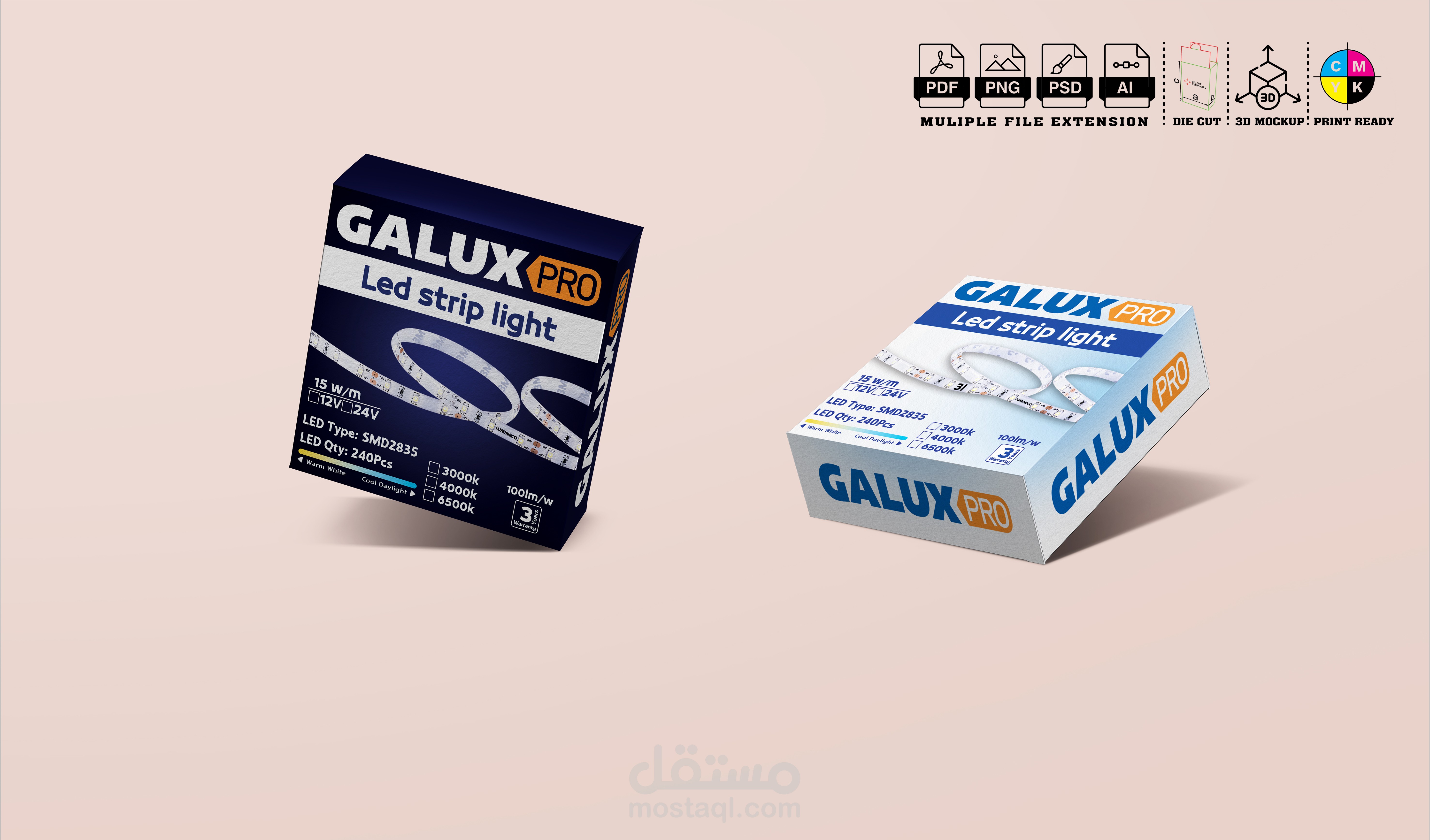 تصميم علبة لمنتج شريط اضاءة باسم جلوكس برو